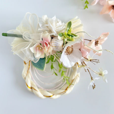 今年も白~クリームのタッセル型しめ縄が引き続き人気です。柔らかな風合いの金や銀などメタリックカラーをプラスして、華やかで力強い新年を演出しましょう。