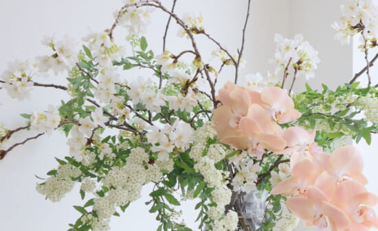 『吉野桜とコデマリにミディ胡蝶蘭を合わせて』の作り方 ~うきうき花レシピ