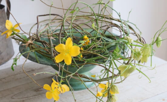 『山吹の水盤リースアレンジ』の作り方 ~うきうき花レシピ