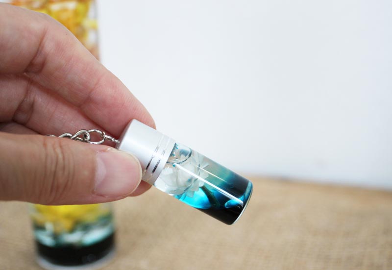 ミネラルオイルと混ぜて2層のハーバリウムが作れるオイルは他にもあるのですが、色が薄いため、キーホルダーやネックレスのような少量のものに使う時に色が透明と同化してしまう!というご意見がありました。