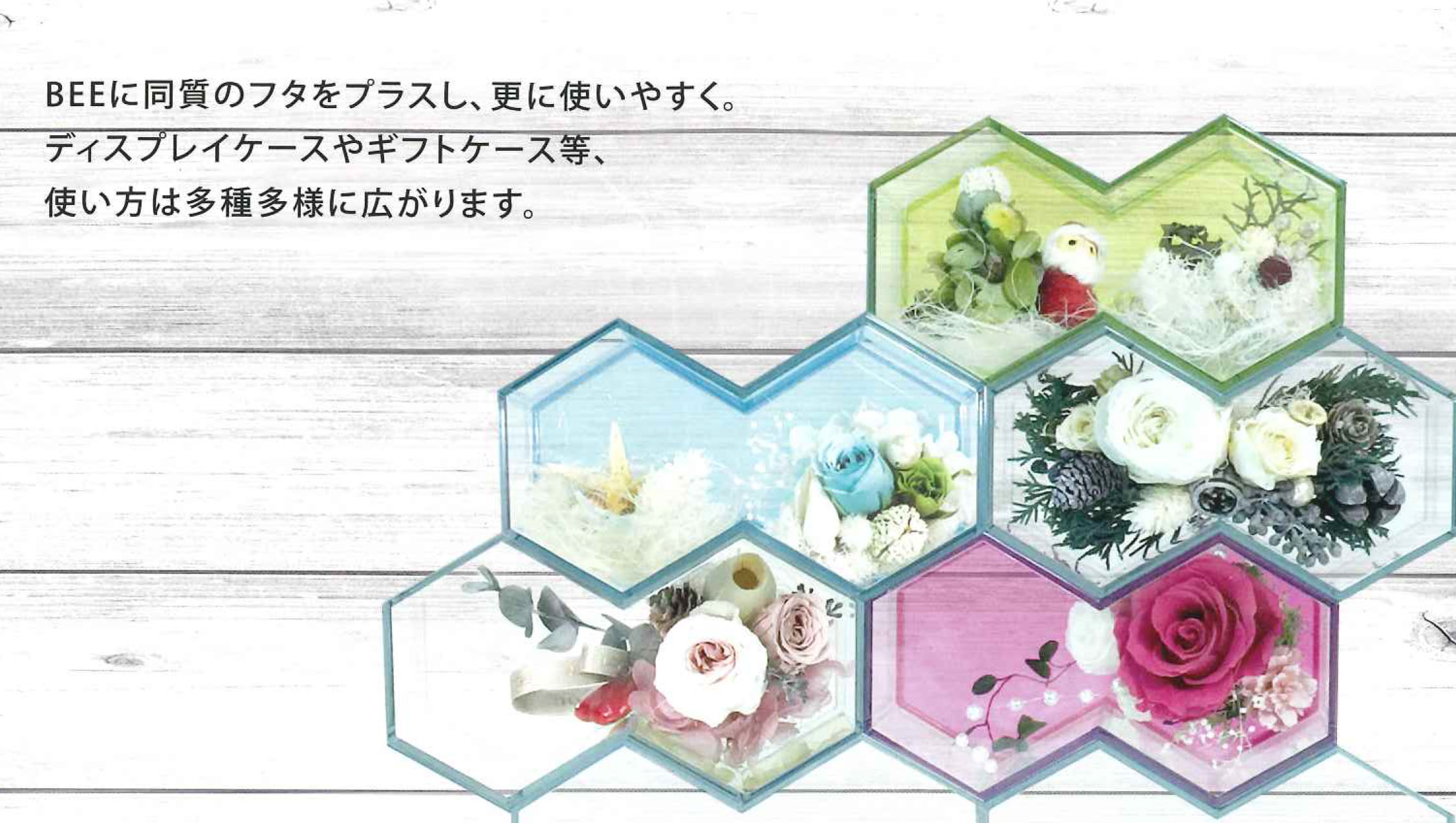 使いやすいサイズ感で、フラワーアレンジはもちろん、リングピローケースやお気に入りの小物入れに。透明度が高いポリカーボネイト製のフタは作品をホコリからも守ります。