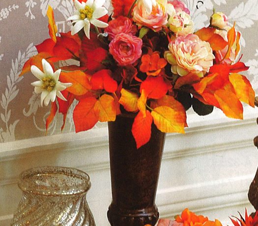 オレンジ×ブラウンで秋色の雰囲気がステキです。枯れ葉色のリーフを長く楽しめるのもアーティフィシャルならでは。