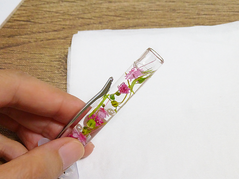 ボールペン本体にハーバリウム部分を差し込みます。