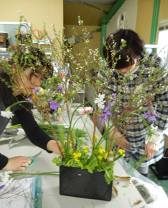近「リューコとコワニーのステムはキレイにみせましょう。」濱「雪柳のもじゃもじゃを取っておいて良かったです。」