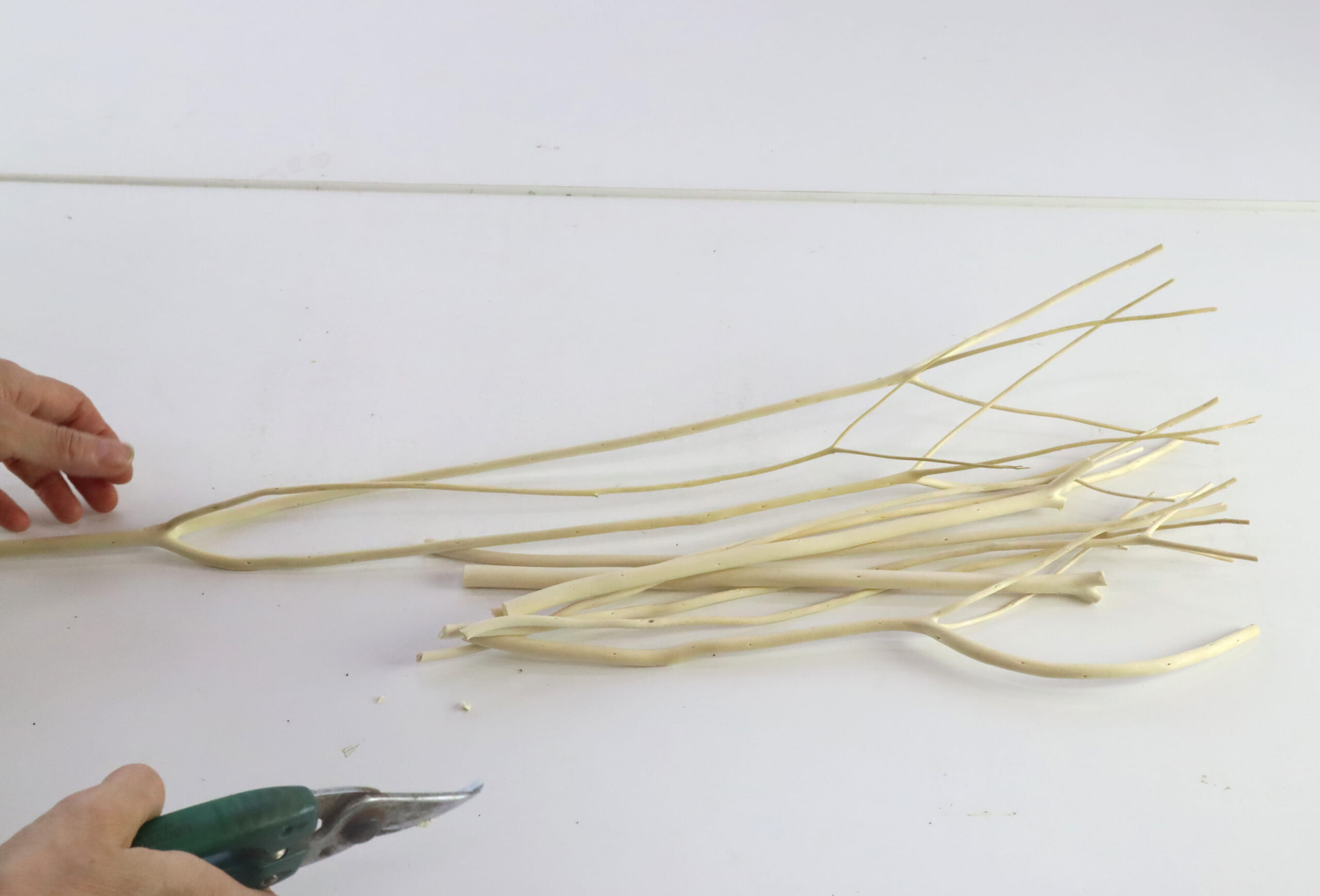 近藤先生「自分で作りたい大きさに合わせて枝をカットします。 今回は、枝の長さ28-30cmほど。 四角の部分の大きさとしては15-18cmくらいになりました。」
