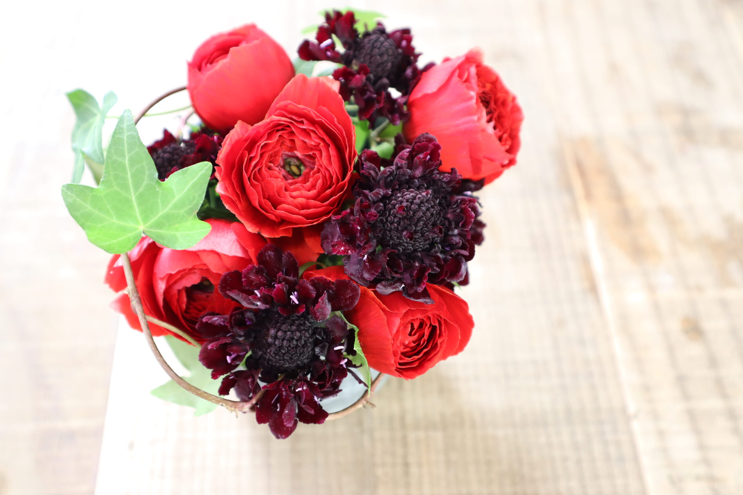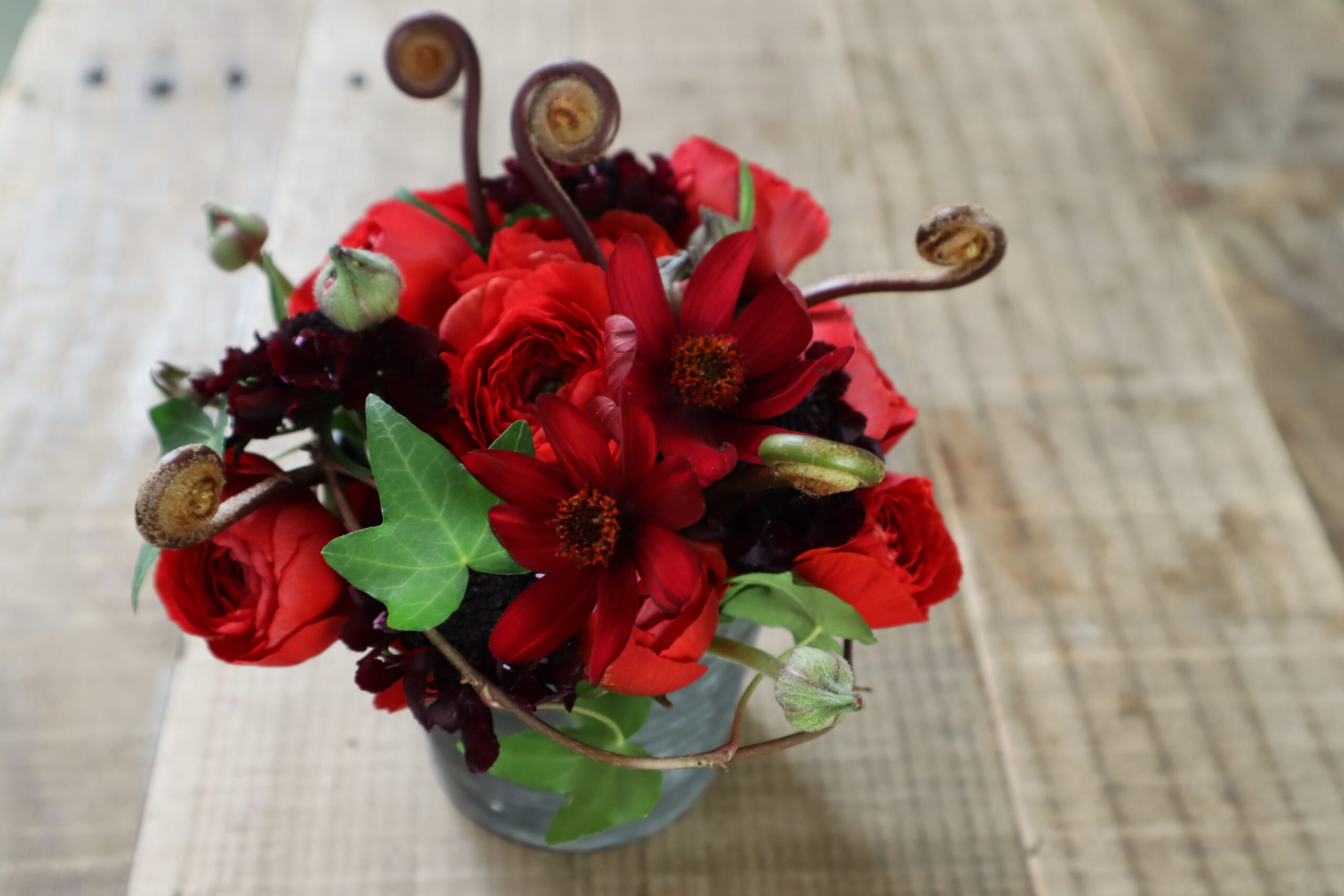 レッスン インテリア プレゼント /『赤いチョコレートコスモス添え バレンタインアレンジ』の作り方
