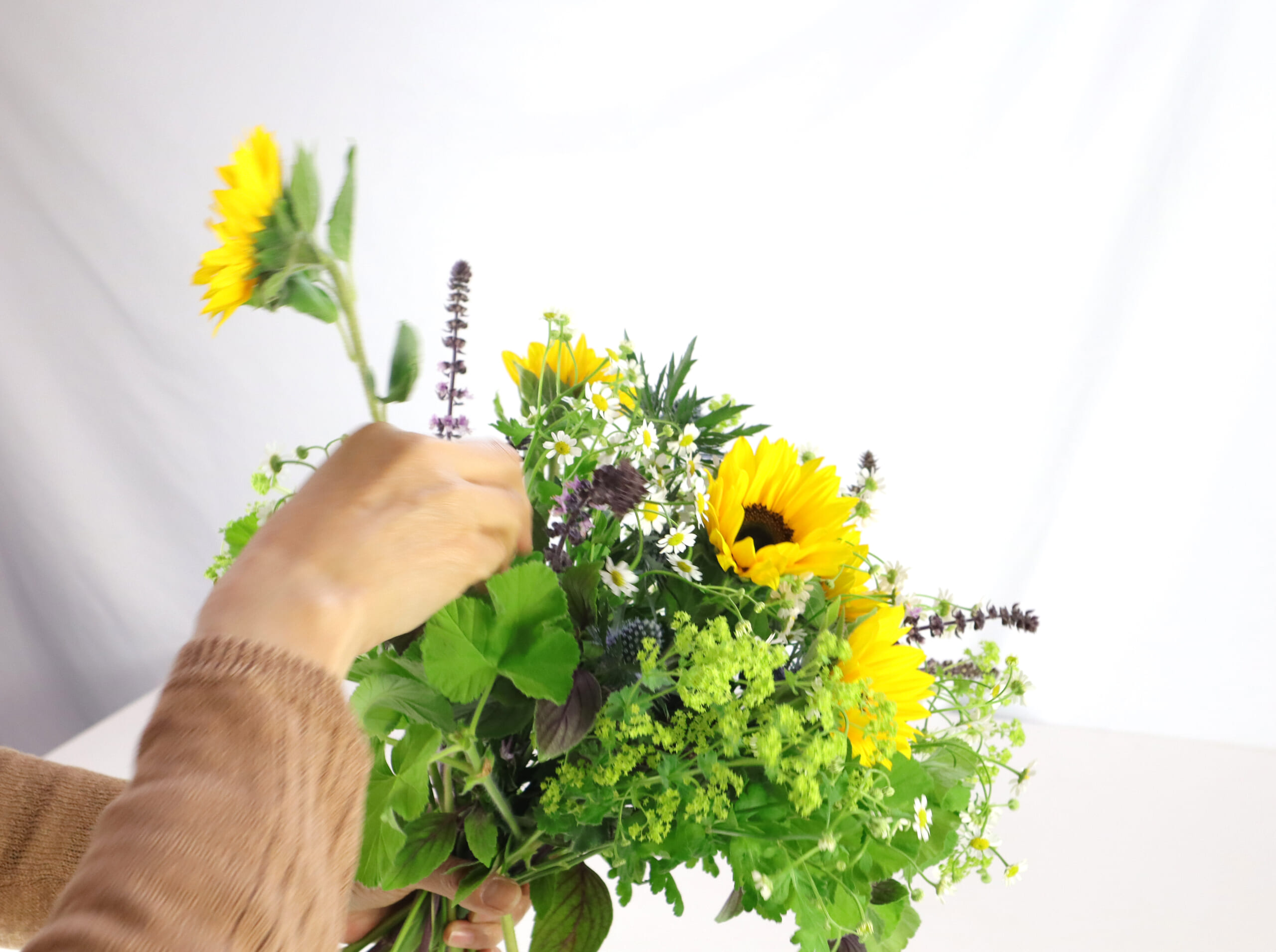 レッスン インテリア /『ひまわりとハーブの花束』の作り方