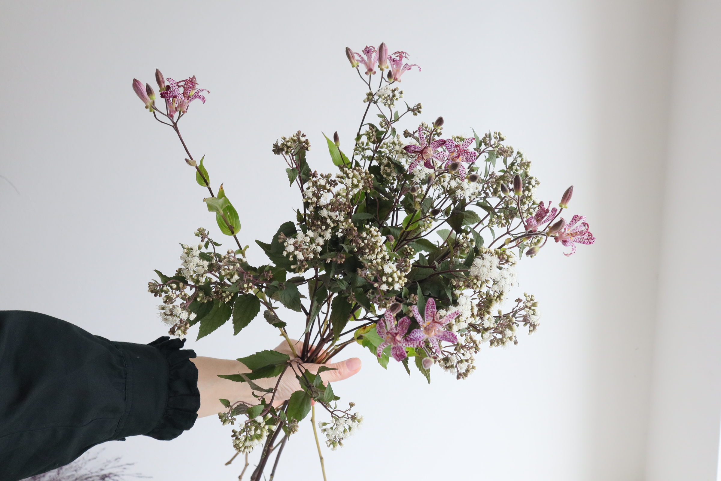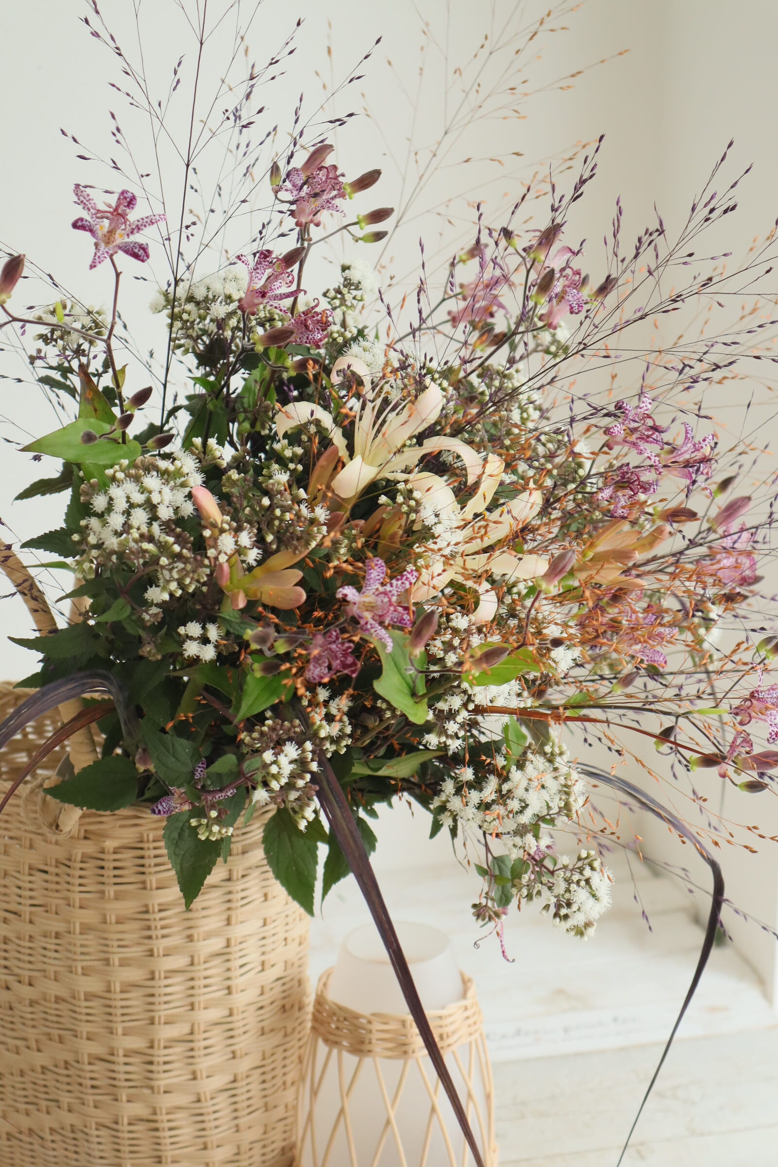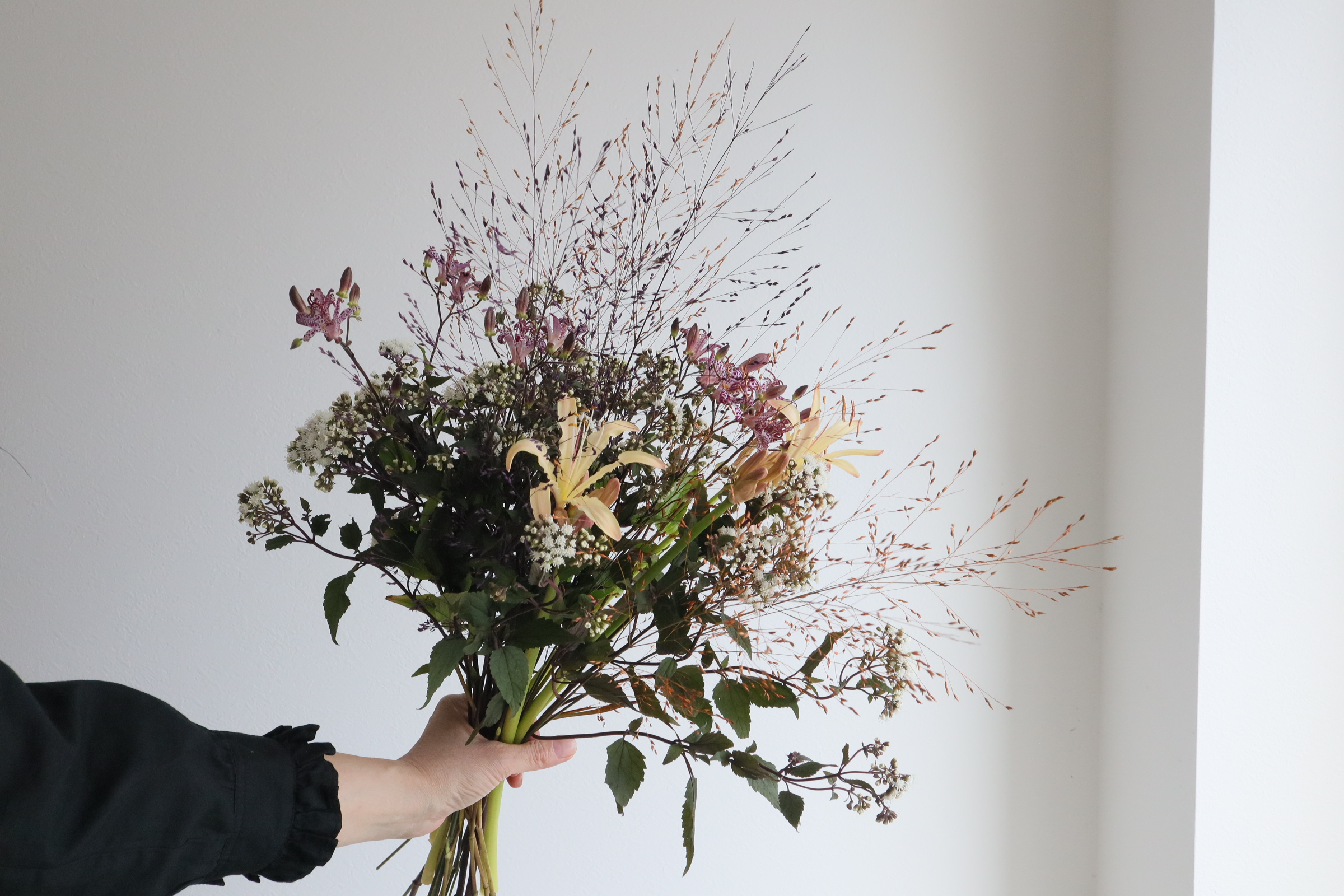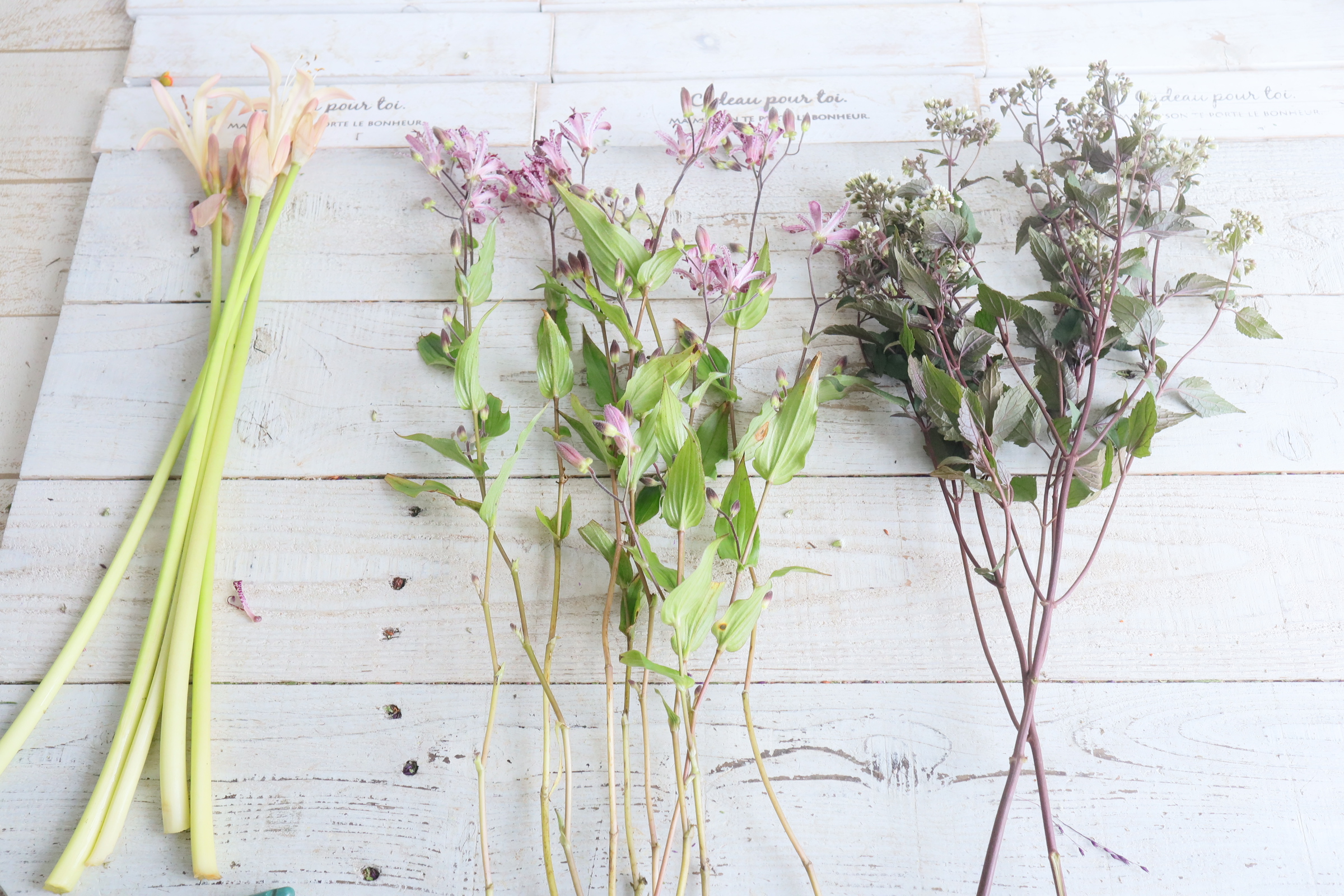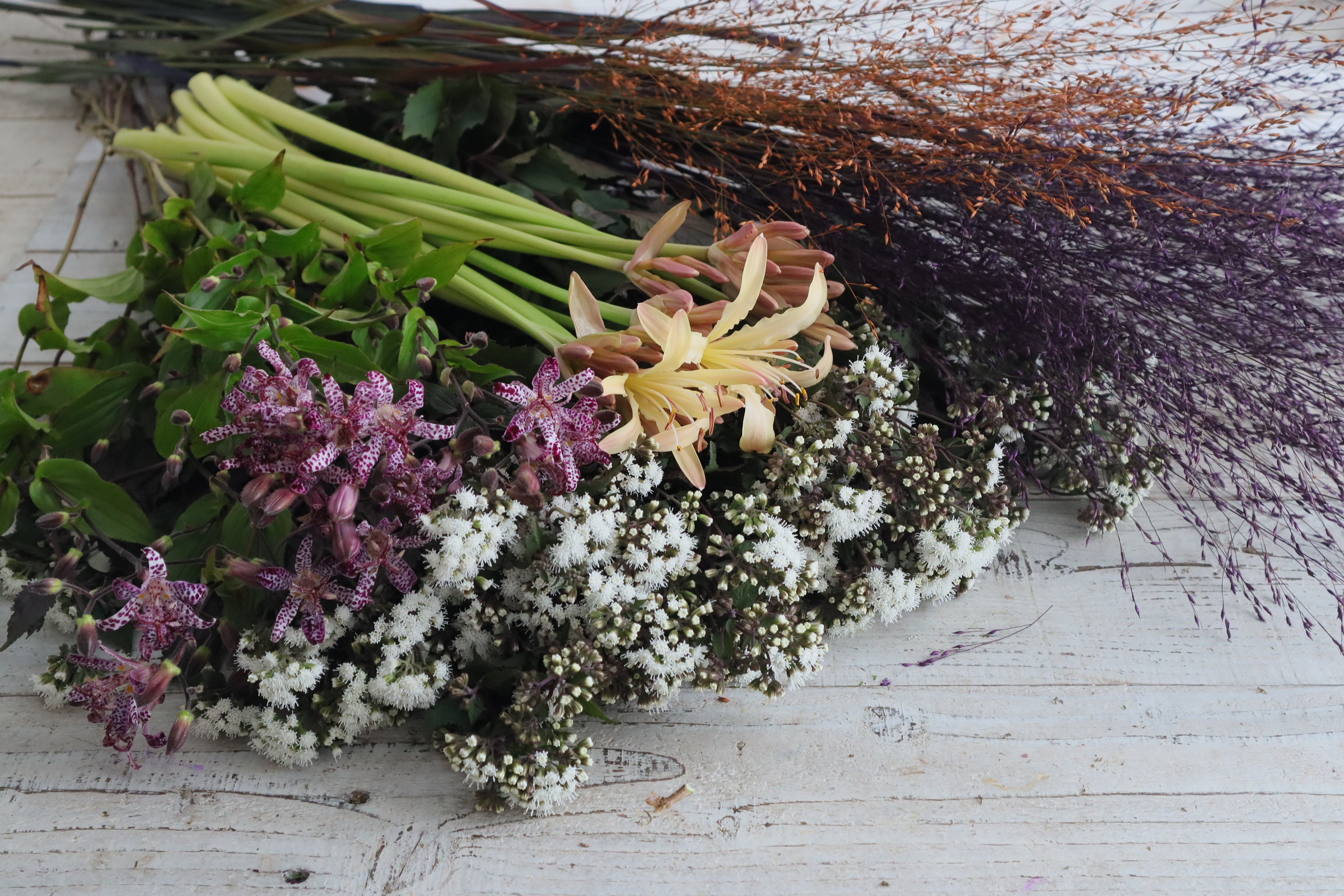 9月から10月にかけてでてくる秋の草花でナチュラルな花束を作ります。