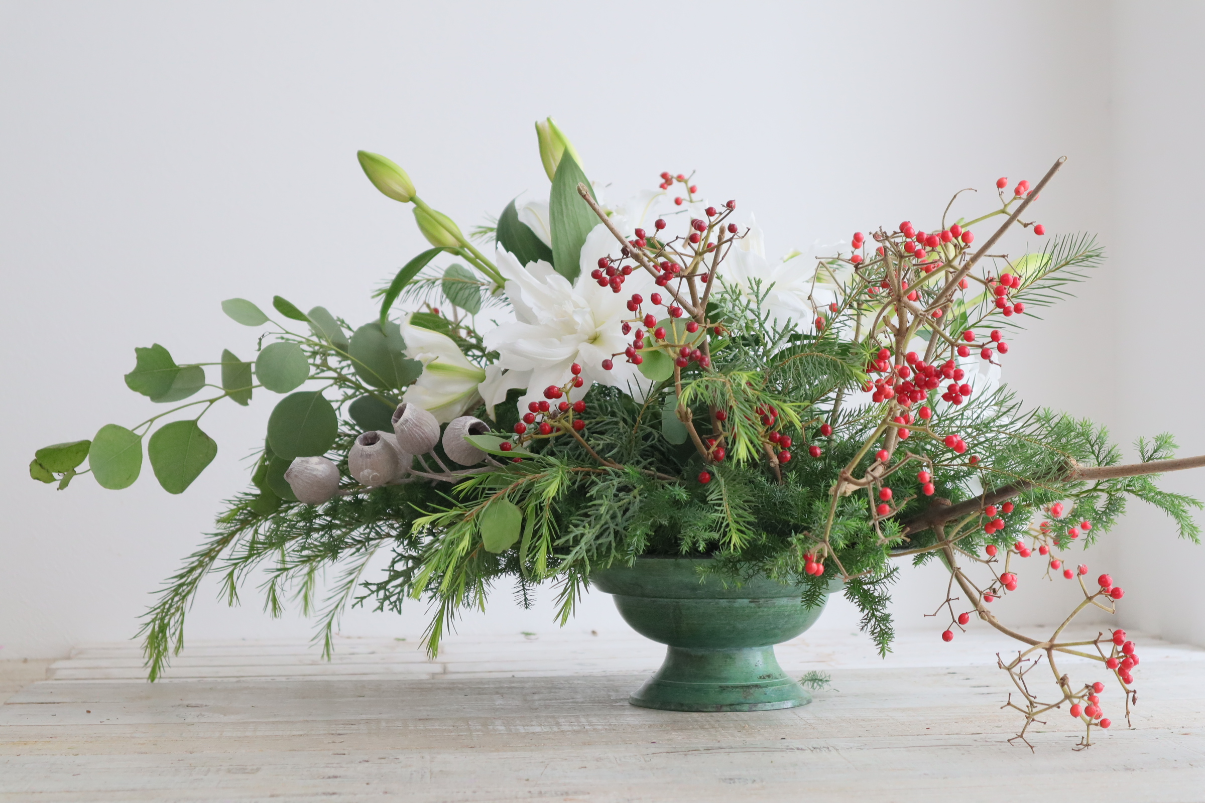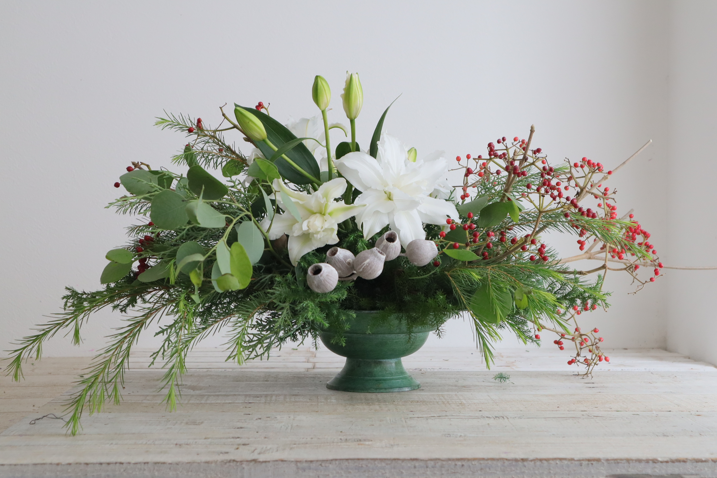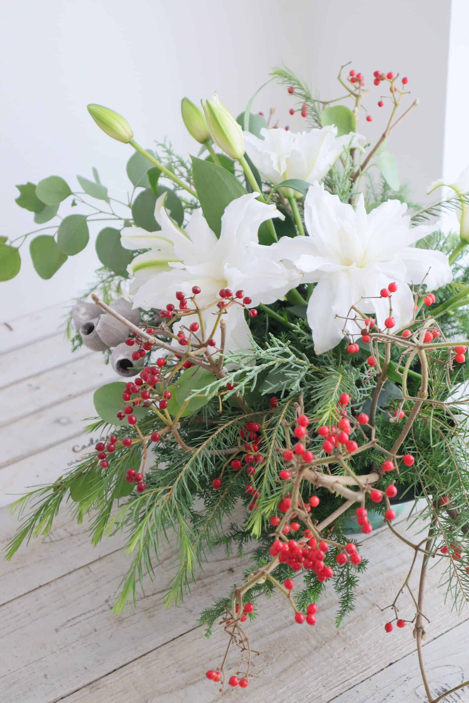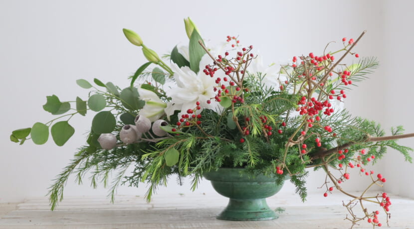 レッスン インテリア/『白いユリにコニファーやグリーンを合わせて』の作り方