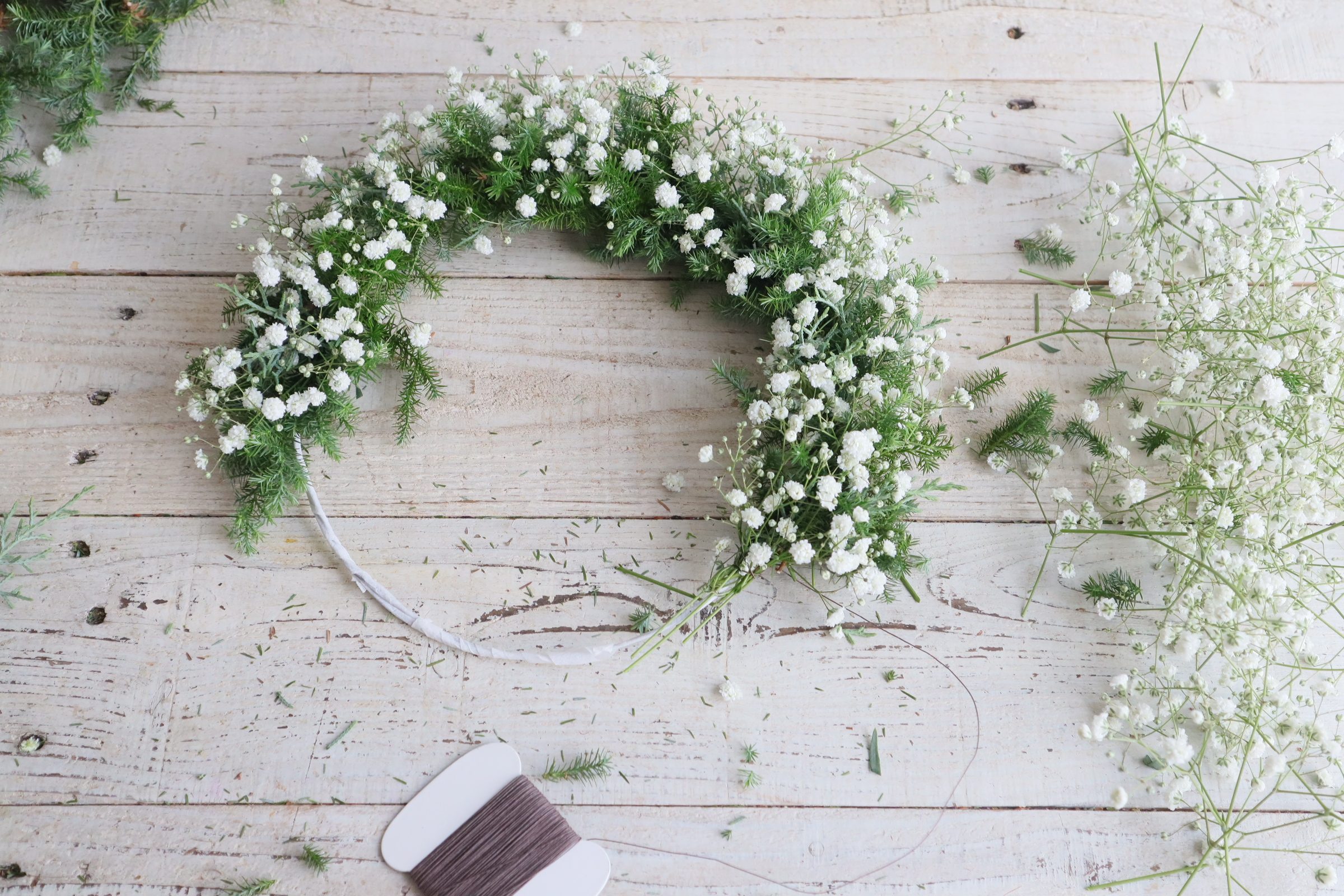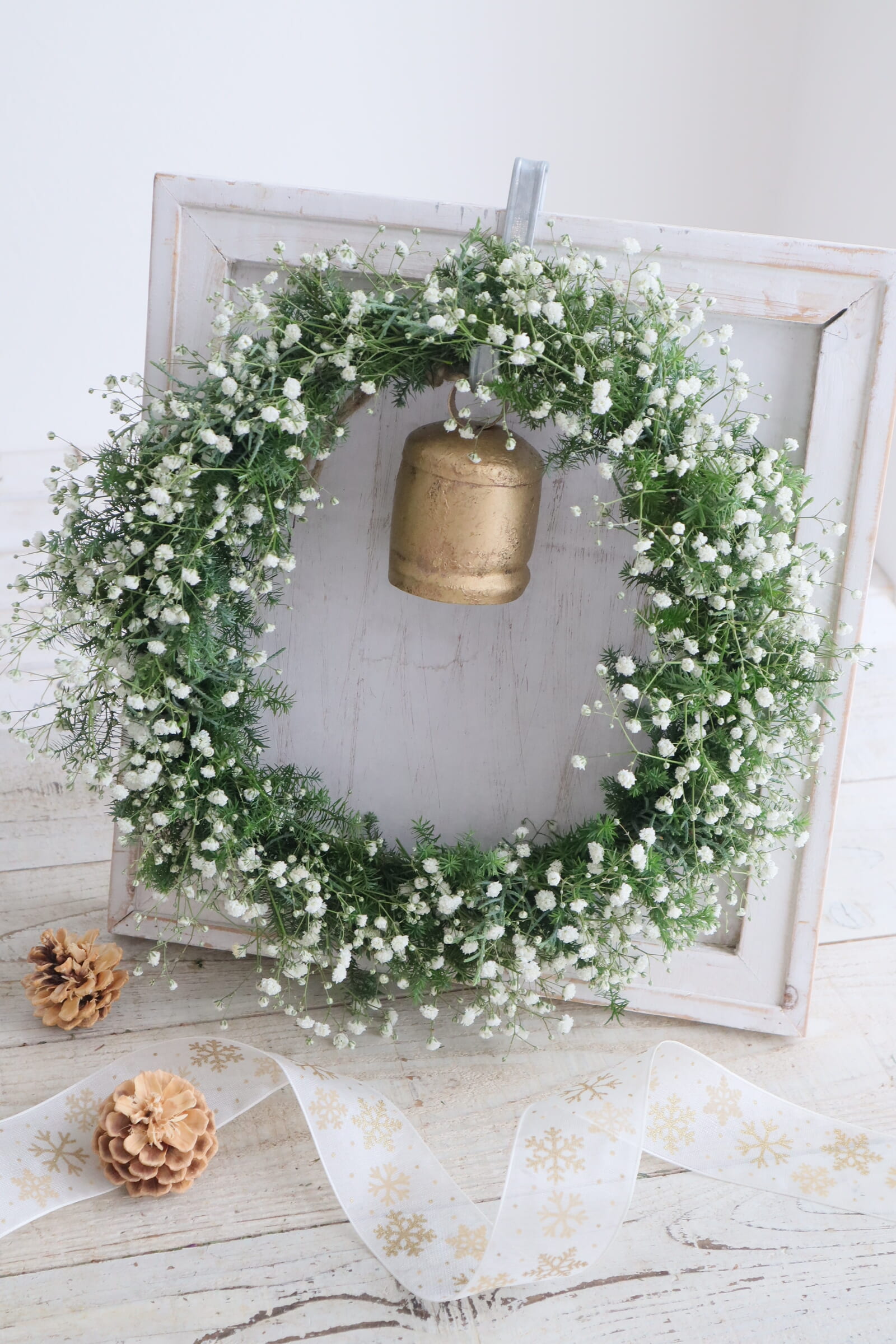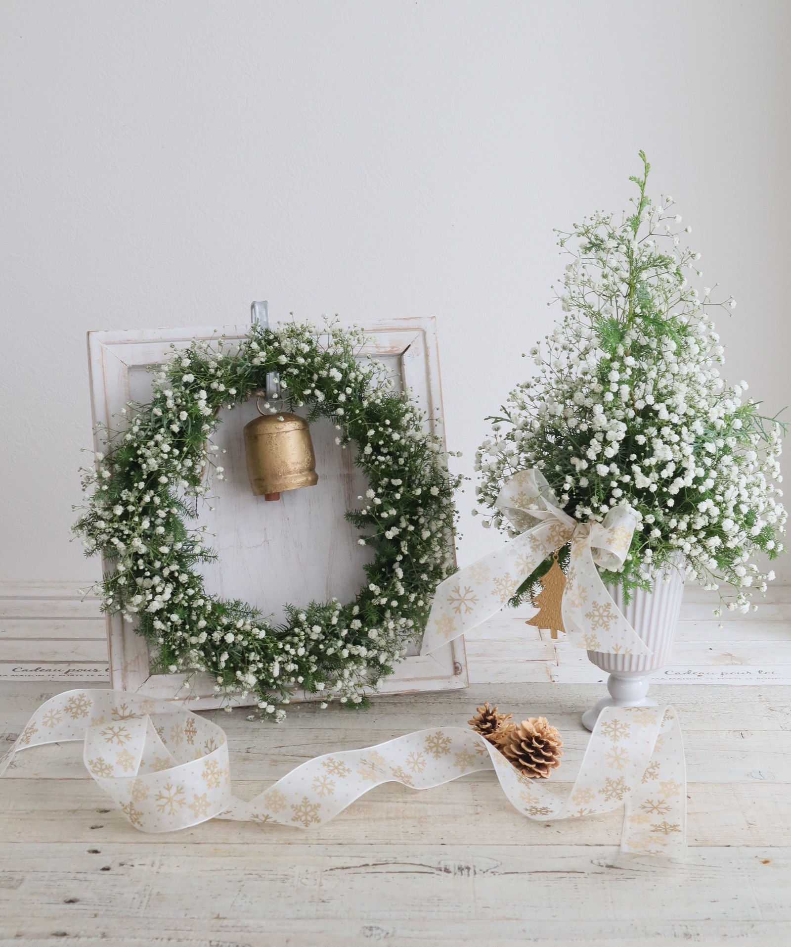 『かすみ草でホワイトクリスマス(リース)』の作り方 ~うきうき花レシピ