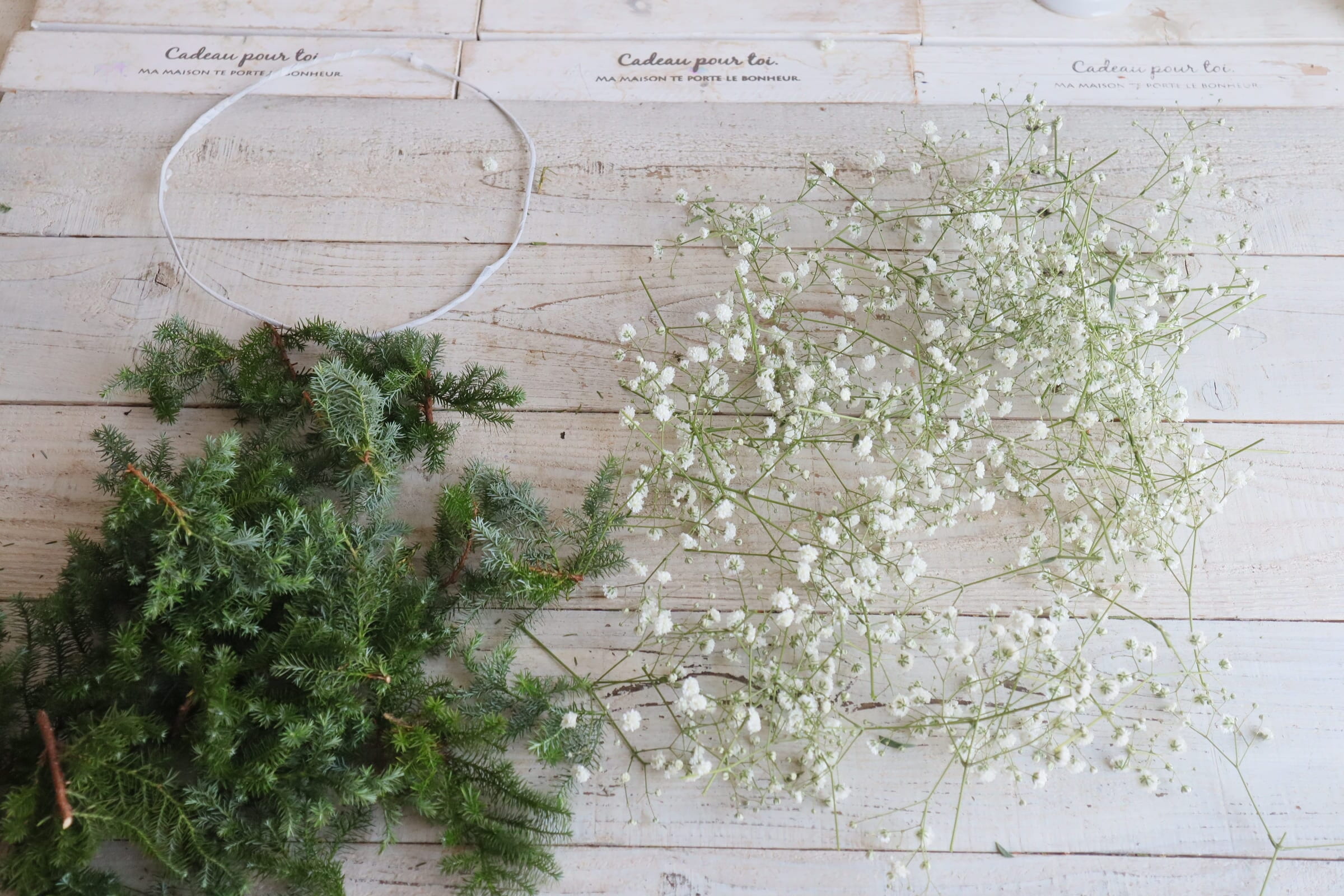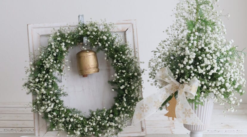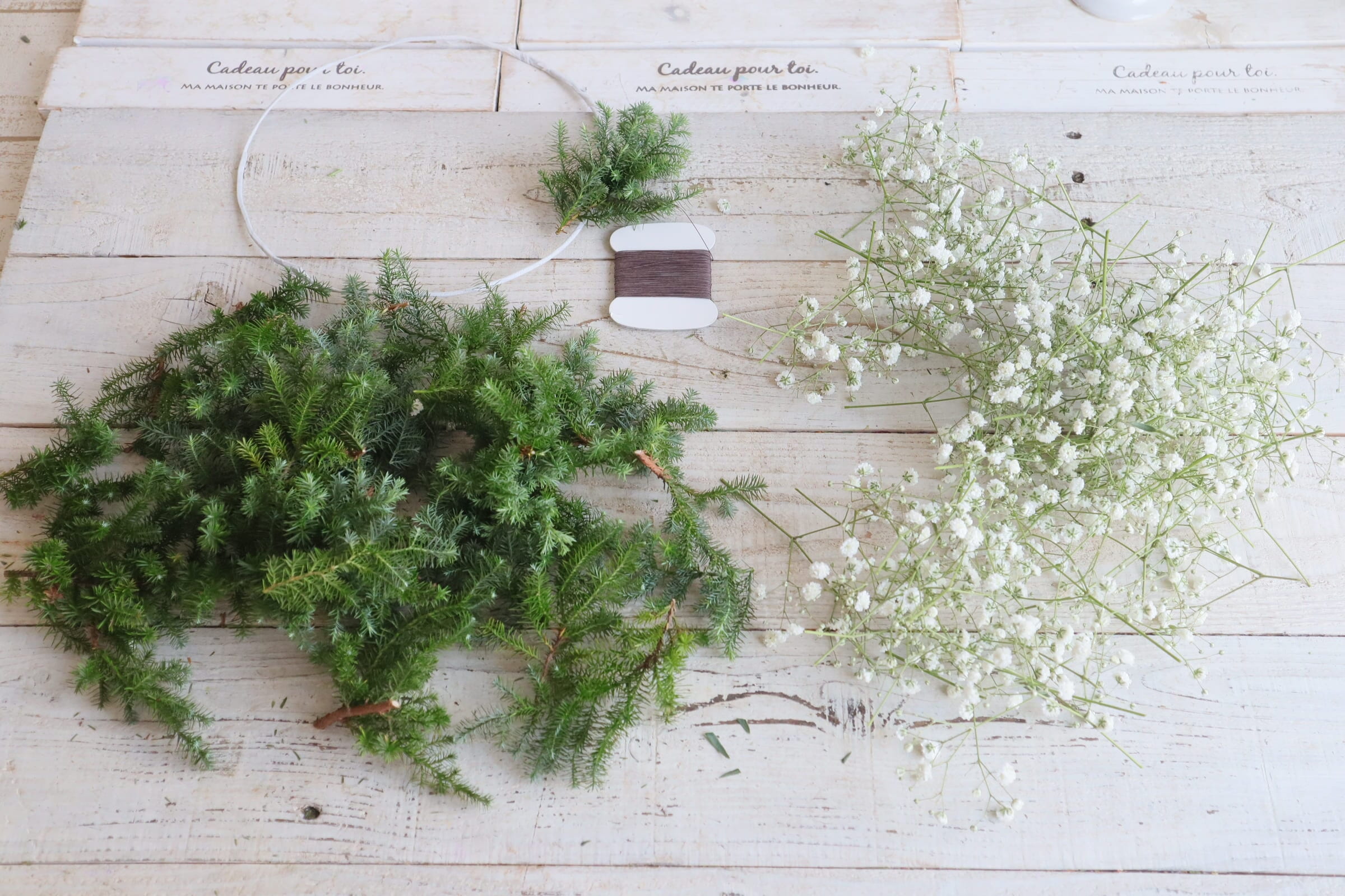 『かすみ草でホワイトクリスマス(リース)』の作り方 ~うきうき花レシピ