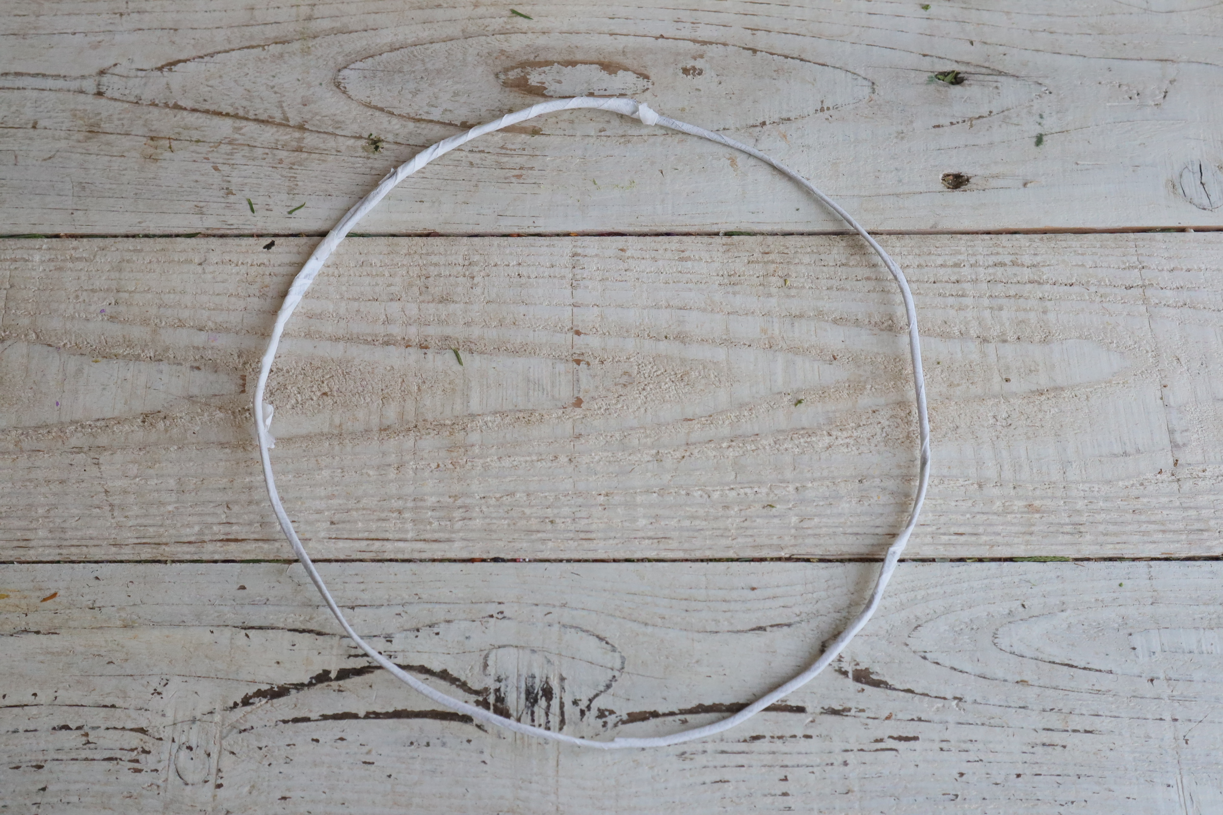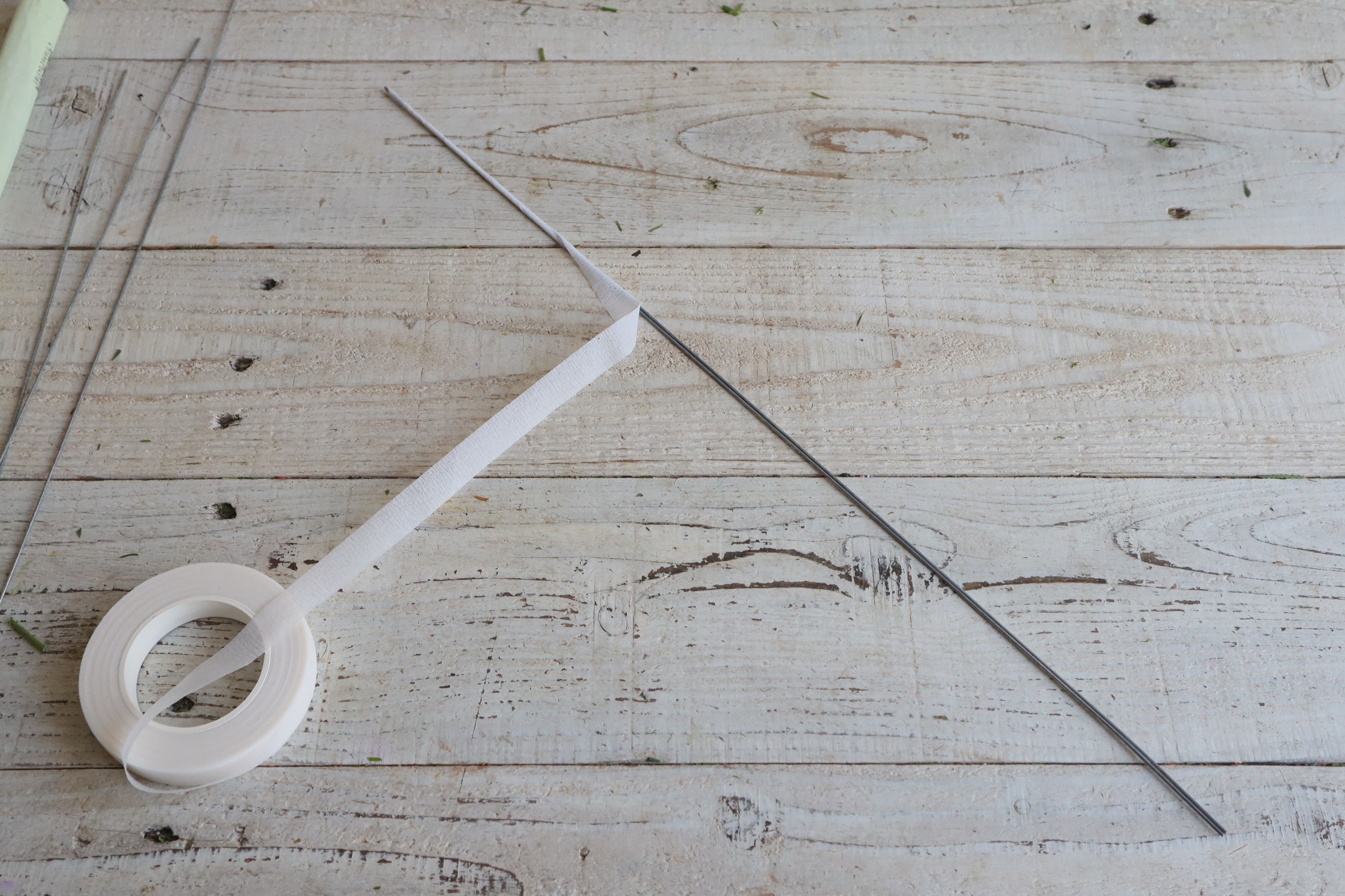 近藤先生「ワイヤー#18を4本まとめて、フローラルテープでテーピンクし土台のリースを作ります。」