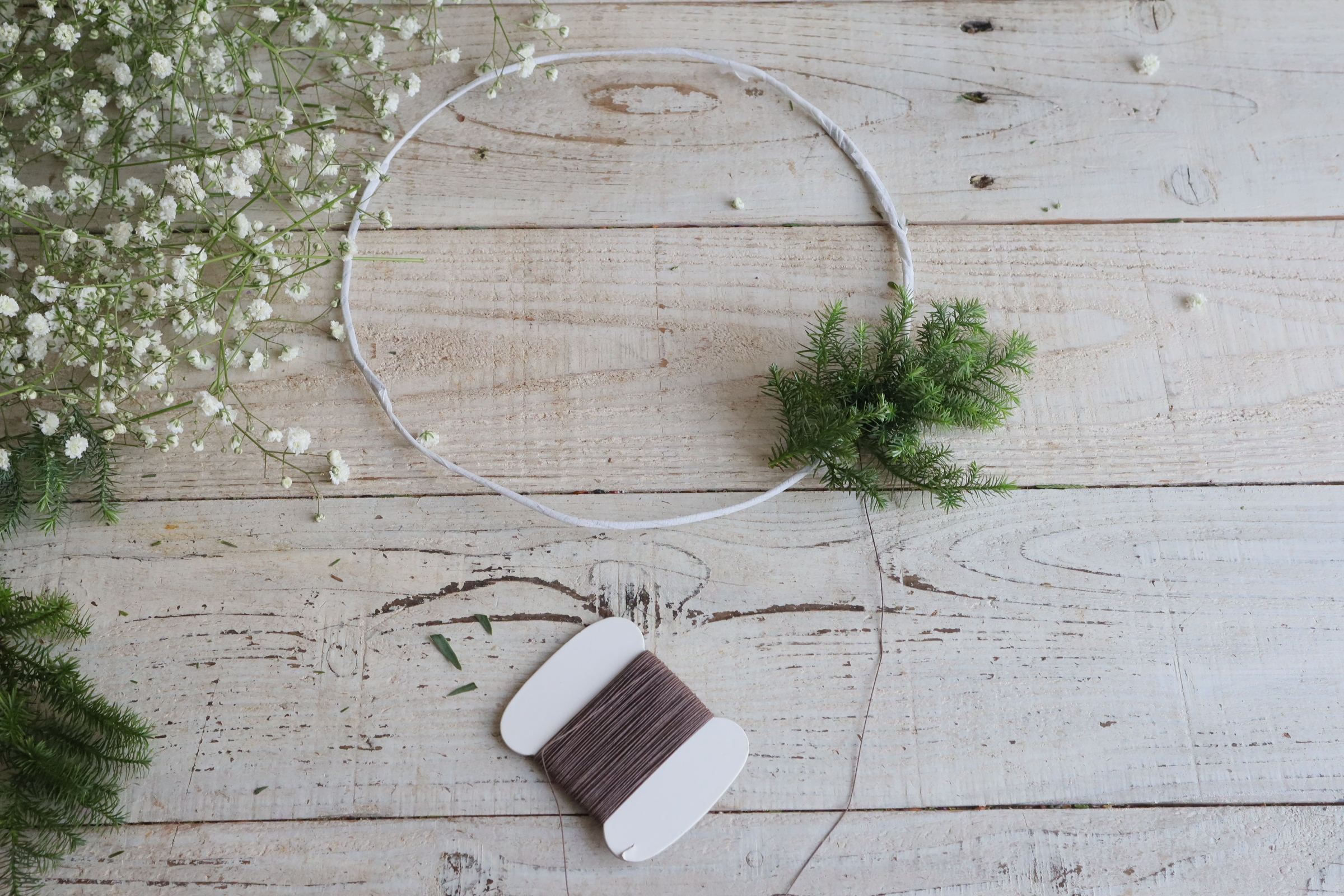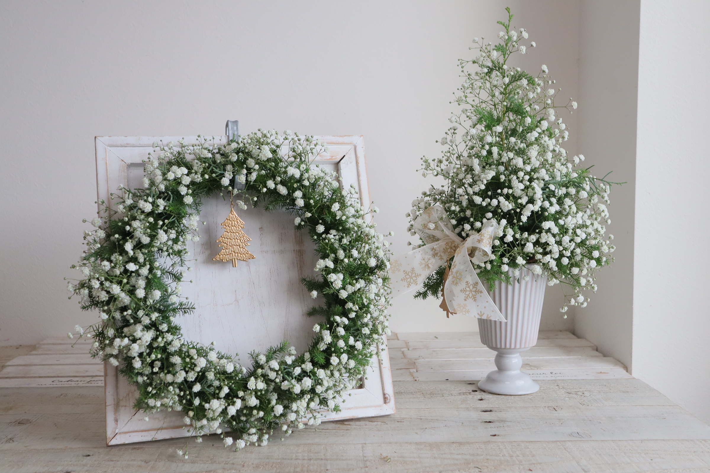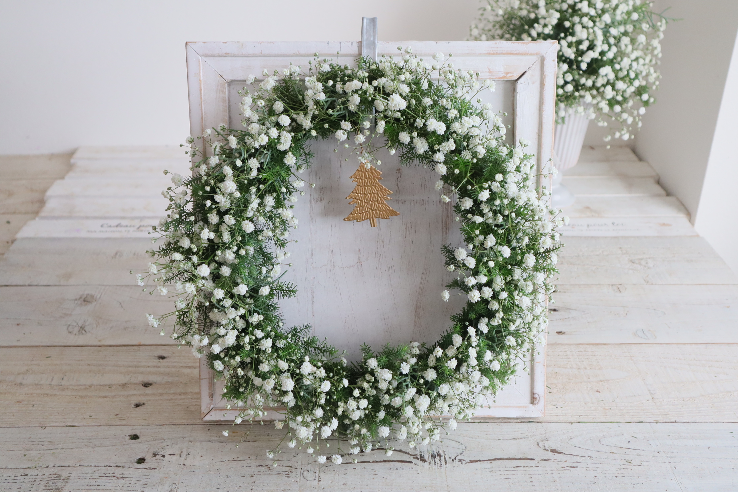 レッスン インテリア/『かすみ草でホワイトクリスマス(リース)』の作り方