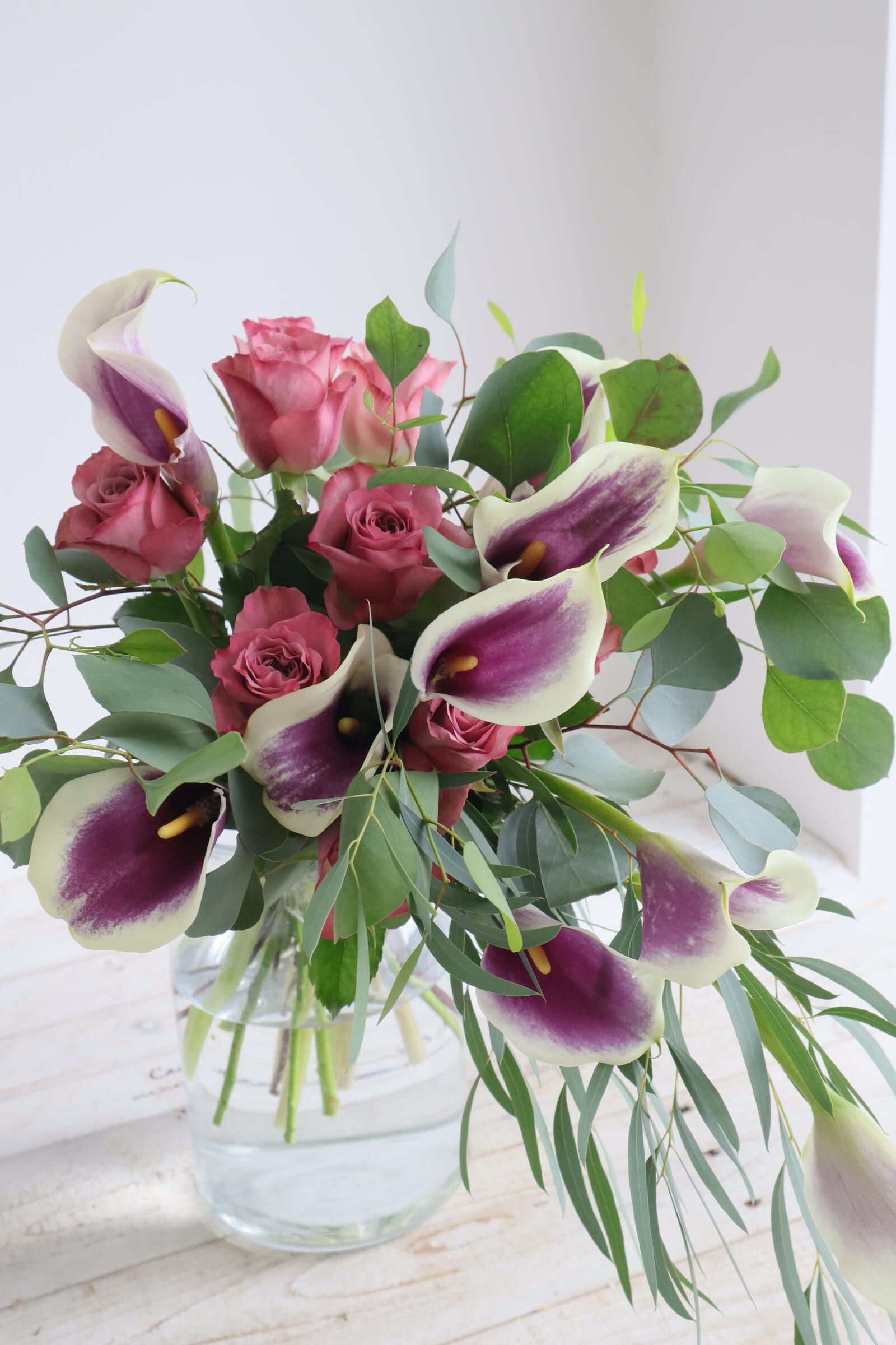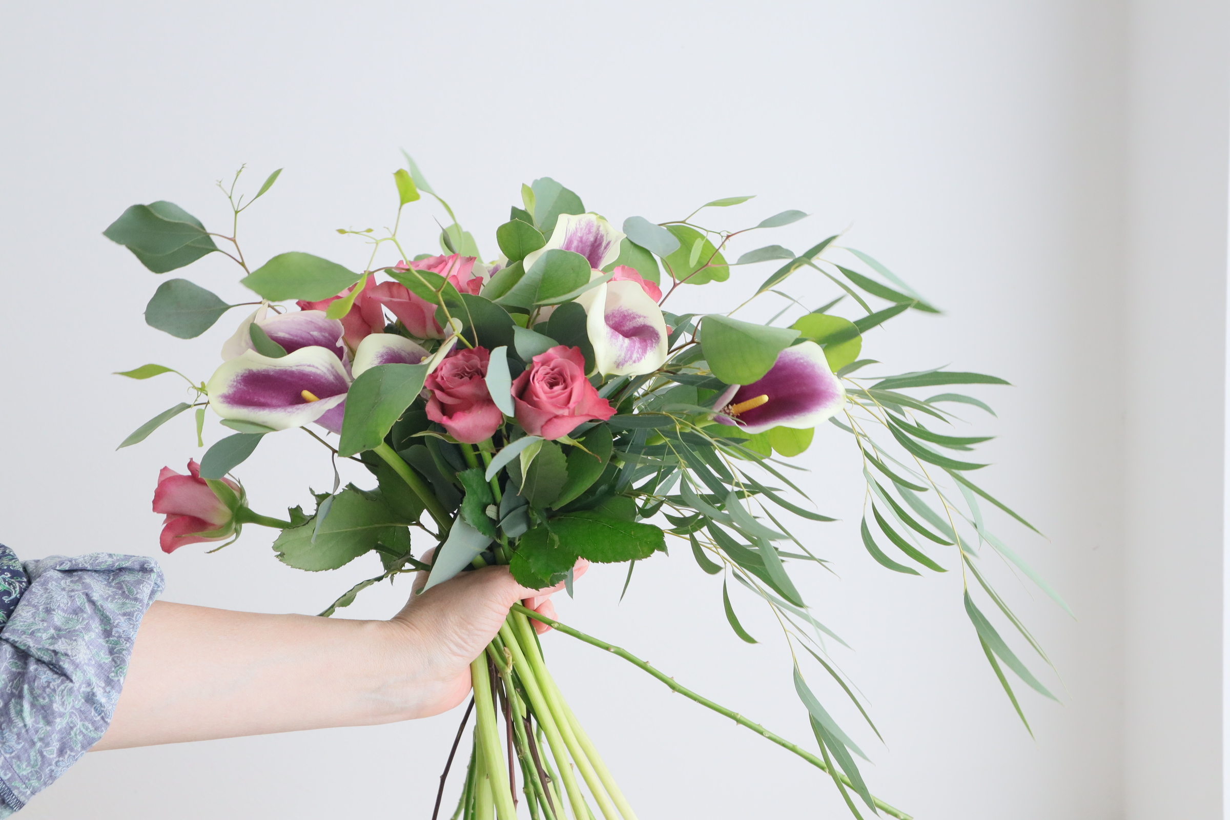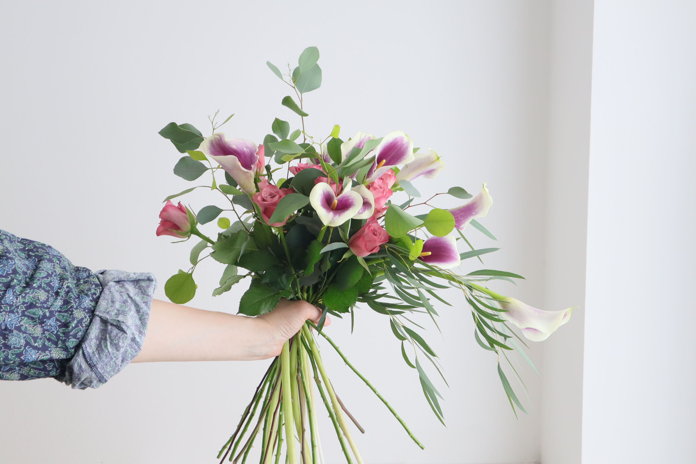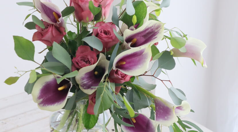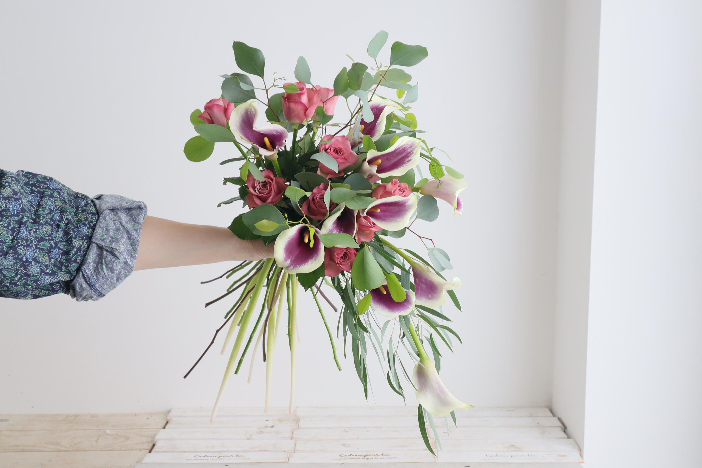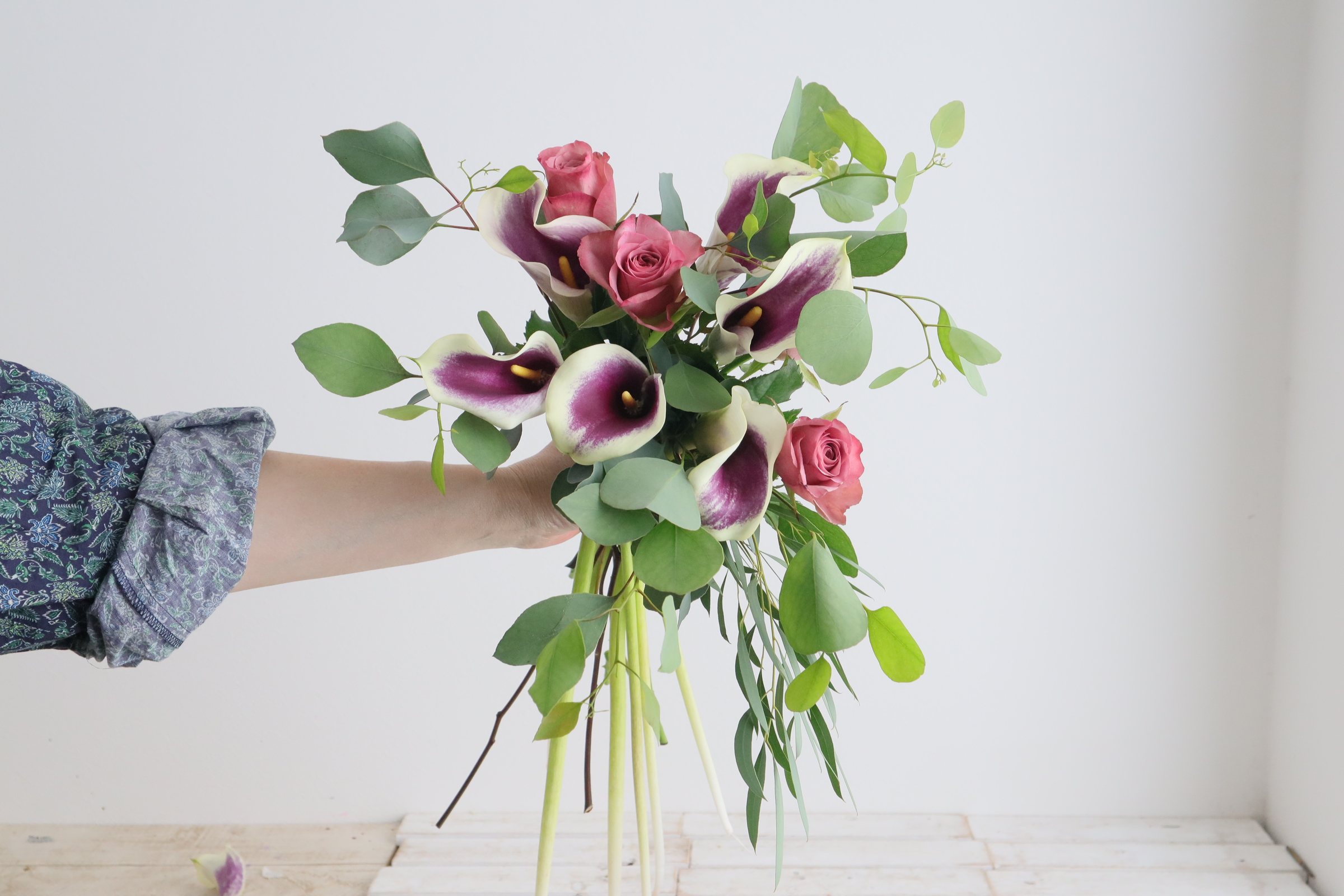 『秋のカラーとバラのブーケ』の作り方 ~うきうき花レシピ