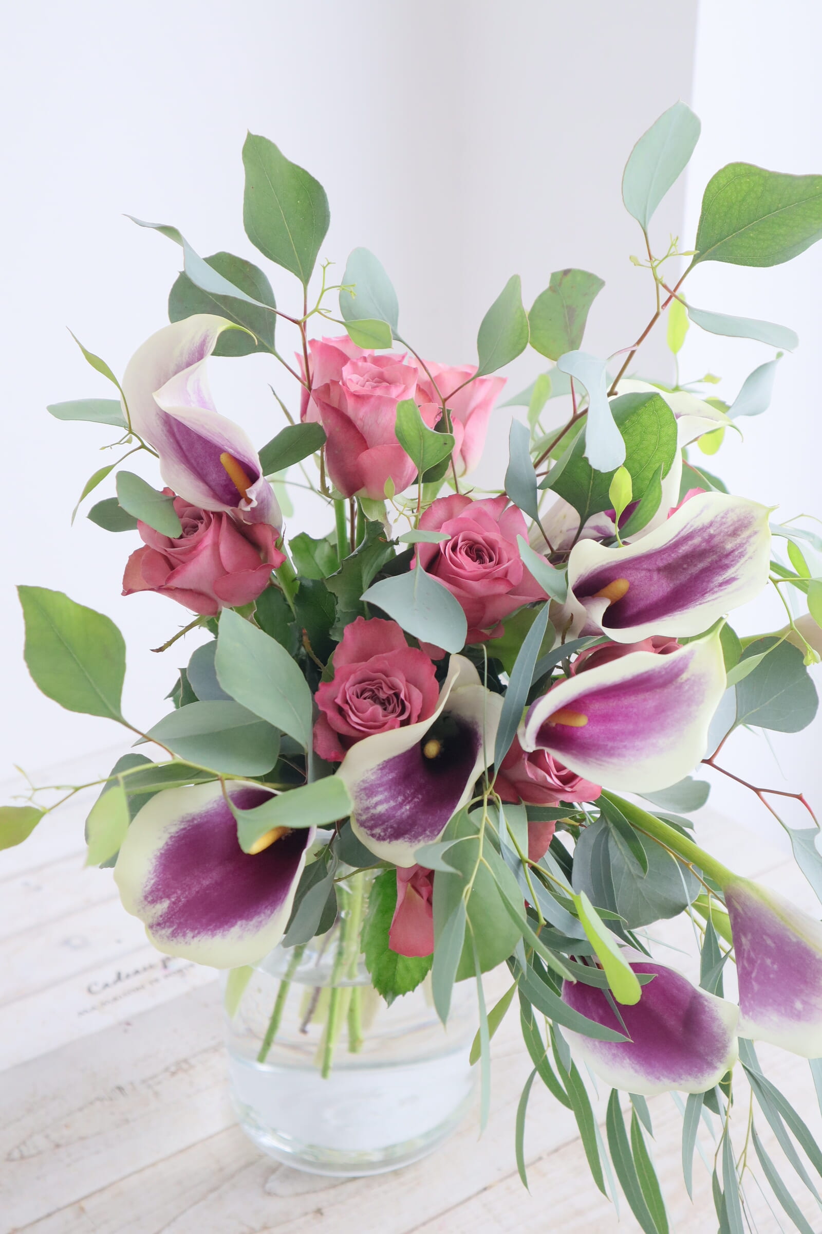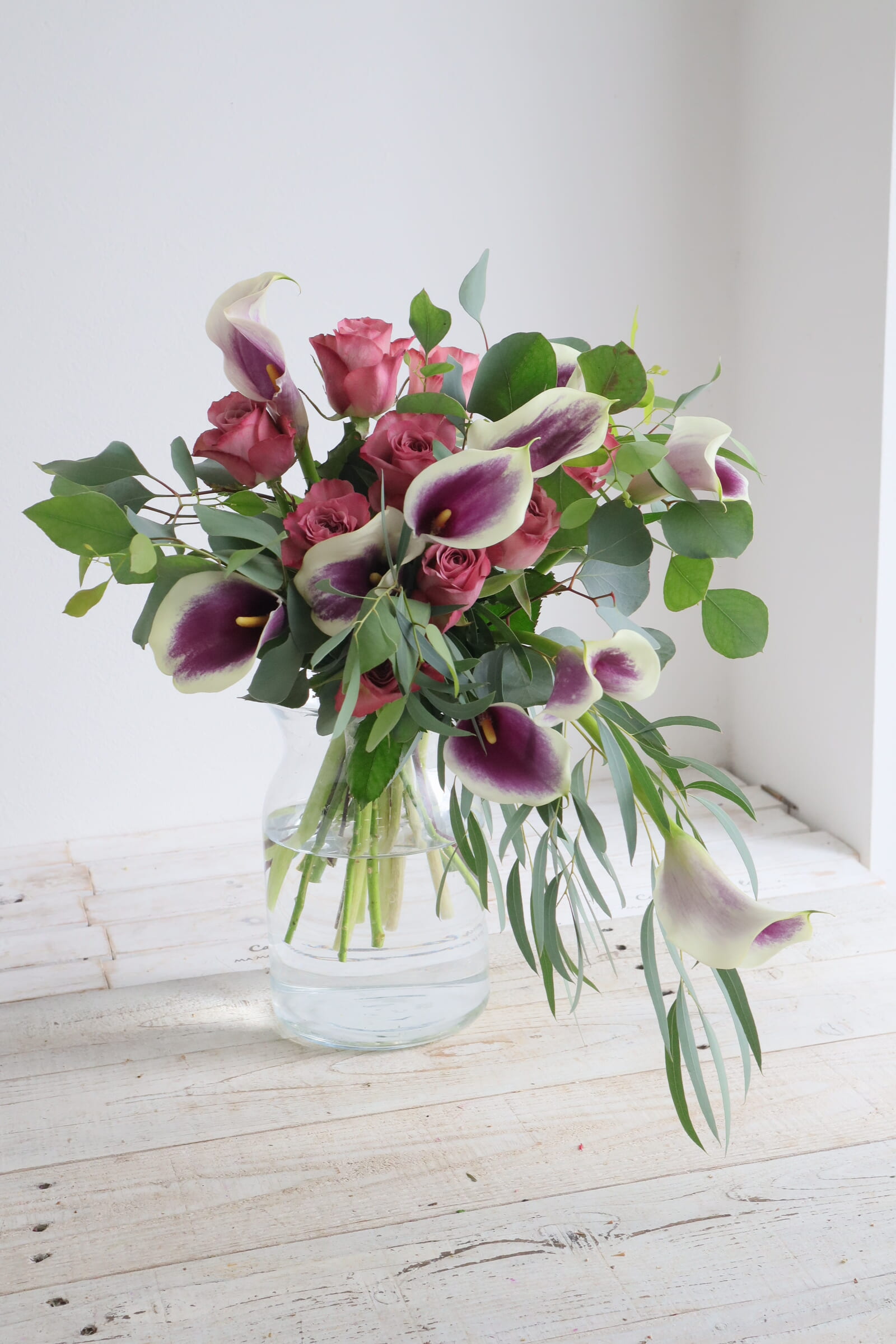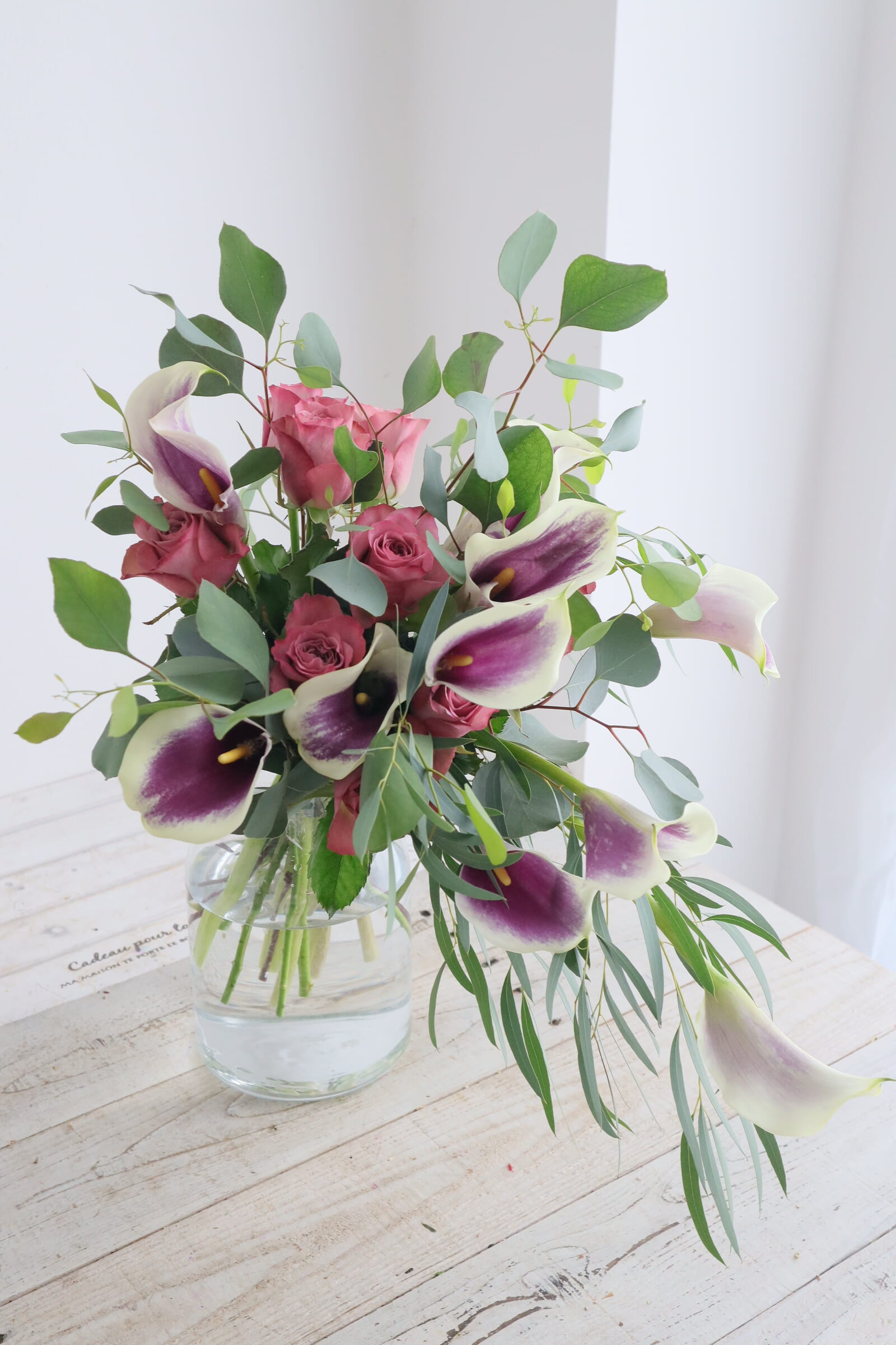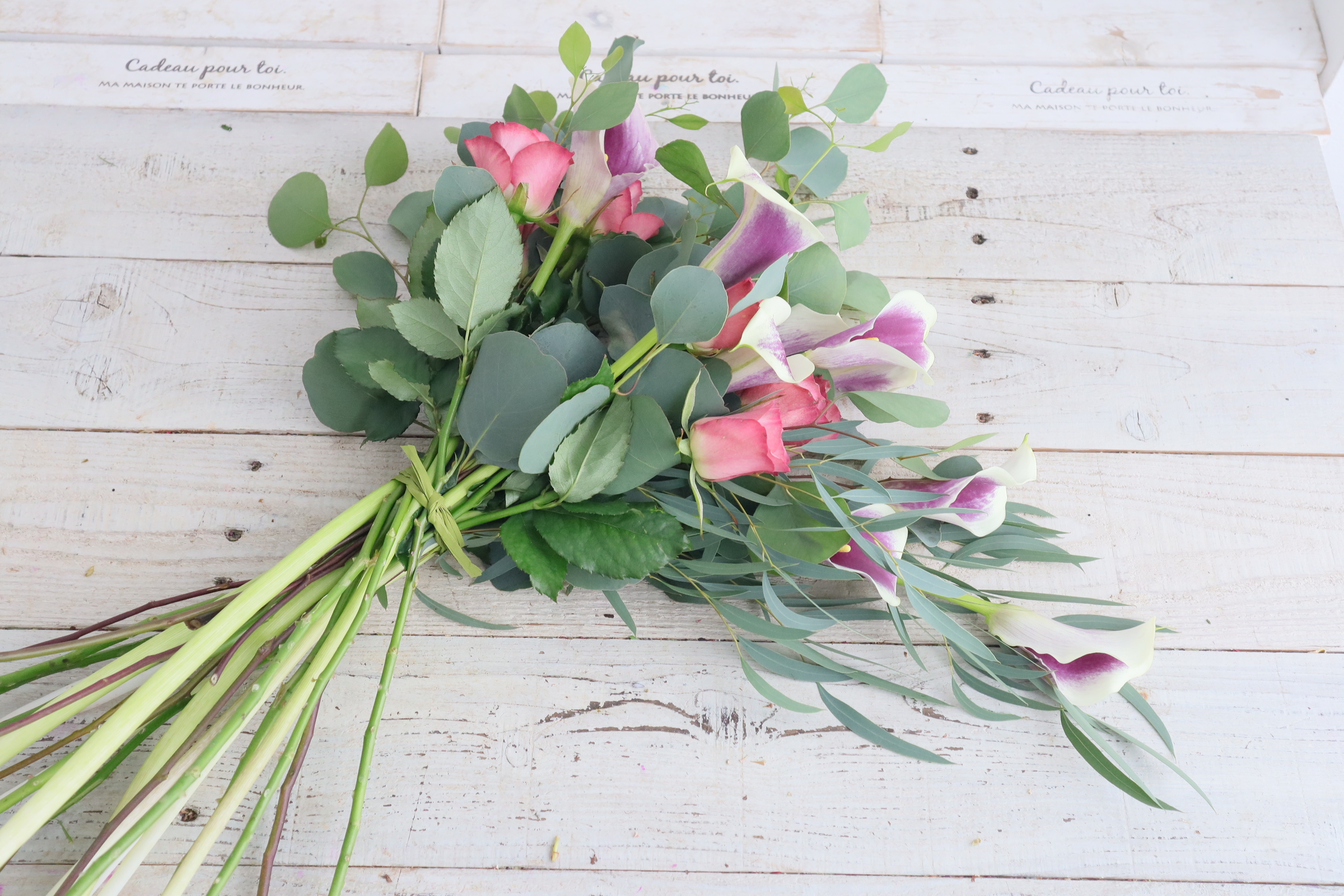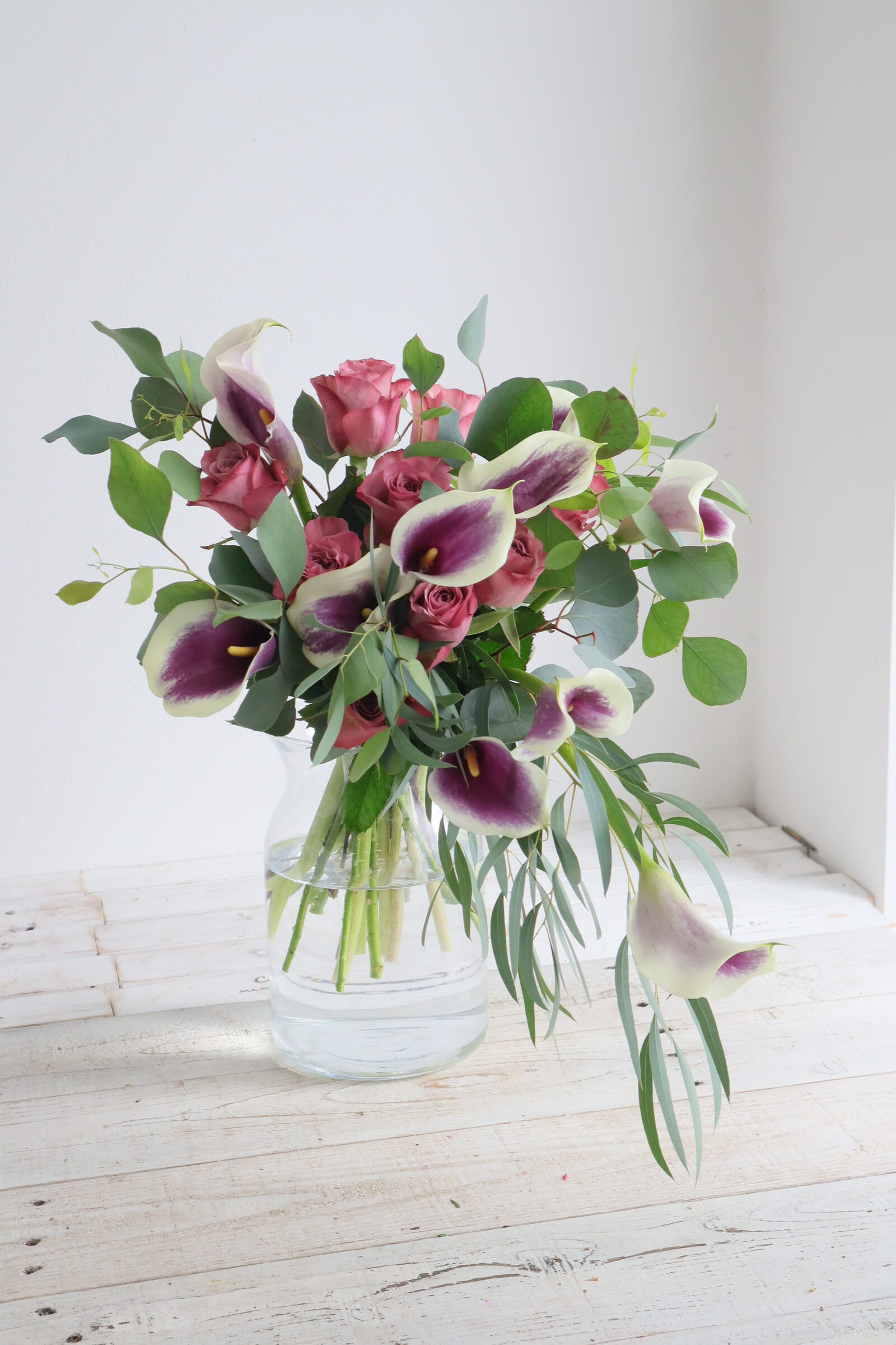 『秋のカラーとバラのブーケ』の作り方 ~うきうき花レシピ