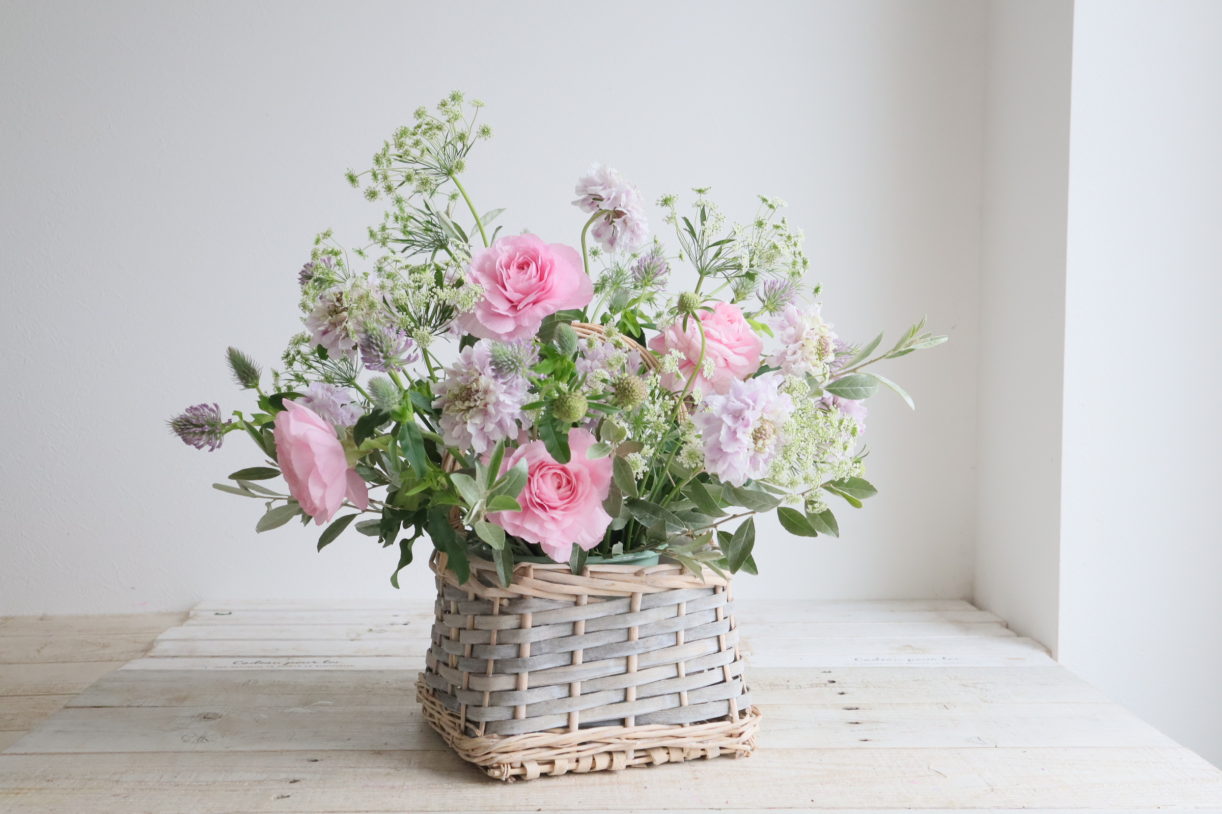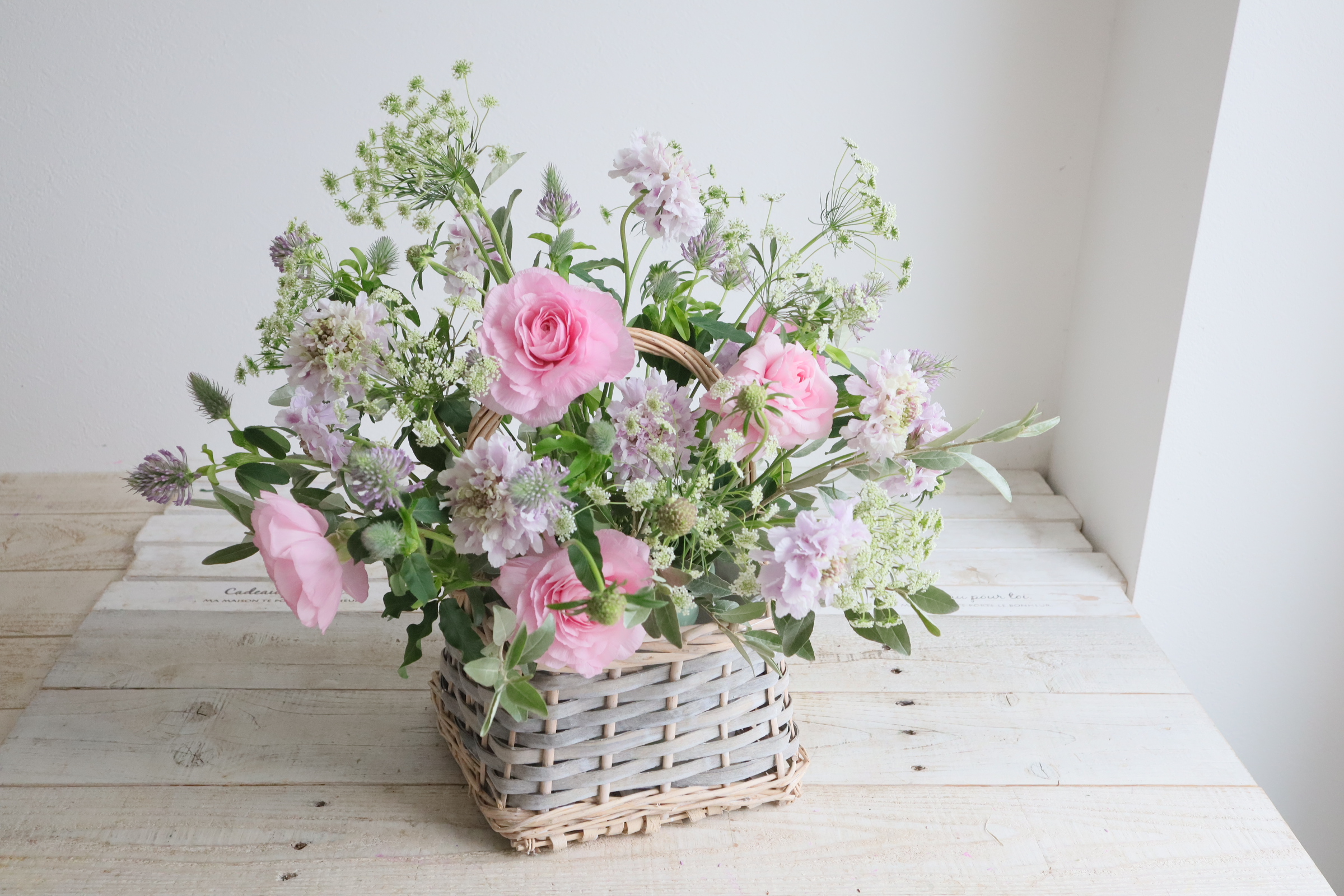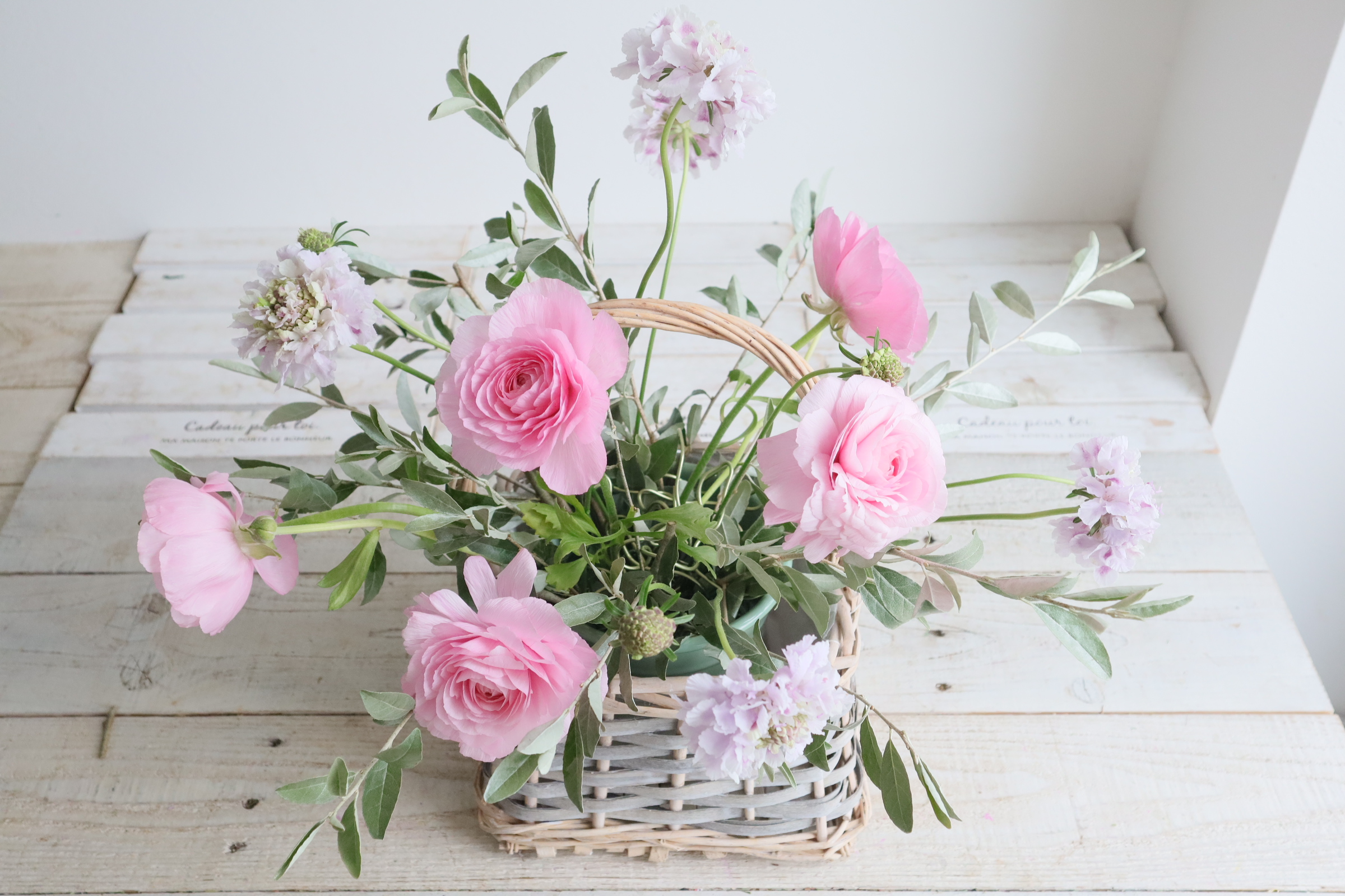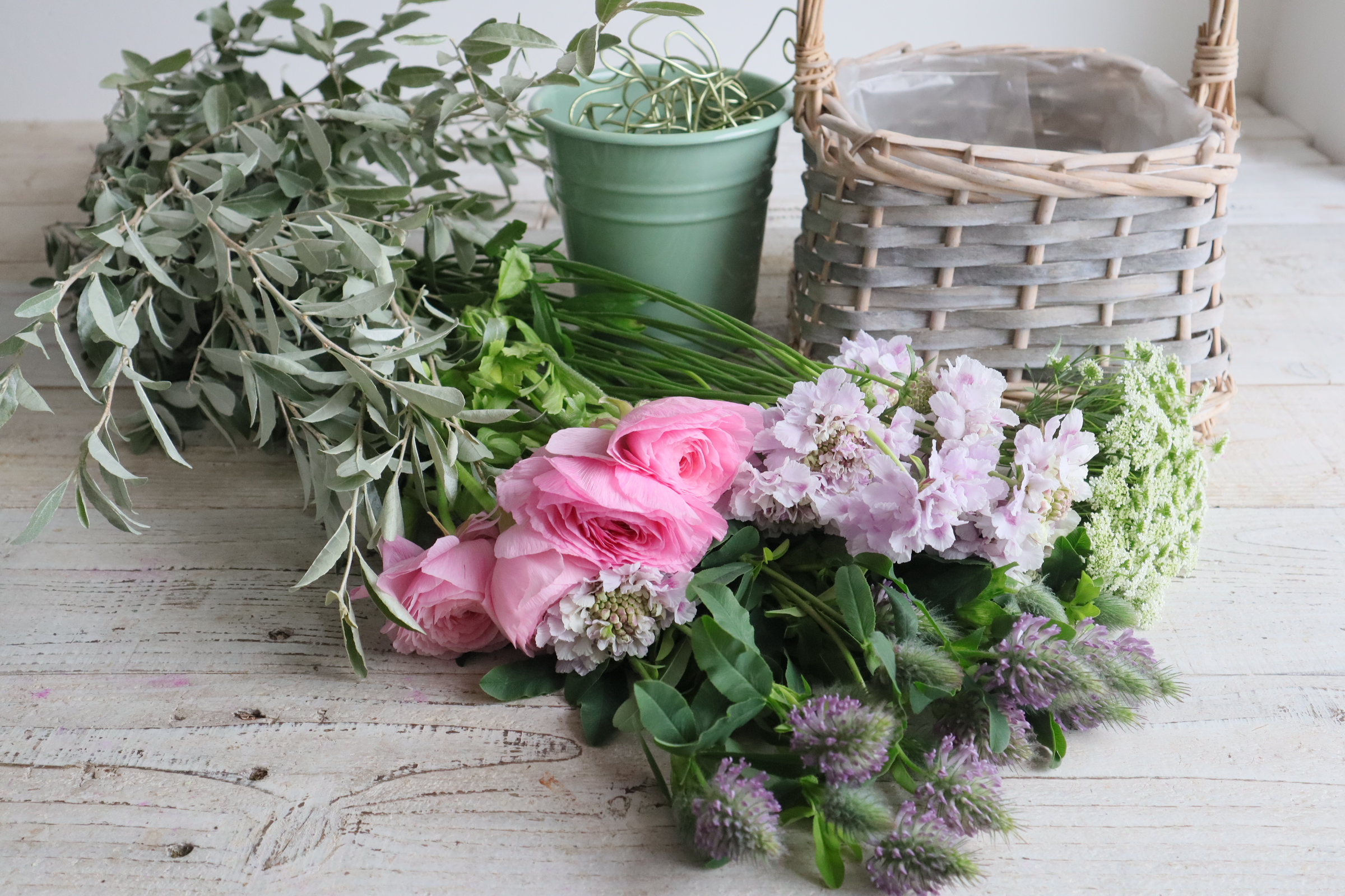 レッスン インテリア/『ピンク色の草花で春のバスケットアレンジ』の作り方