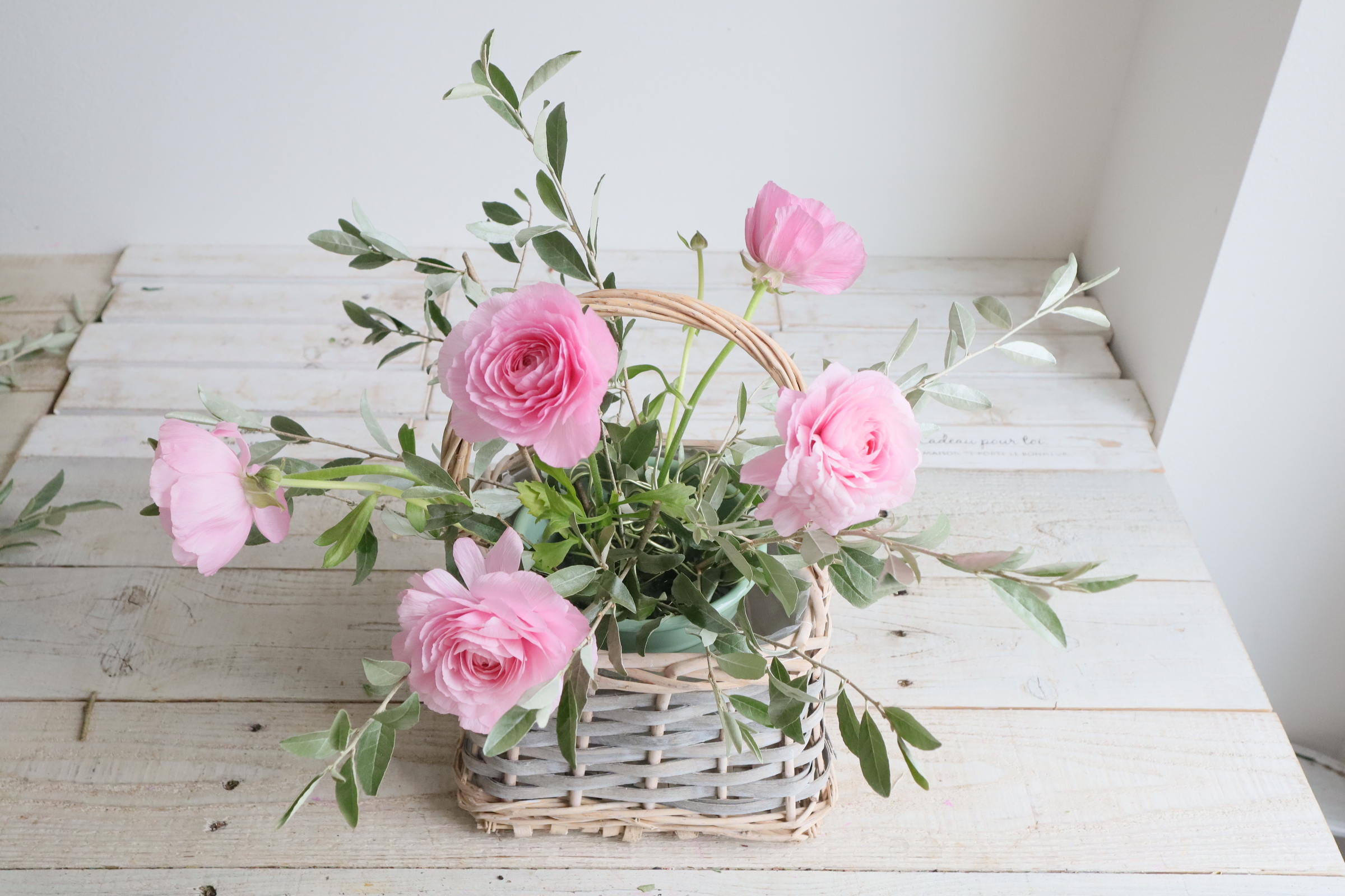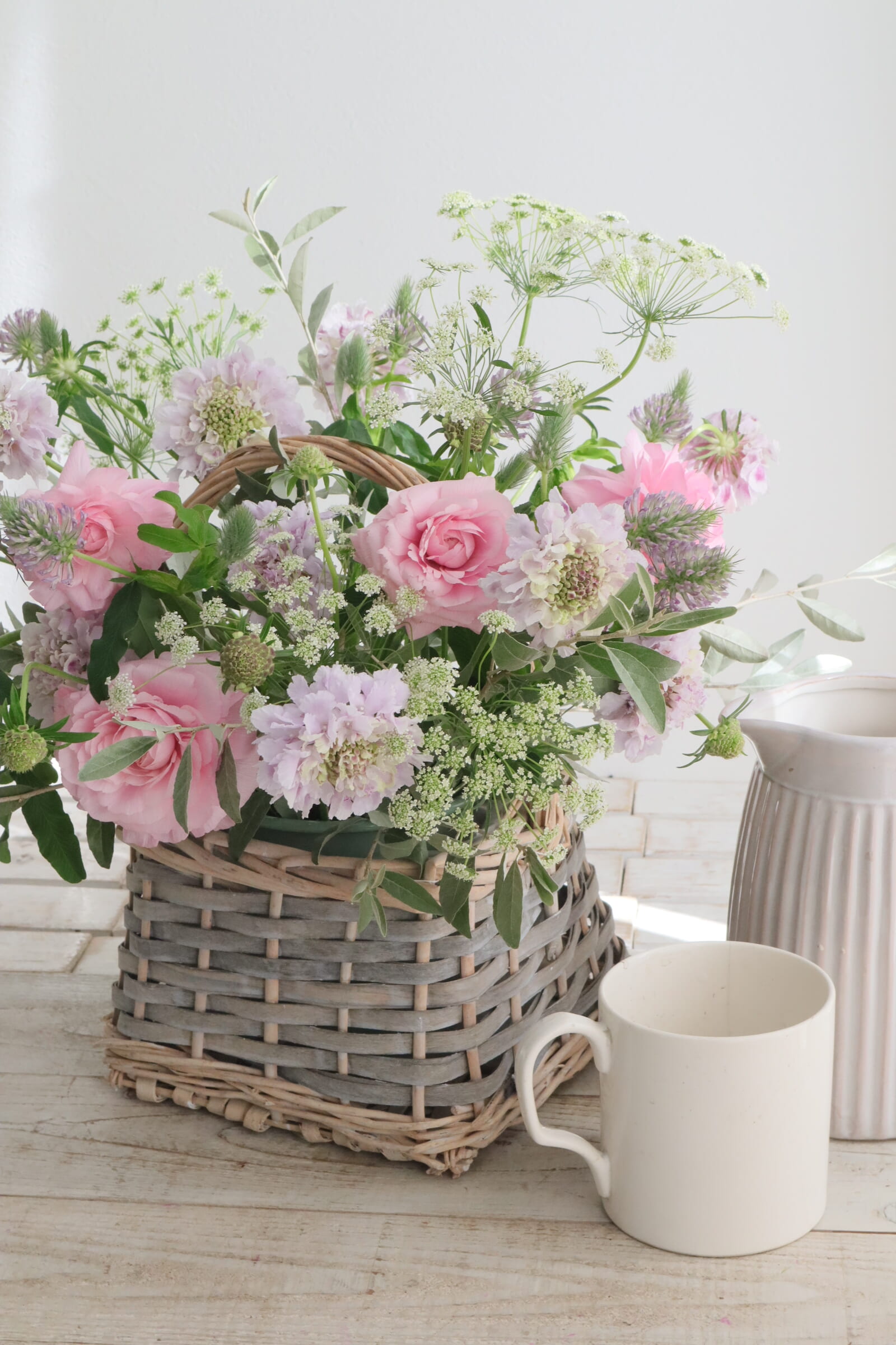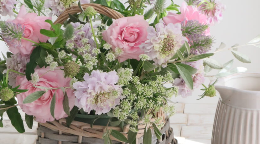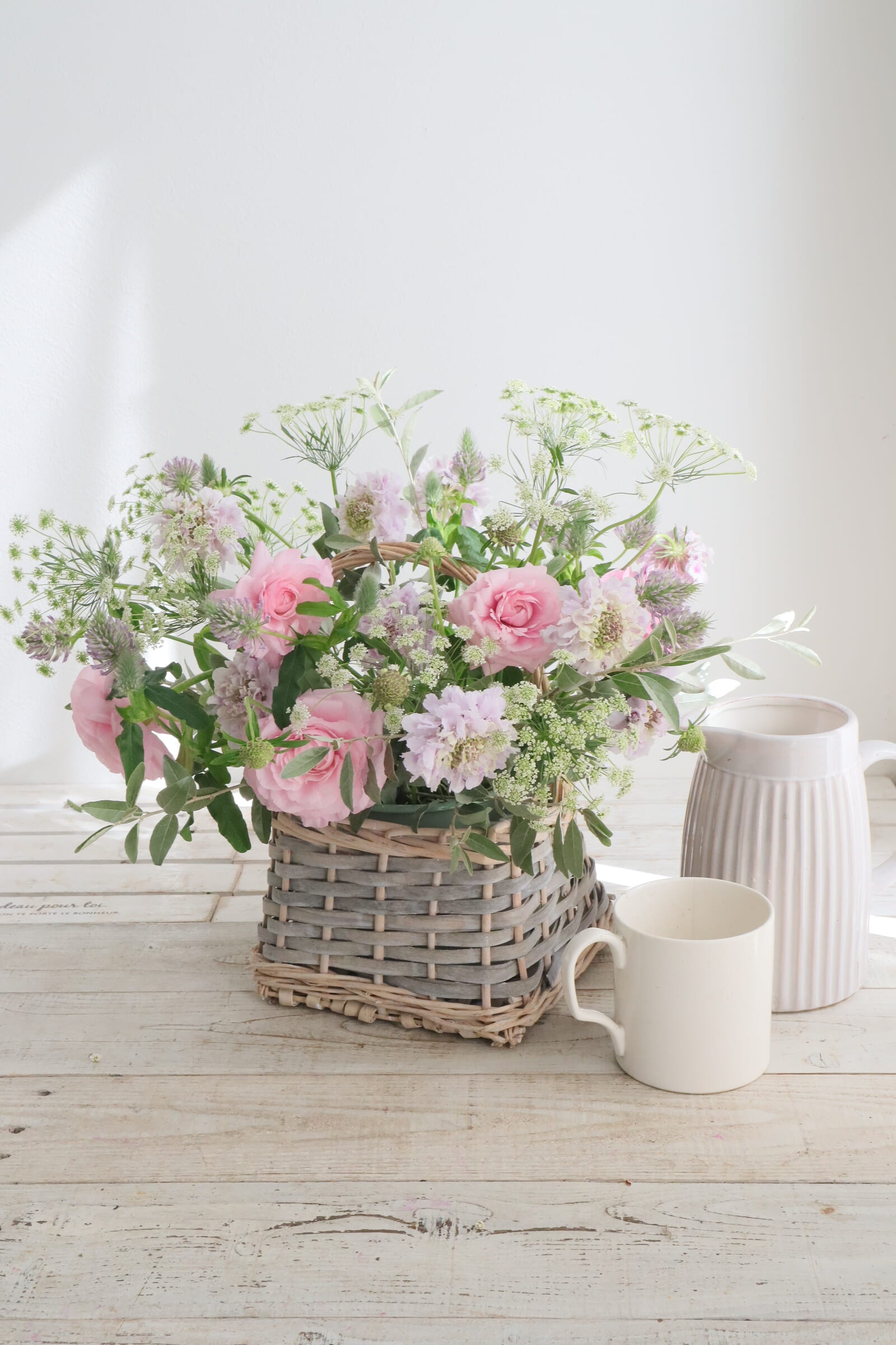 レッスン インテリア/『ピンク色の草花で春のバスケットアレンジ』の作り方