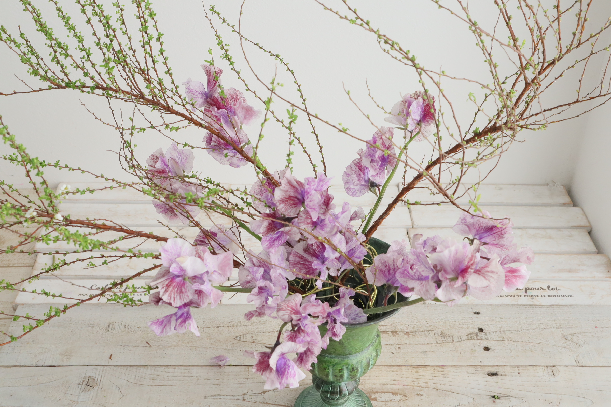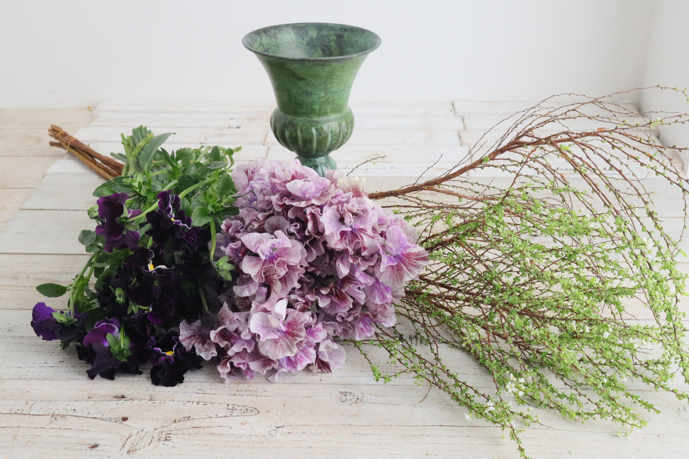 レッスン インテリア/『パンジーとスイトピーのふわふわブーケ』の作り方