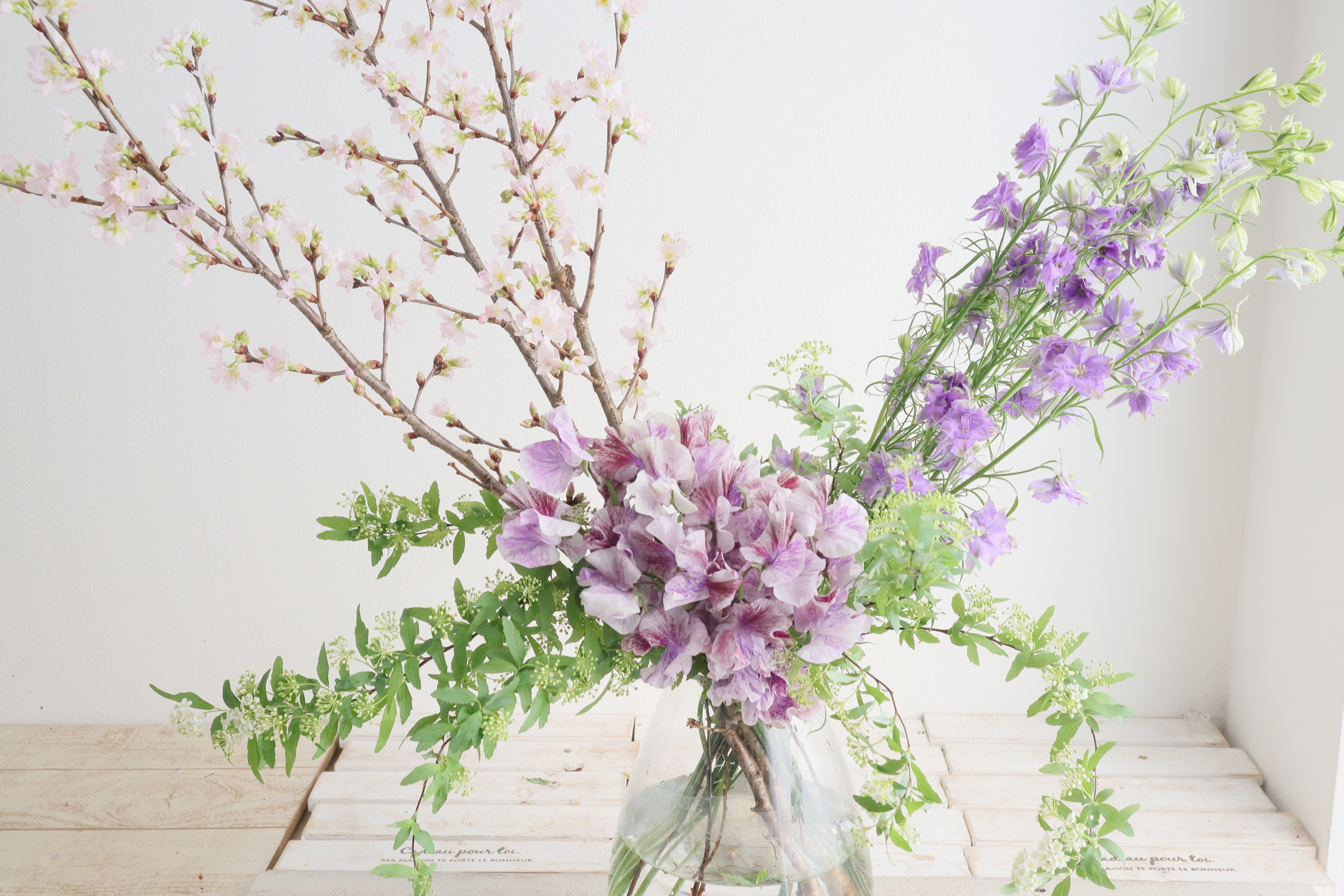 レッスン インテリア/『桜とラクスパーとスイトピー』の作り方