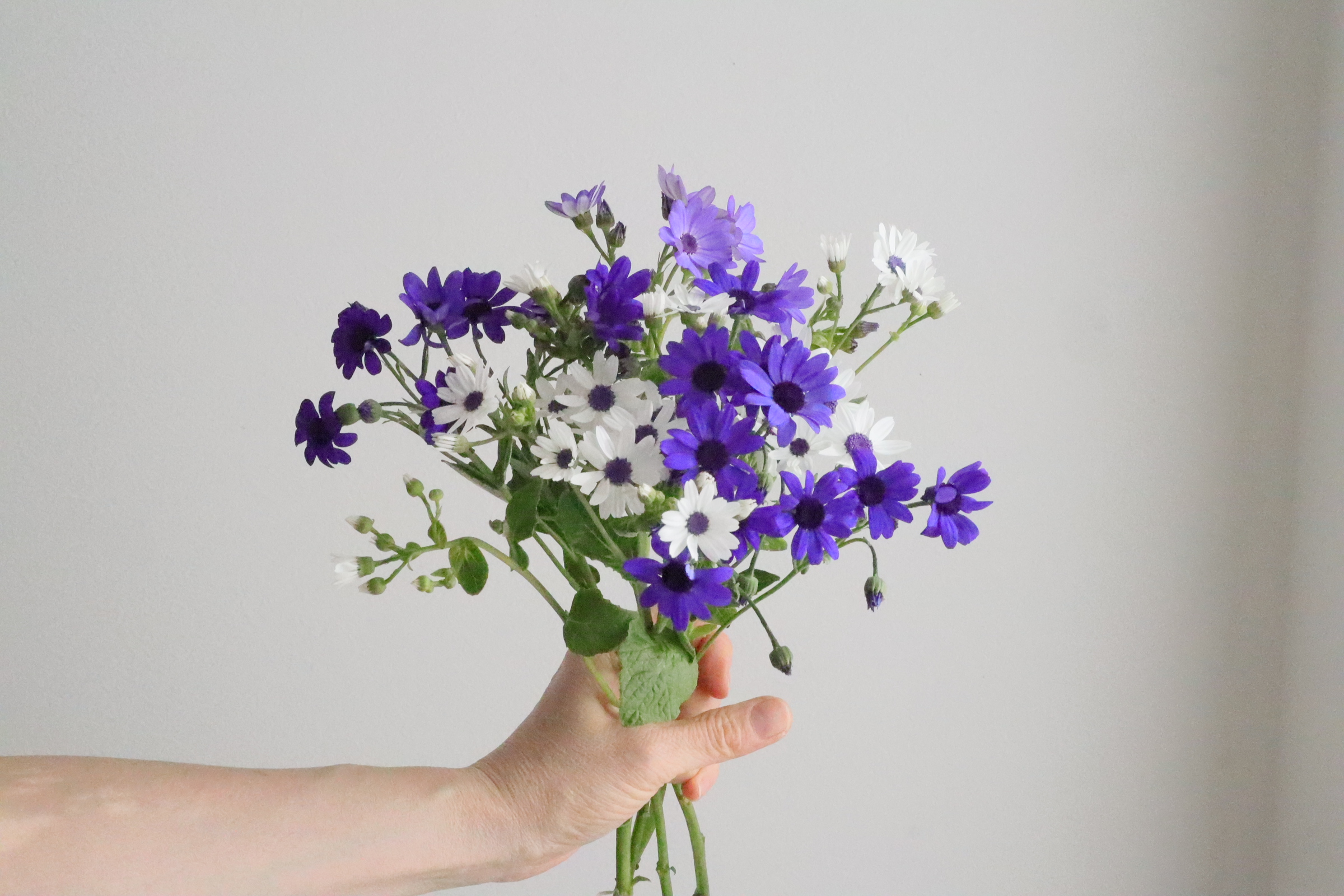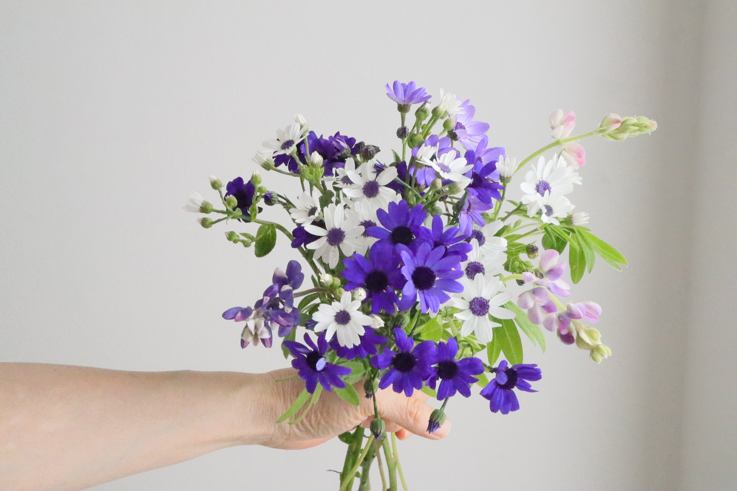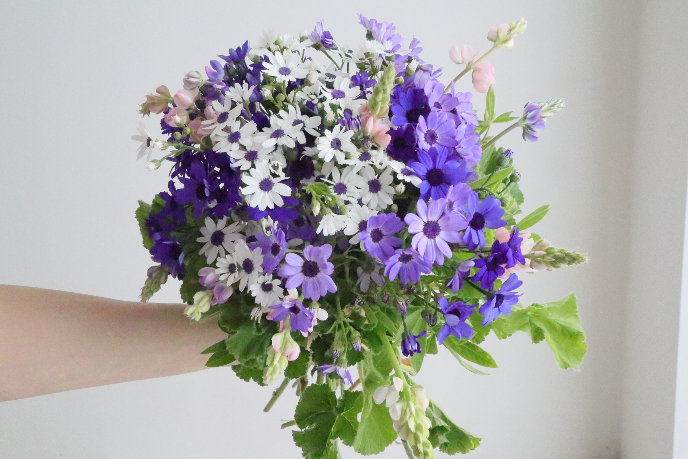 サイネリアは、元々鉢花として春に市場に出回っていましたが、切り花でも出回るようになりました。 独特なぶるーのサイネリアを集めてブーケにしてみましょう。