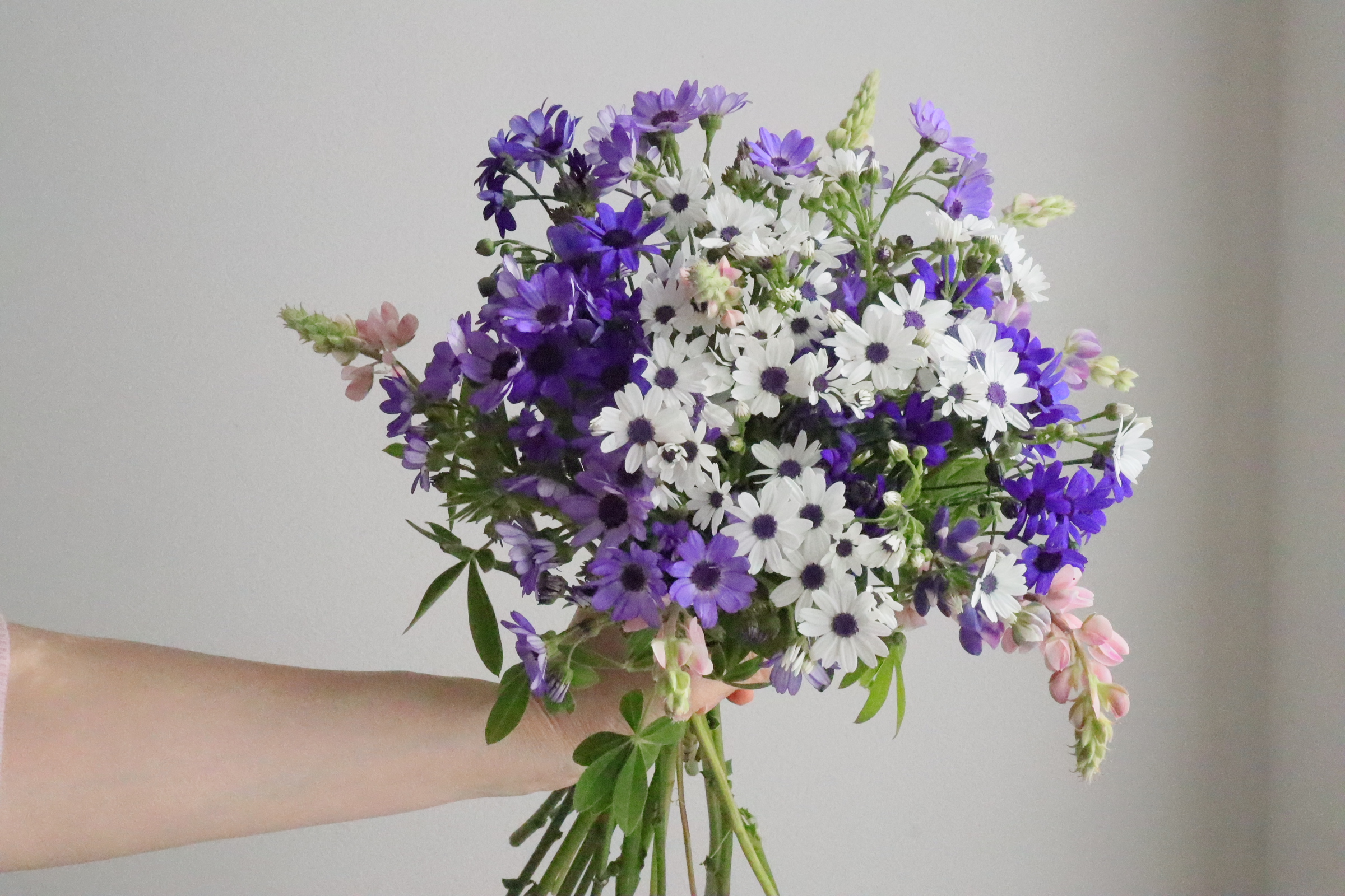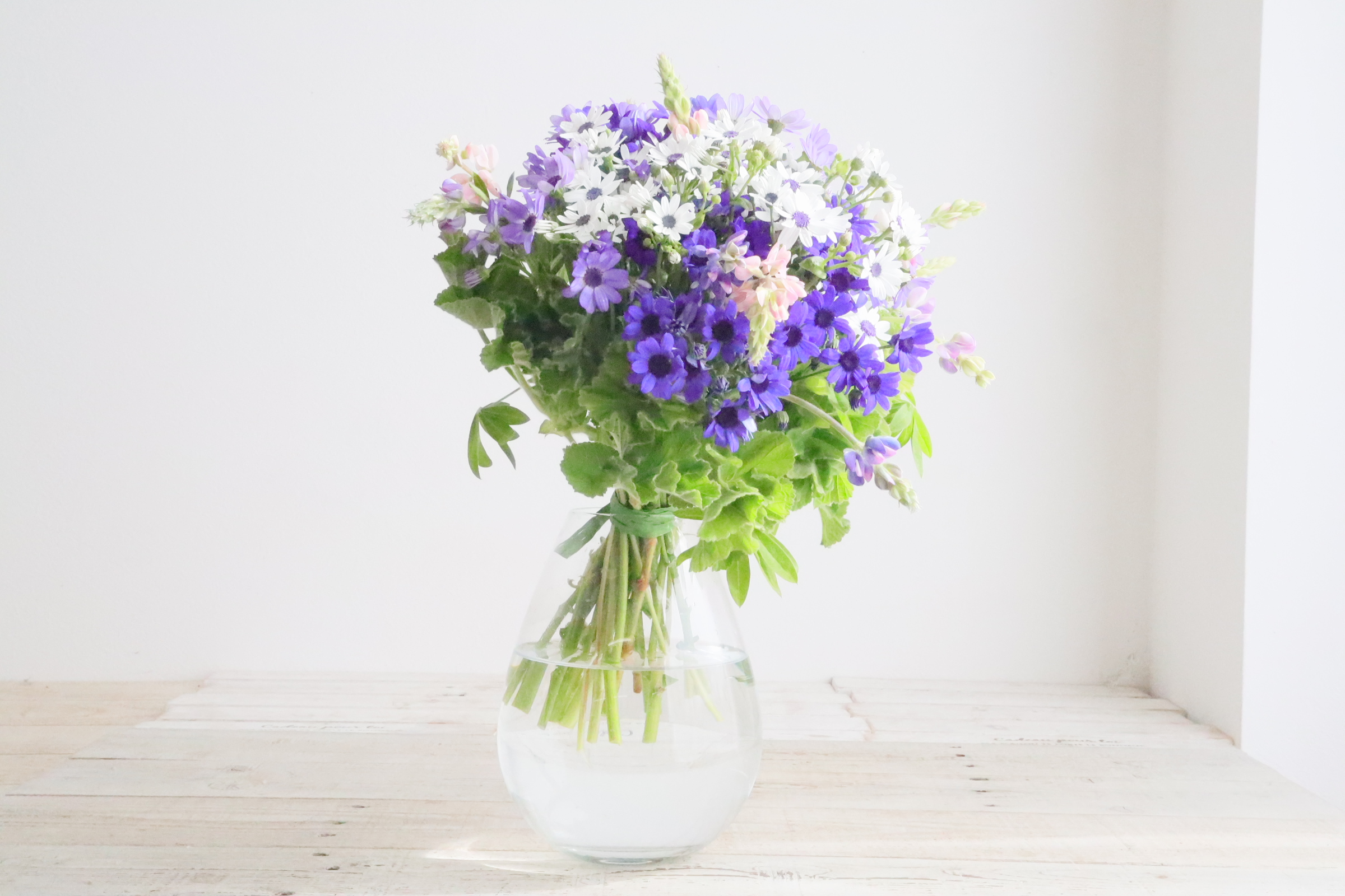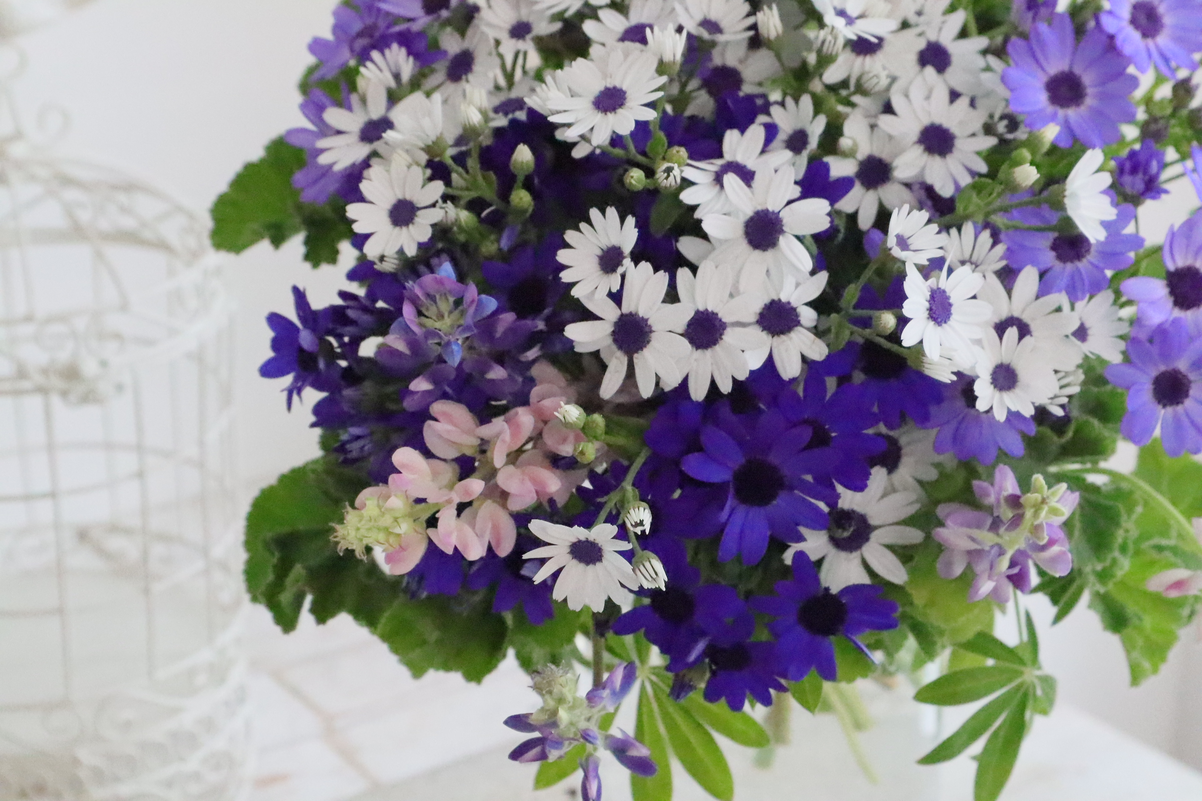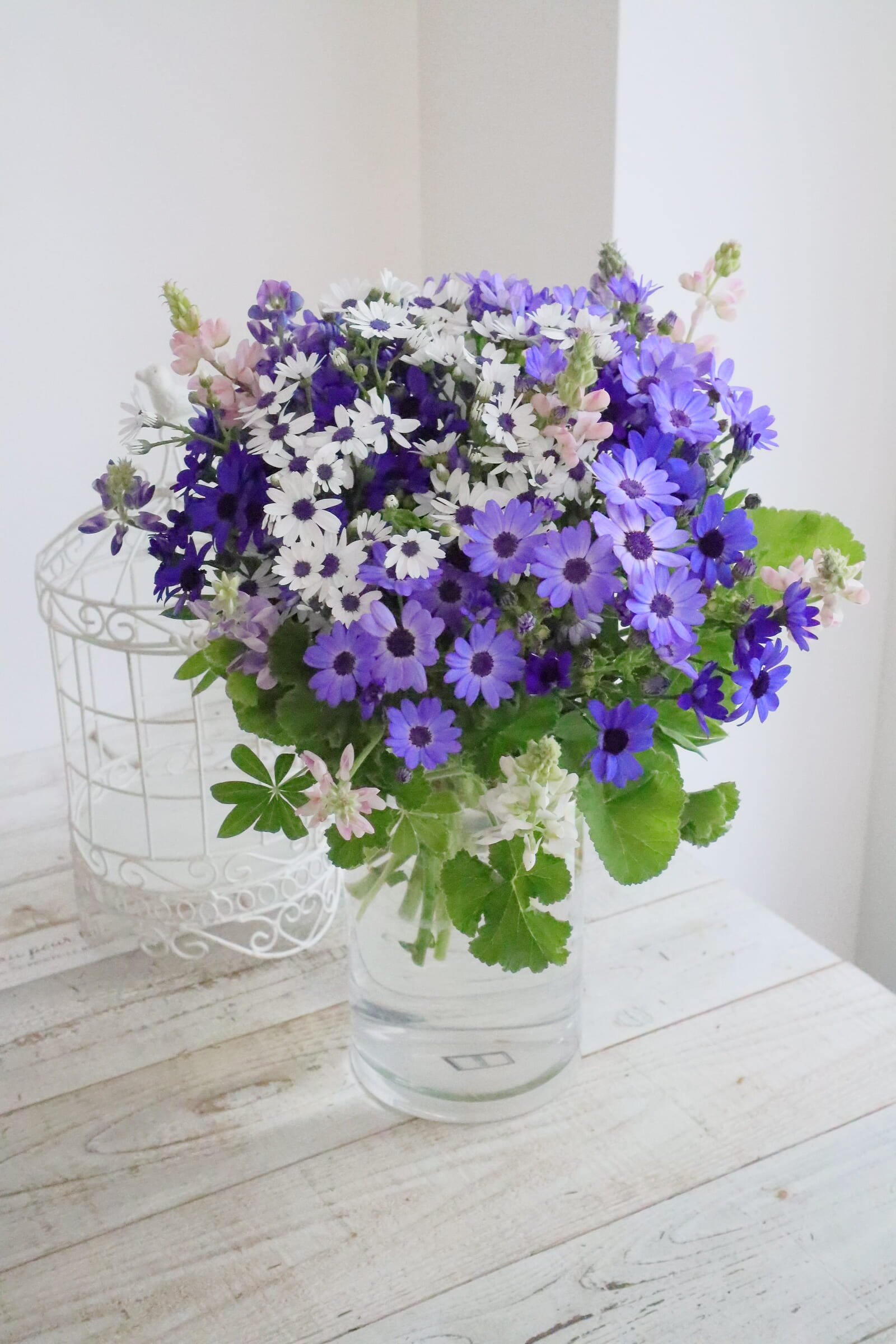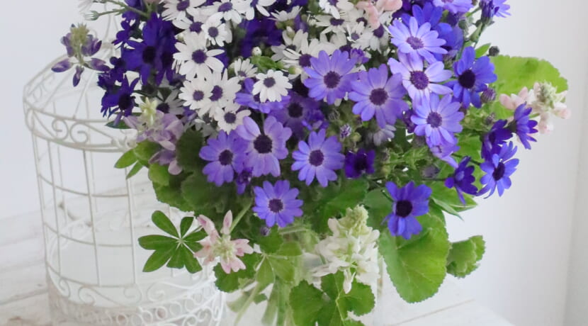 レッスン インテリア/『青いサイネリアのブーケ』の作り方