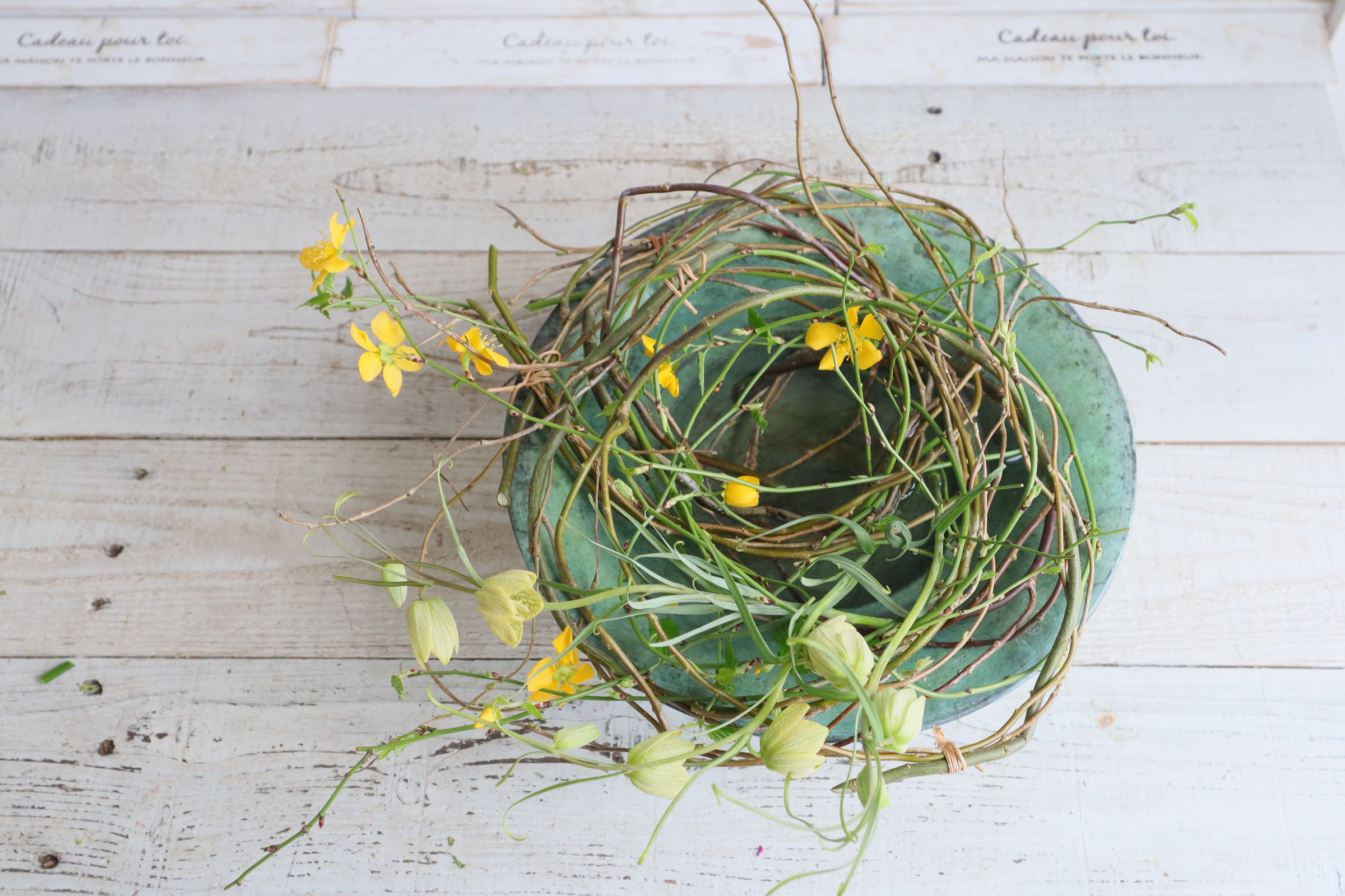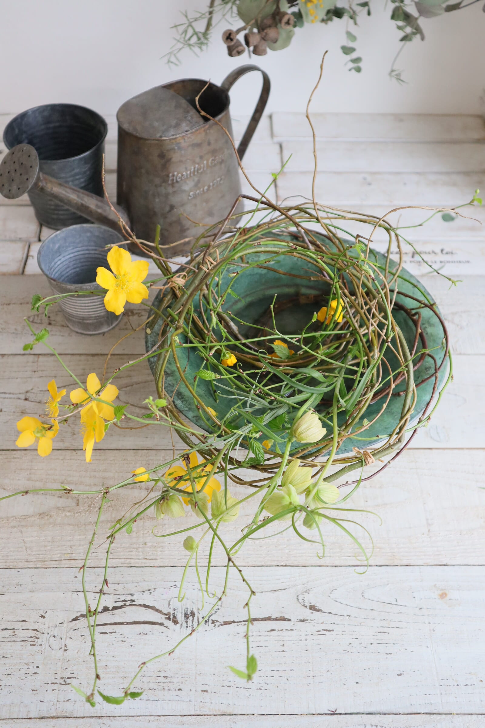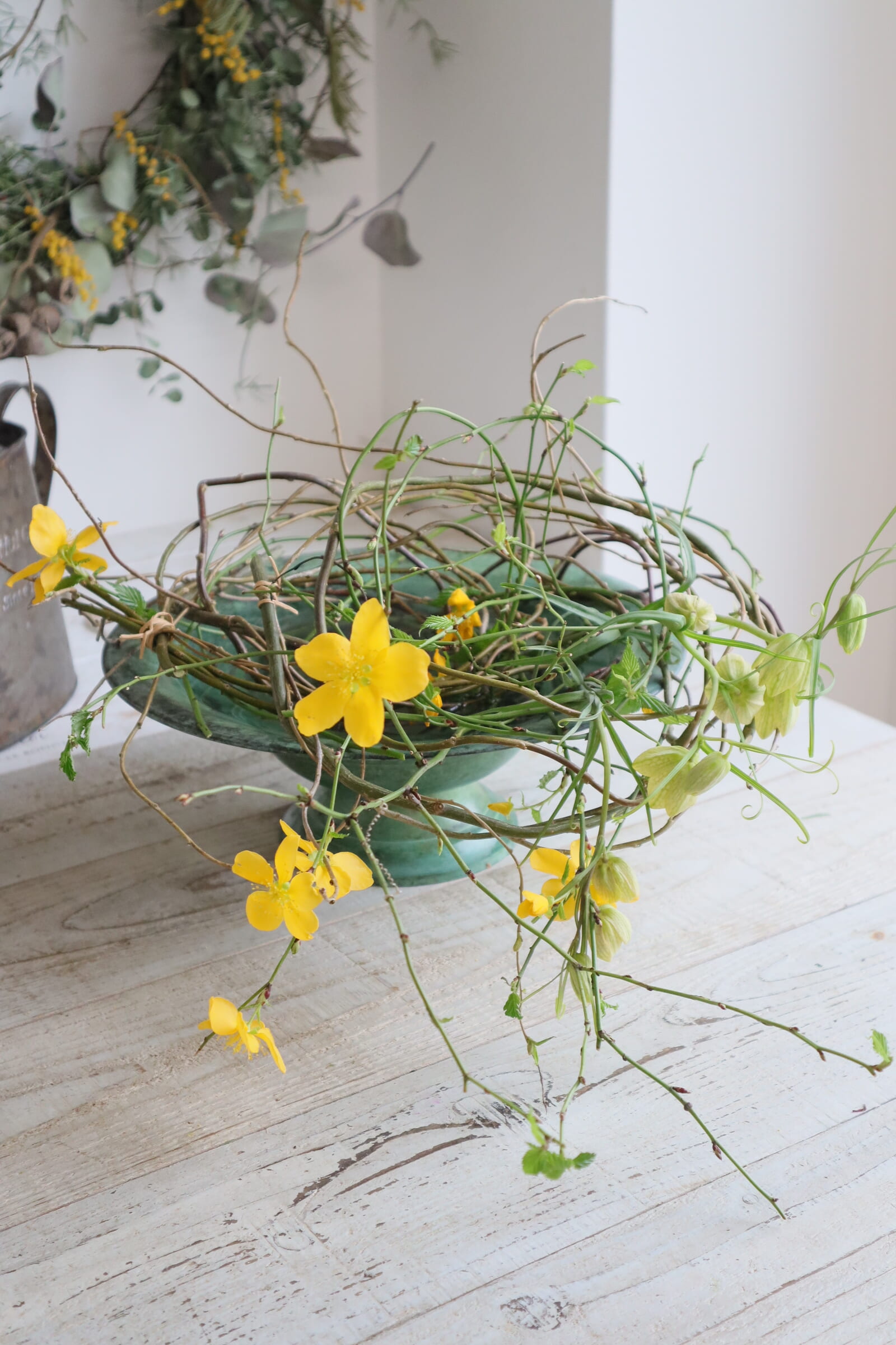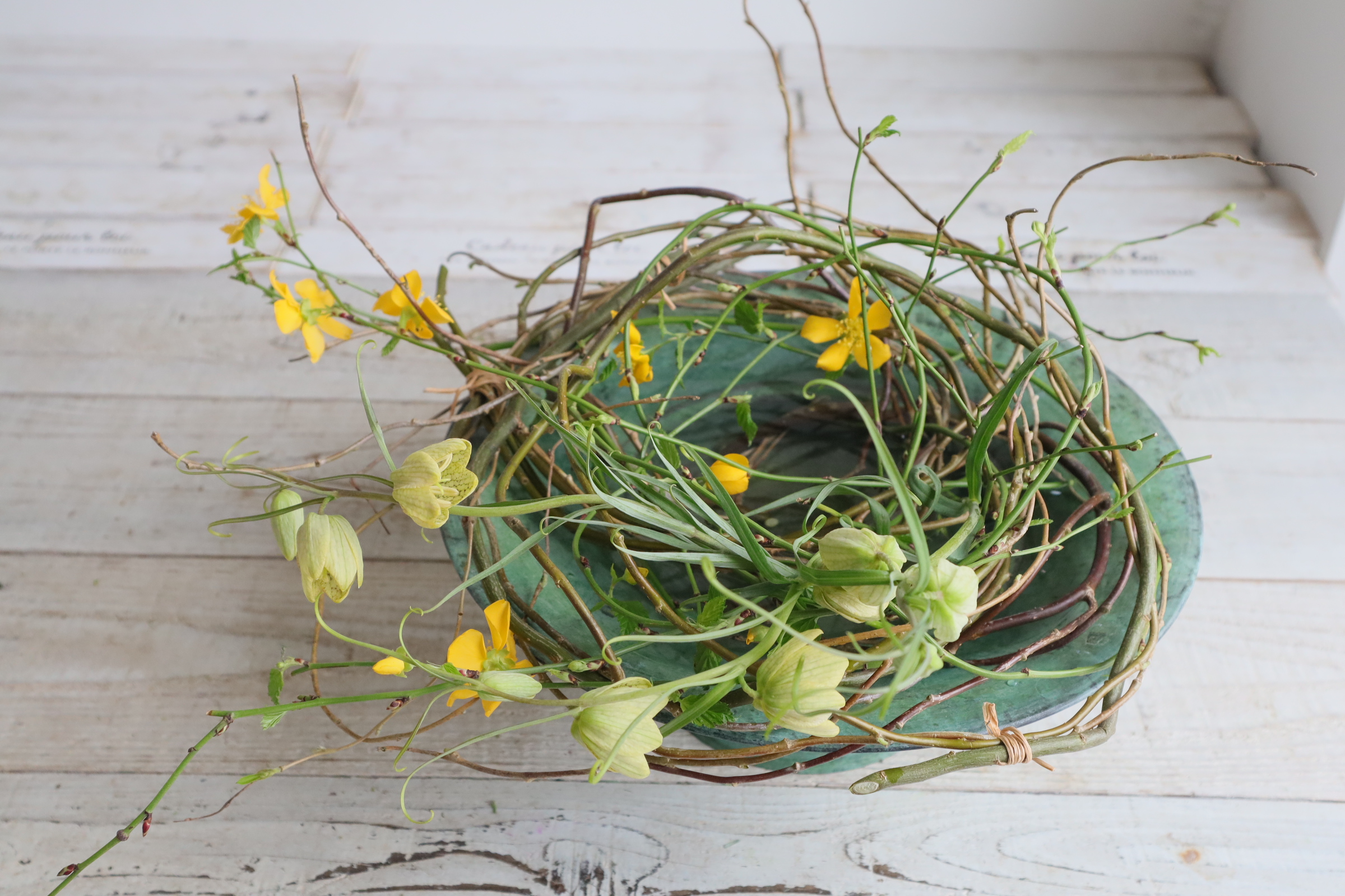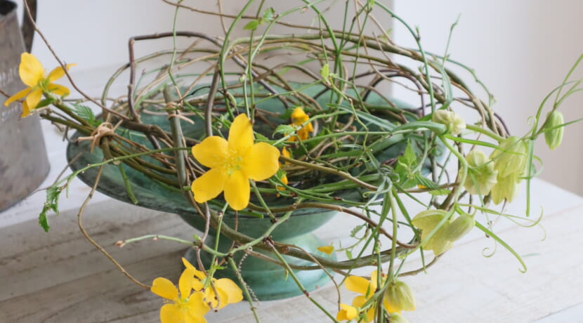 インテリア レッスン/『山吹の水盤リースアレンジ』の作り方