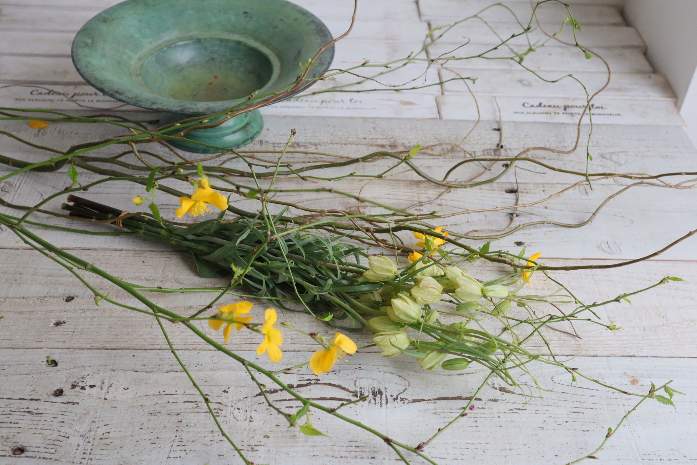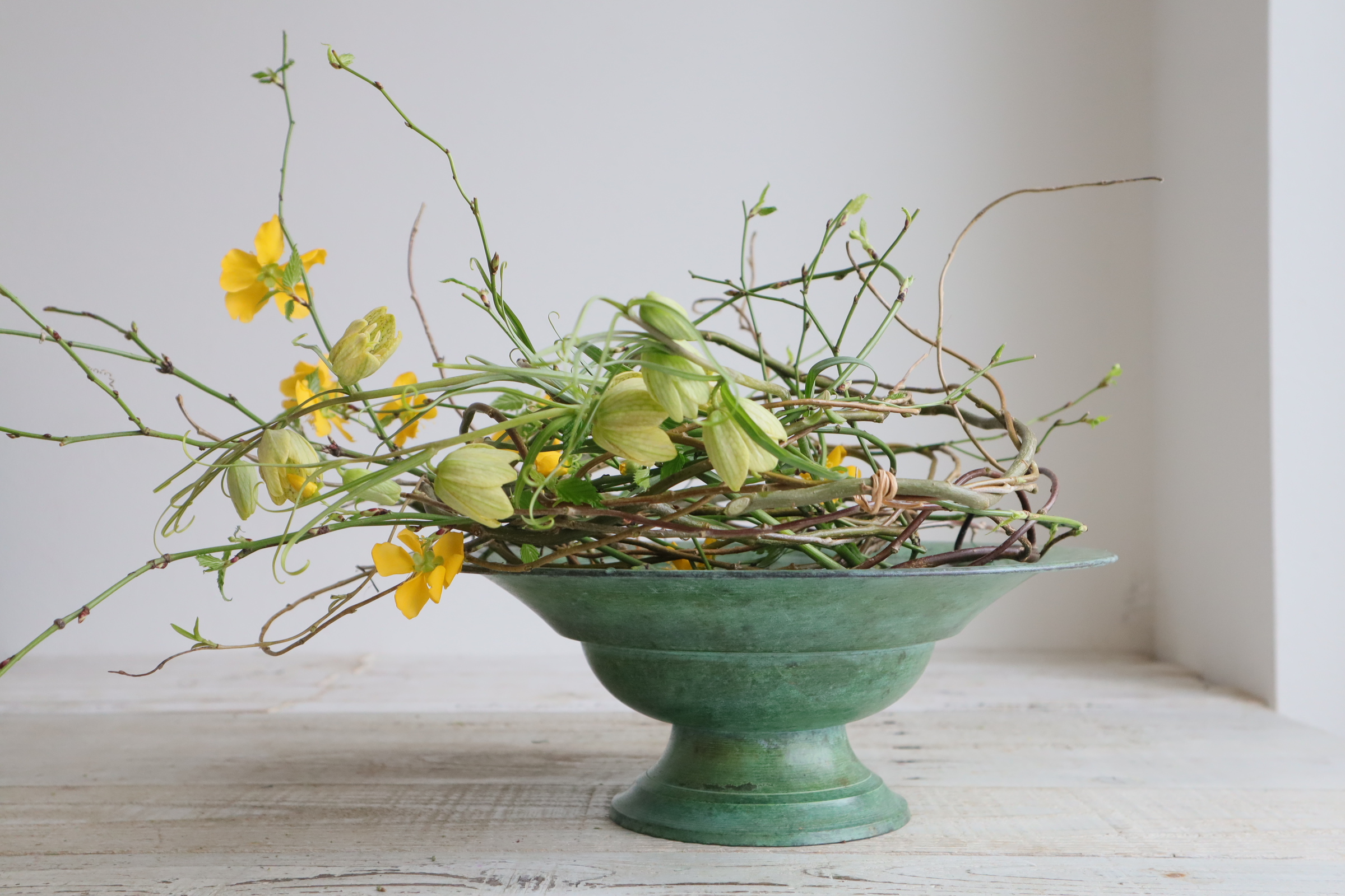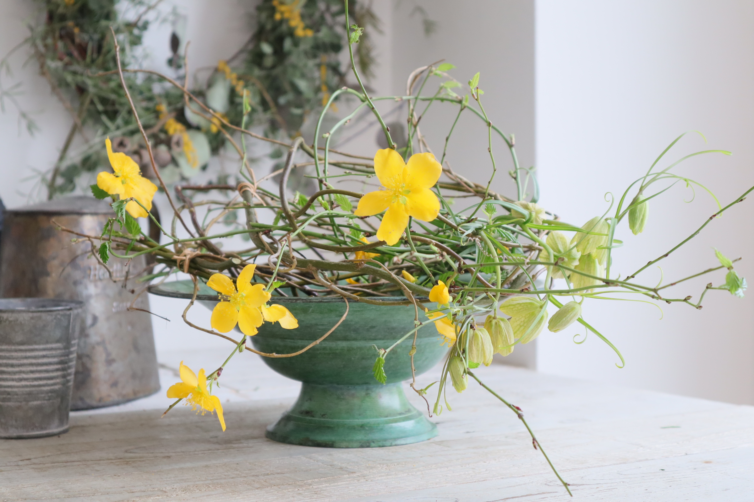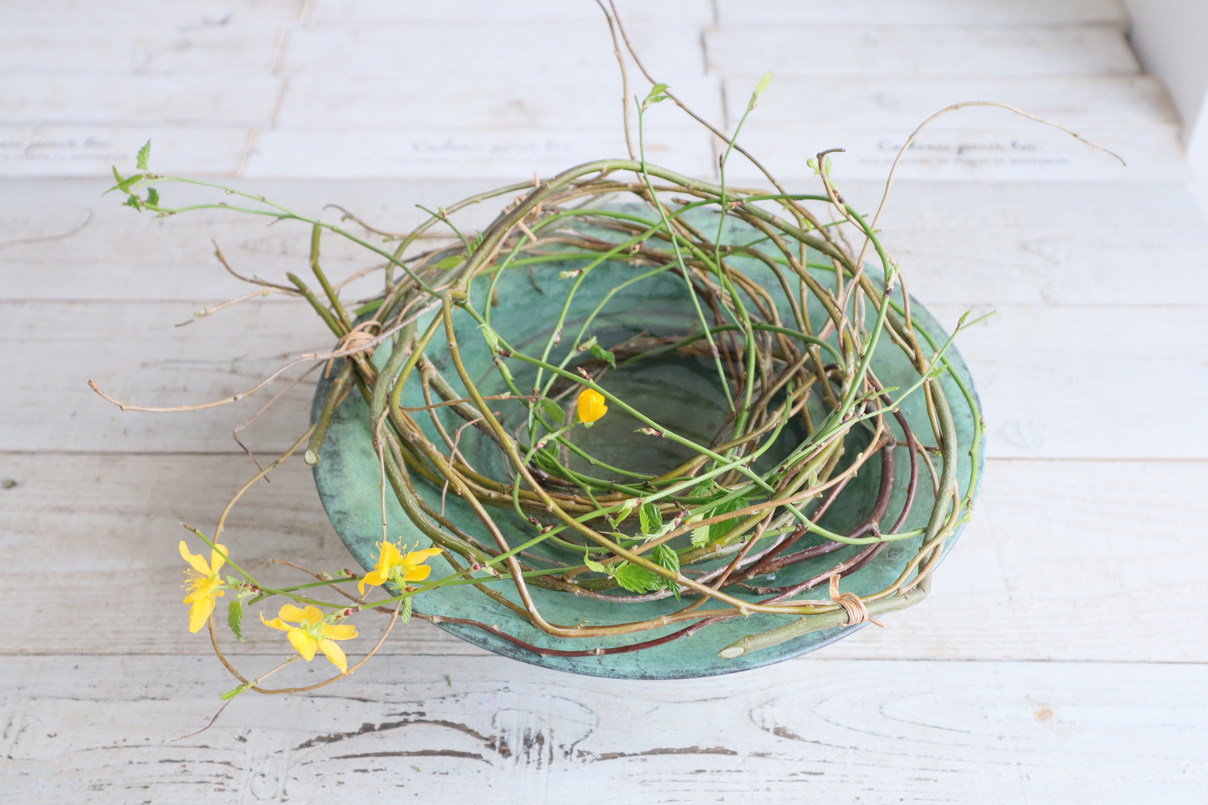インテリア レッスン/『山吹の水盤リースアレンジ』の作り方