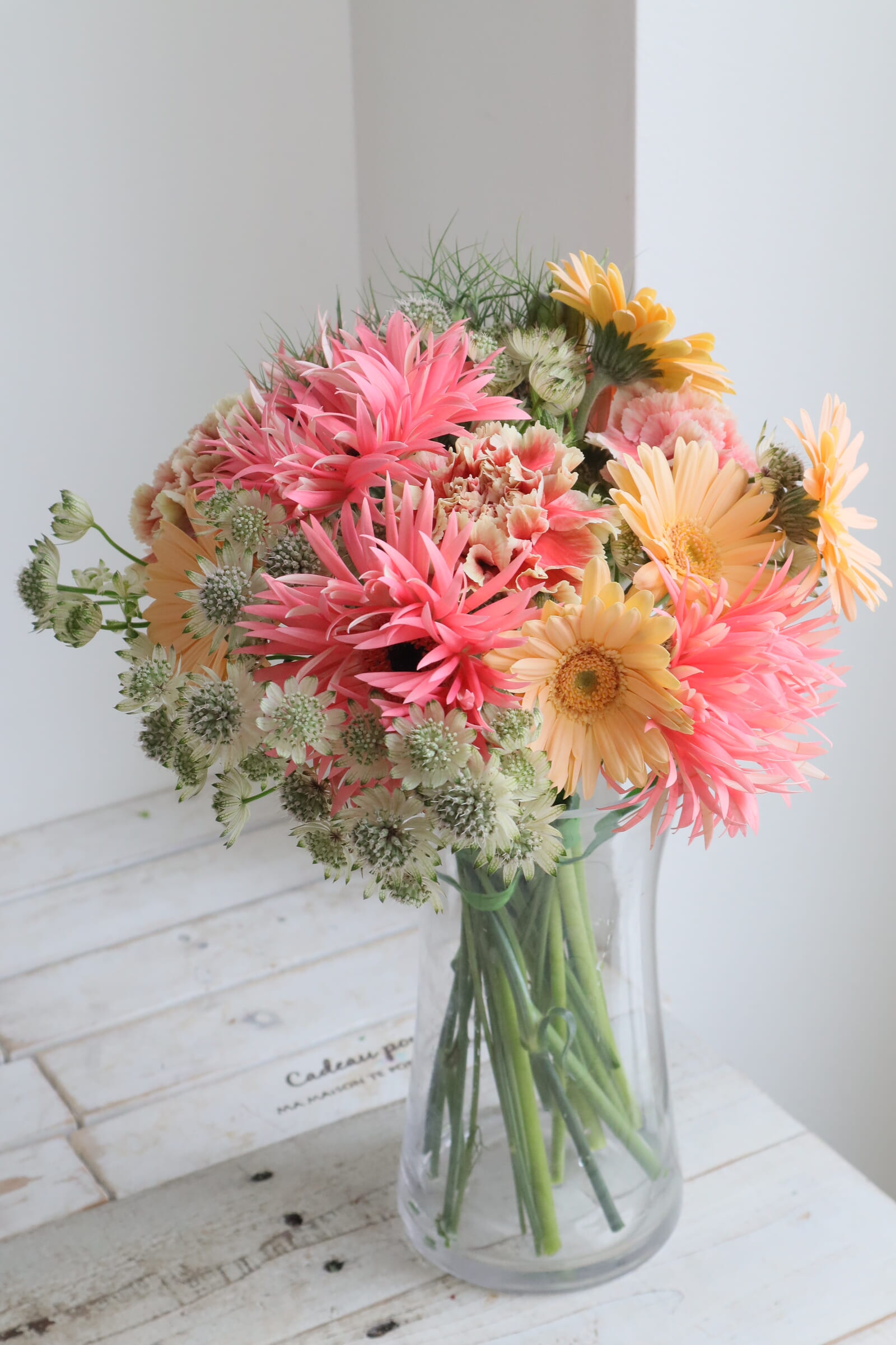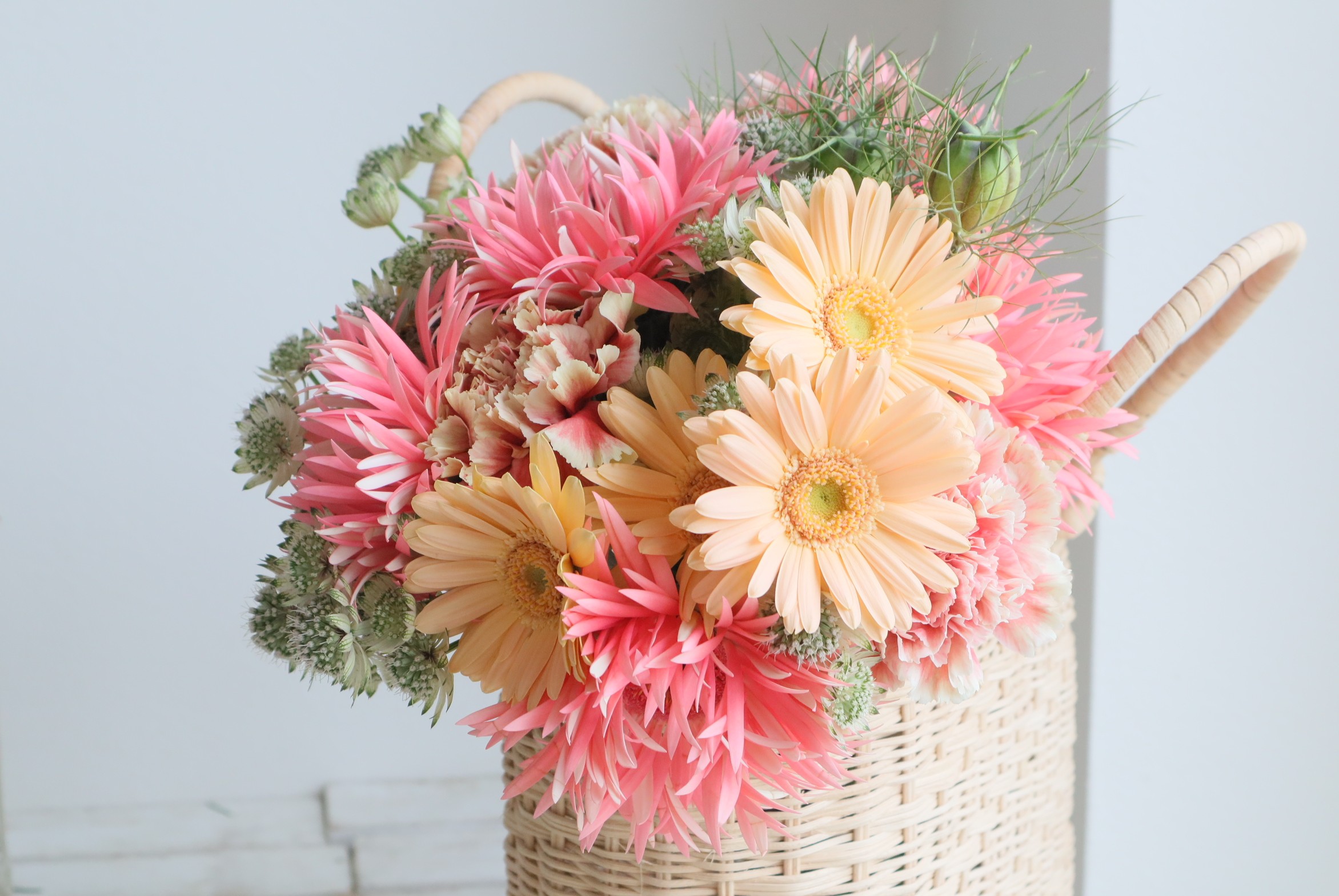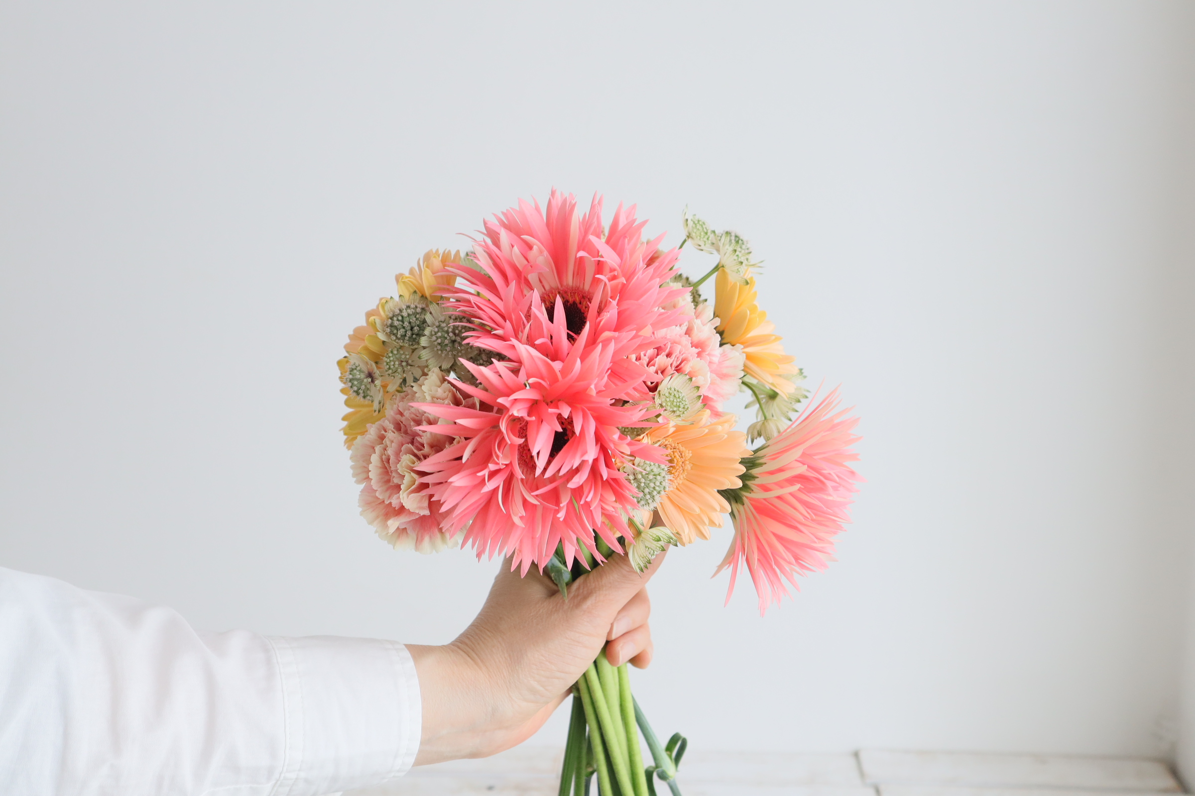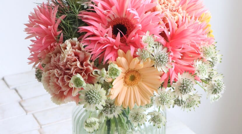 母の日 レッスン/『ガーベラとカーネーションで弾ける色彩の花束』の作り方