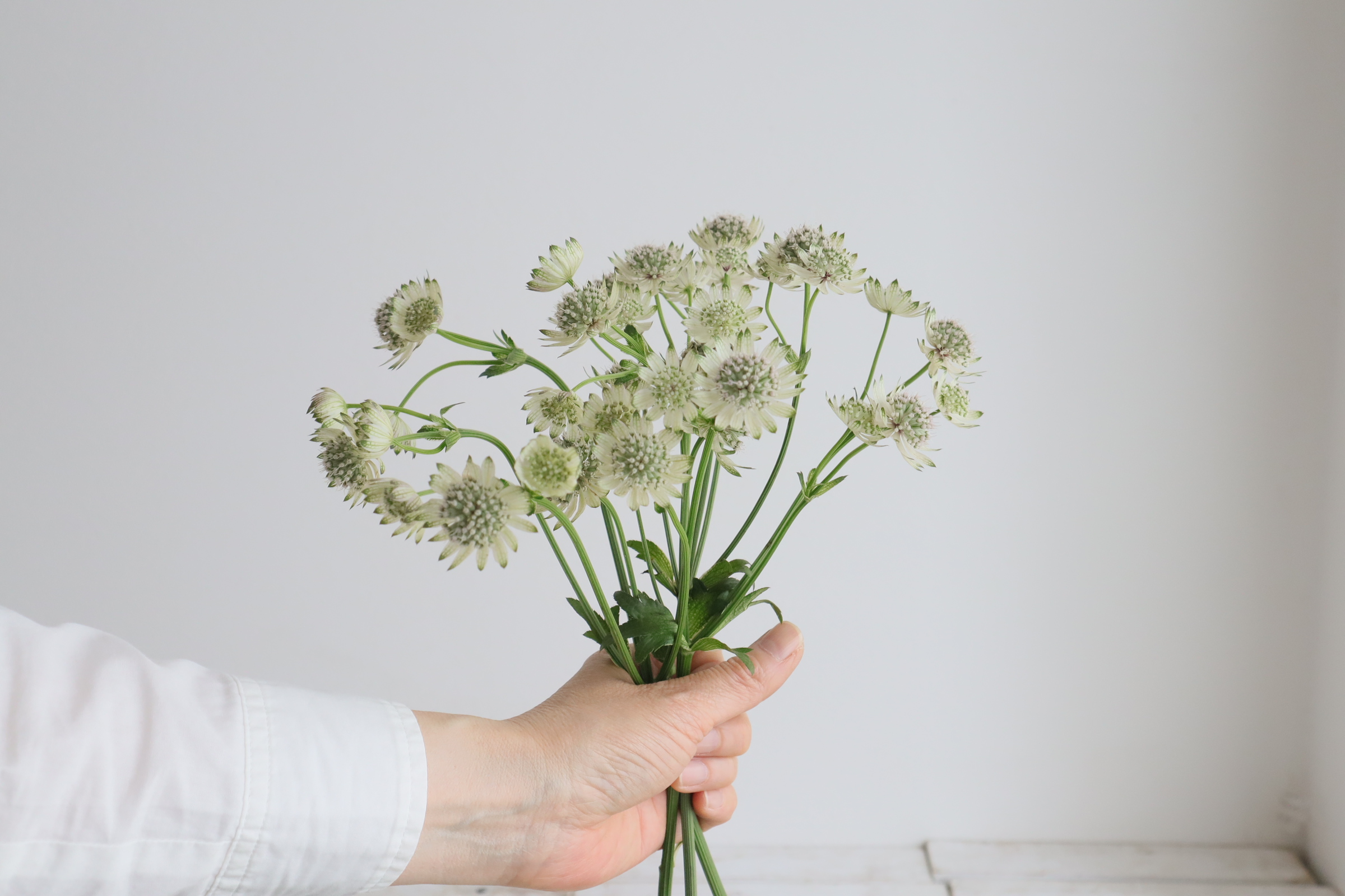 近藤先生「アストランチアをクッション花材として中心に持ちます。(2本)」