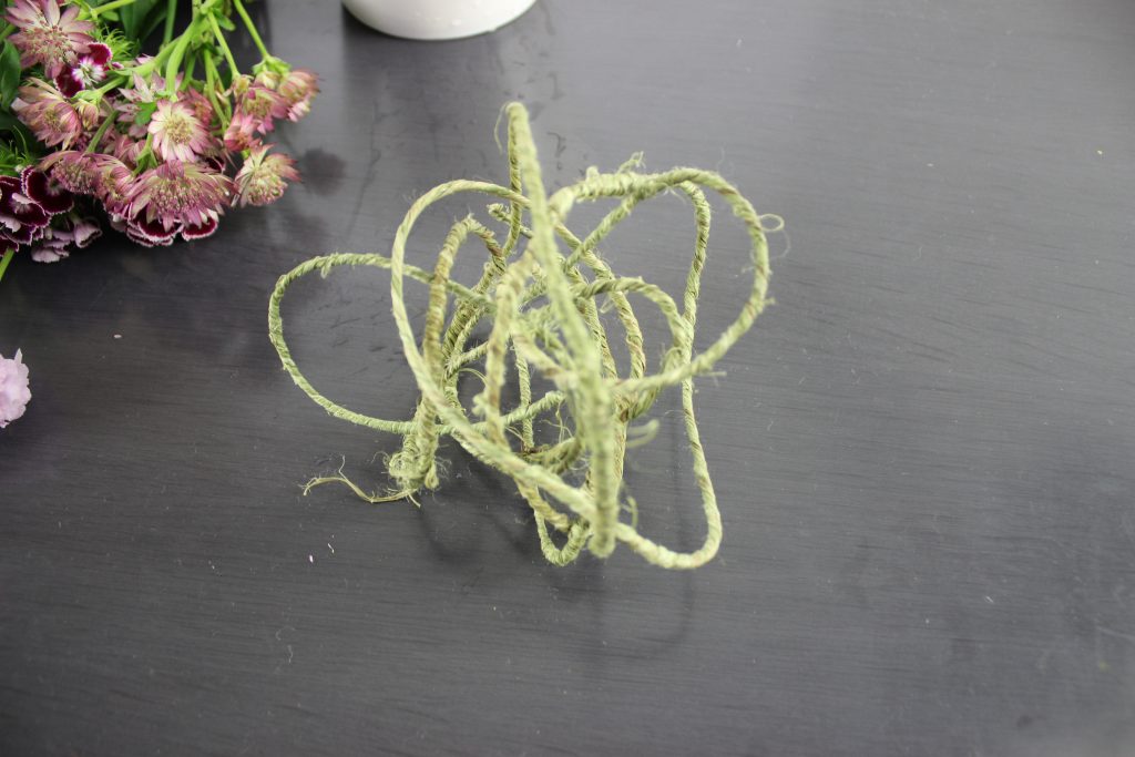 ラスティックワイヤーを丸めたものを用意します。ある程度密に、器の直径に合わせたサイズに。
