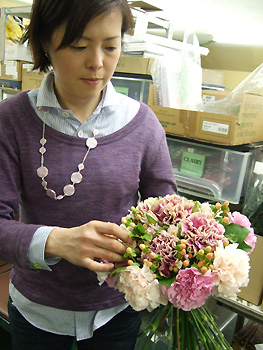 近「では、武石さんと徳久さんでこれをたくさん作ってください♪」先生はこの間に花束づくりを進行。