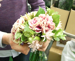 造形的なデザインよりはぎゅっとあつまったブーケやアレンジにして色の取り合わせを楽しむのがおすすめですね。」 母の日の前はカーネーションもお手頃価格ですから、何種類か使って色のグラデーションを楽しみたいですね!