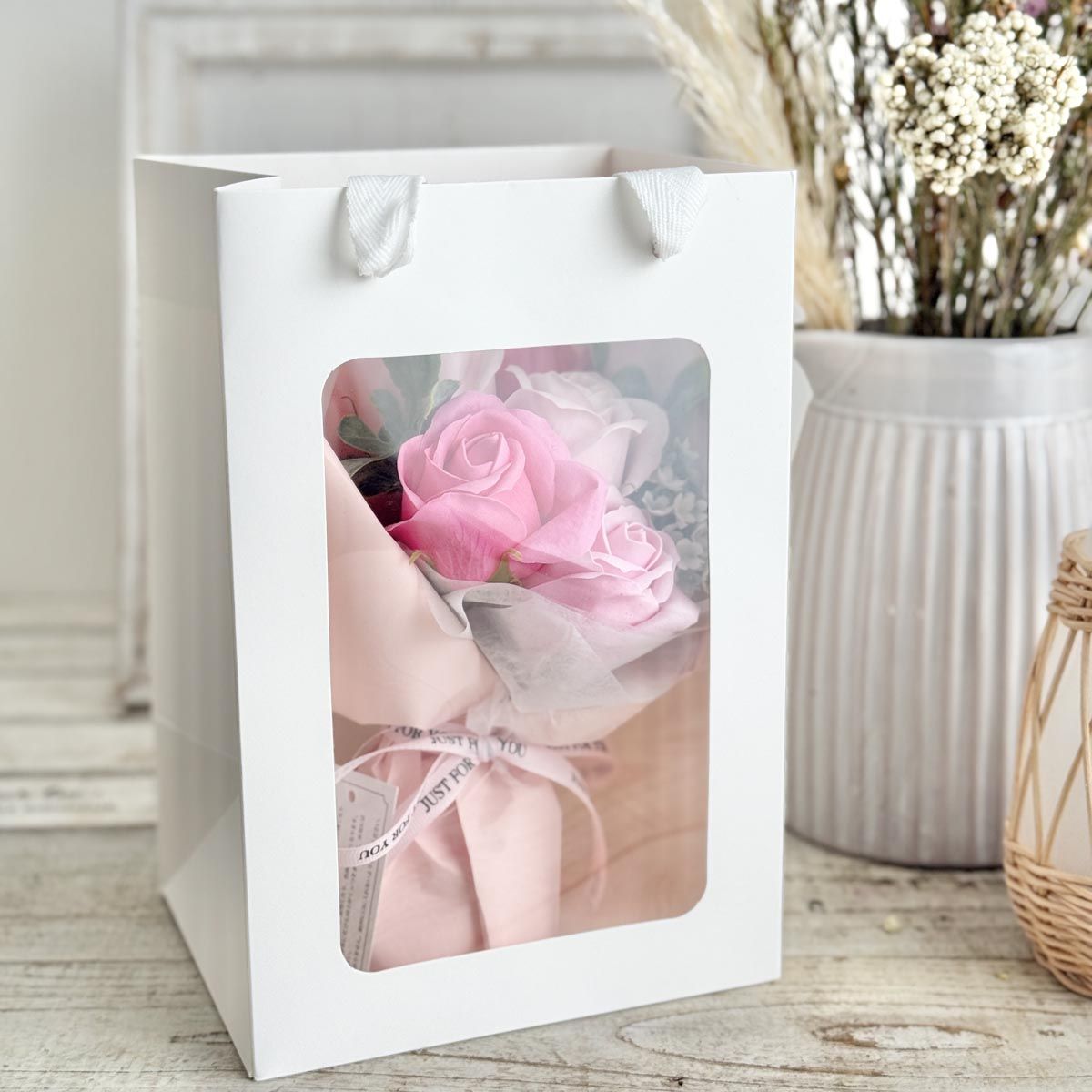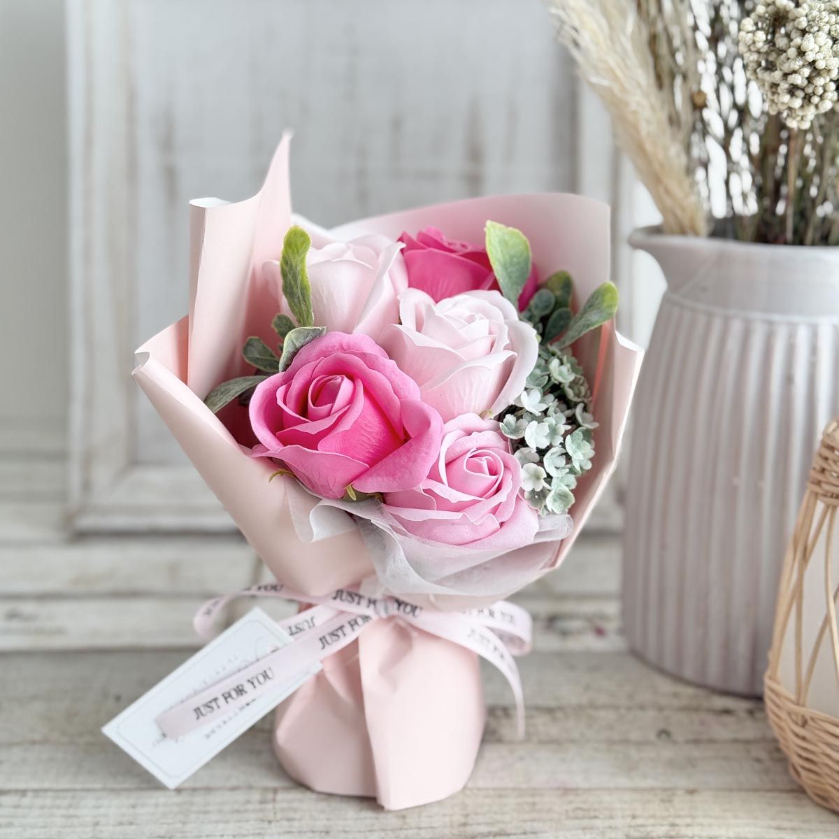即日★【ソープフラワー】ポシュ5輪ブーケ ピンク/MM000010-00Pなら花材通販【はなどんやアソシエ】におまかせ!即日発送、送料無料、ポイント還元も。個人法人問わず花材が仕入れられるネット通販です。