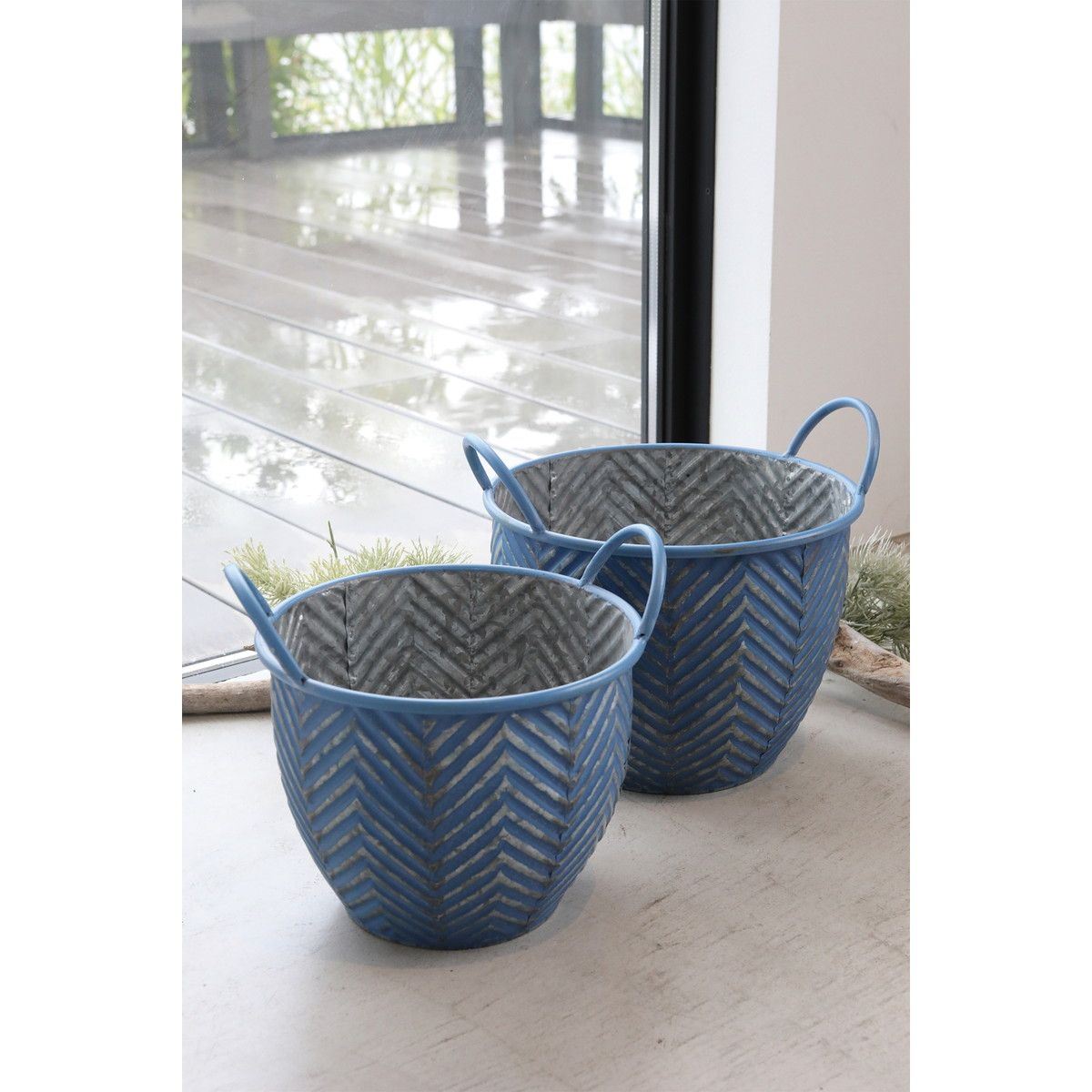コベントガーデン/リーフ・ハンドルポット2点セット ブルー/BP-13なら花材通販【はなどんやアソシエ】におまかせ!即日発送、送料無料、ポイント還元も。個人法人問わず花材が仕入れられるネット通販です。