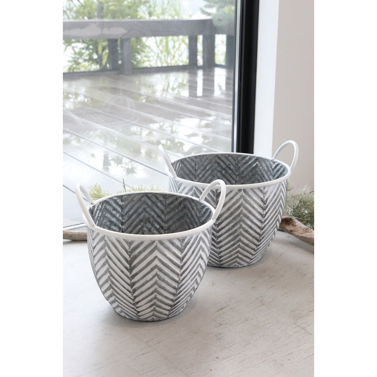 コベントガーデン/リーフ・ハンドルポット2点セット ホワイト/BP-14なら花材通販【はなどんやアソシエ】におまかせ!即日発送、送料無料、ポイント還元も。個人法人問わず花材が仕入れられるネット通販です。