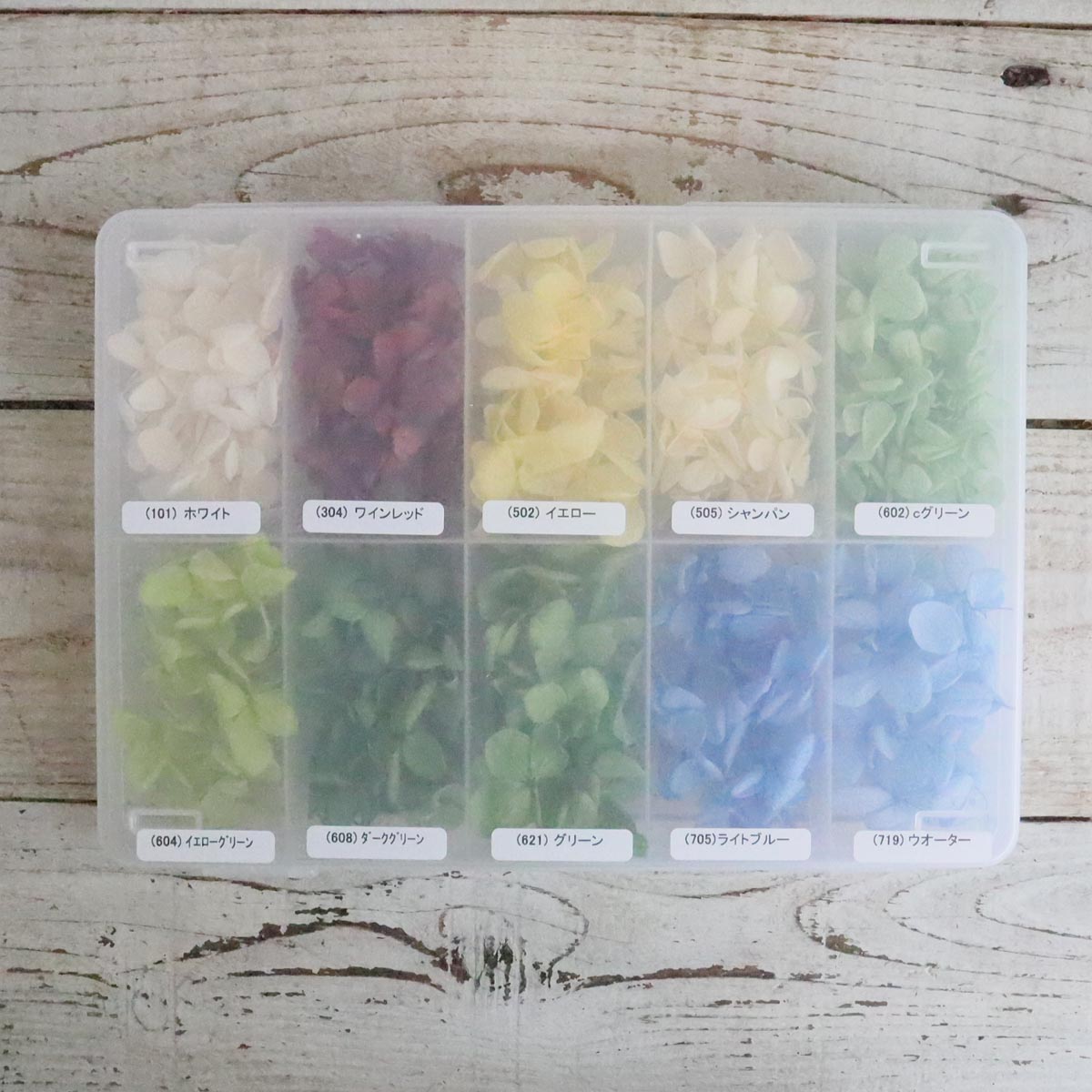 大特価◎【プリザーブド】ピラミッドアジサイPrimelo 花びらパーツの色見本 10色※数量限定なら花材通販【はなどんやアソシエ】におまかせ!即日発送、送料無料、ポイント還元も。個人法人問わず花材が仕入れられるネット通販です。