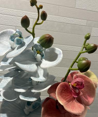 【造花】アスカ/コチョウラン×6 つぼみ×5 #019S シャーベットブルー/A-35405-19Sなら花材通販【はなどんやアソシエ】におまかせ!即日発送、送料無料、ポイント還元も。個人法人問わず花材が仕入れられるネット通販です。