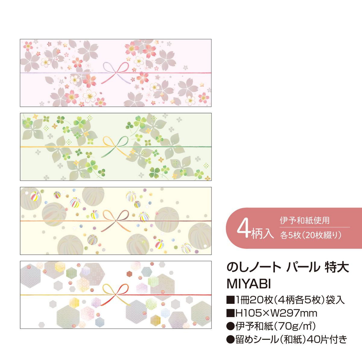 特価◎ササガワ/のしノート パール 特大 MIYABI 1冊20枚(4柄各5枚)袋入/50-9780Hなら花材通販【はなどんやアソシエ】におまかせ!即日発送、送料無料、ポイント還元も。個人法人問わず花材が仕入れられるネット通販です。
