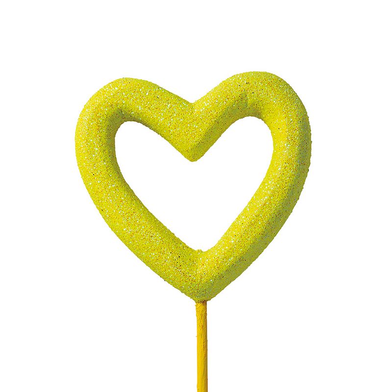 特価◎GREENHOUSE/グリッターハートピック M イエロー/5544-B-YEなら花材通販【はなどんやアソシエ】におまかせ!即日発送、送料無料、ポイント還元も。個人法人問わず花材が仕入れられるネット通販です。