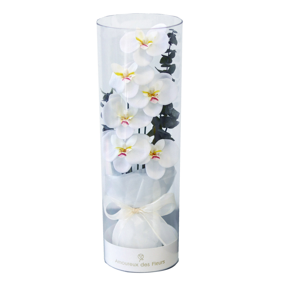 【ソープフラワー】アムール・デ・フルール/フルール・アン・ボトル・オーキッド L ホワイト/AM25OLWなら花材通販【はなどんやアソシエ】におまかせ!即日発送、送料無料、ポイント還元も。個人法人問わず花材が仕入れられるネット通販です。