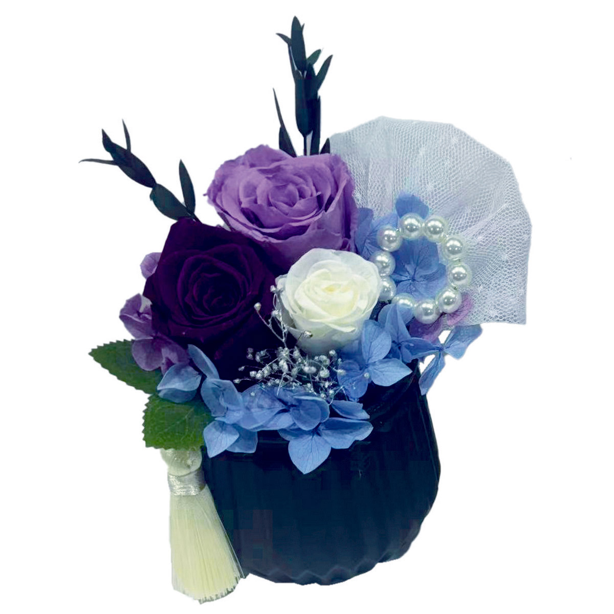 【ソープフラワー】アムール・デ・フルール/プリノーブル・ハーモニー ブラック/ラベンダー/AM26NHBなら花材通販【はなどんやアソシエ】におまかせ!即日発送、送料無料、ポイント還元も。個人法人問わず花材が仕入れられるネット通販です。
