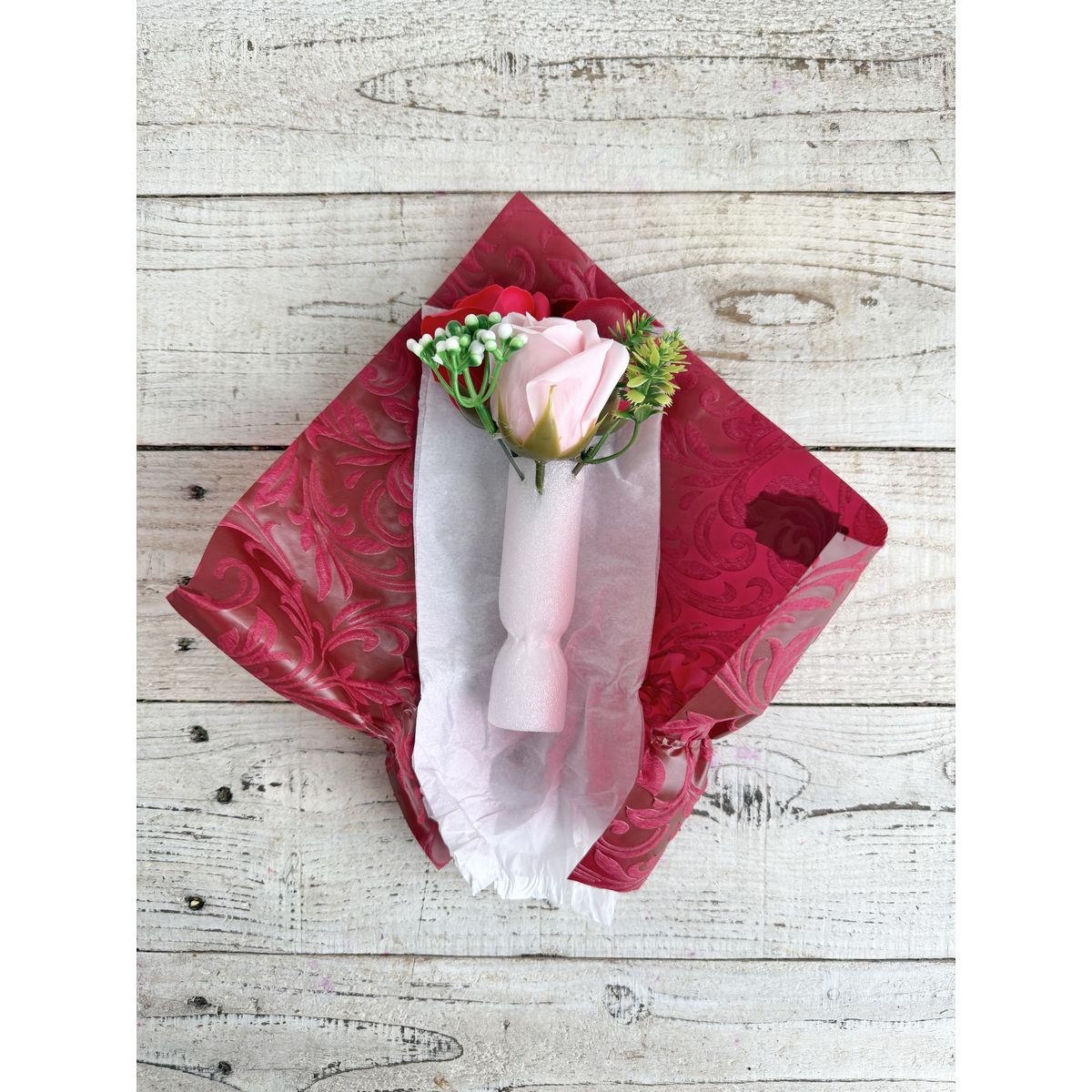 - 基本的にはラッピングのまま飾っていただく仕様です。