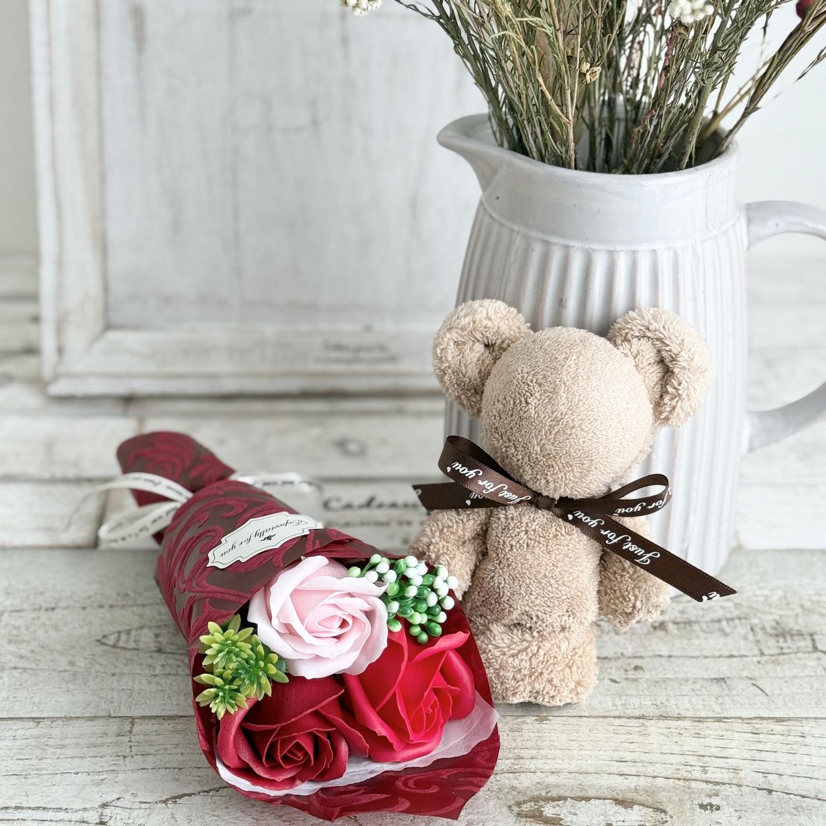 即日★【ソープフラワー】松野ホビー/クマタオル&シャボンフラワーセット パープル/GM-4833なら花材通販【はなどんやアソシエ】におまかせ!即日発送、送料無料、ポイント還元も。個人法人問わず花材が仕入れられるネット通販です。