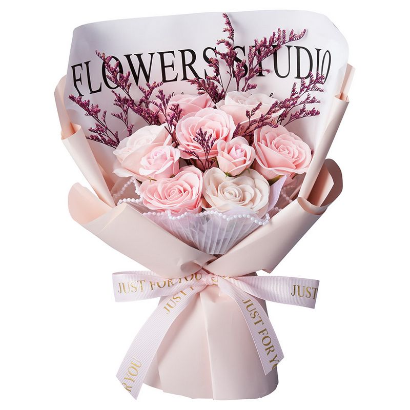 【ソープフラワー】松野ホビー/スタンドスイートシャボン9輪ブーケ ピンク/GM-5834なら花材通販【はなどんやアソシエ】におまかせ!即日発送、送料無料、ポイント還元も。個人法人問わず花材が仕入れられるネット通販です。
