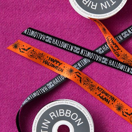 特価◎HEADS/ハロウィンレタープリントサテンリボン-1(1巻)/HWL-R1なら花材通販【はなどんやアソシエ】におまかせ!即日発送、送料無料、ポイント還元も。個人法人問わず花材が仕入れられるネット通販です。
