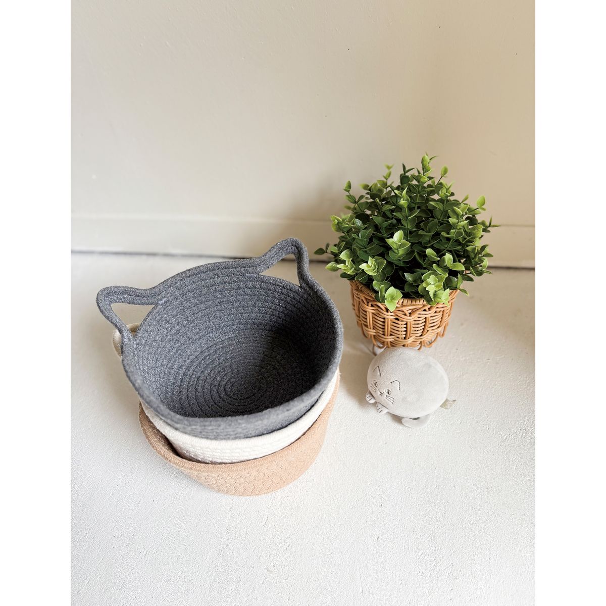特価◎drawerplus/にゃふにゃふ ロープバスケットグレー/74505なら花材通販【はなどんやアソシエ】におまかせ!即日発送、送料無料、ポイント還元も。個人法人問わず花材が仕入れられるネット通販です。