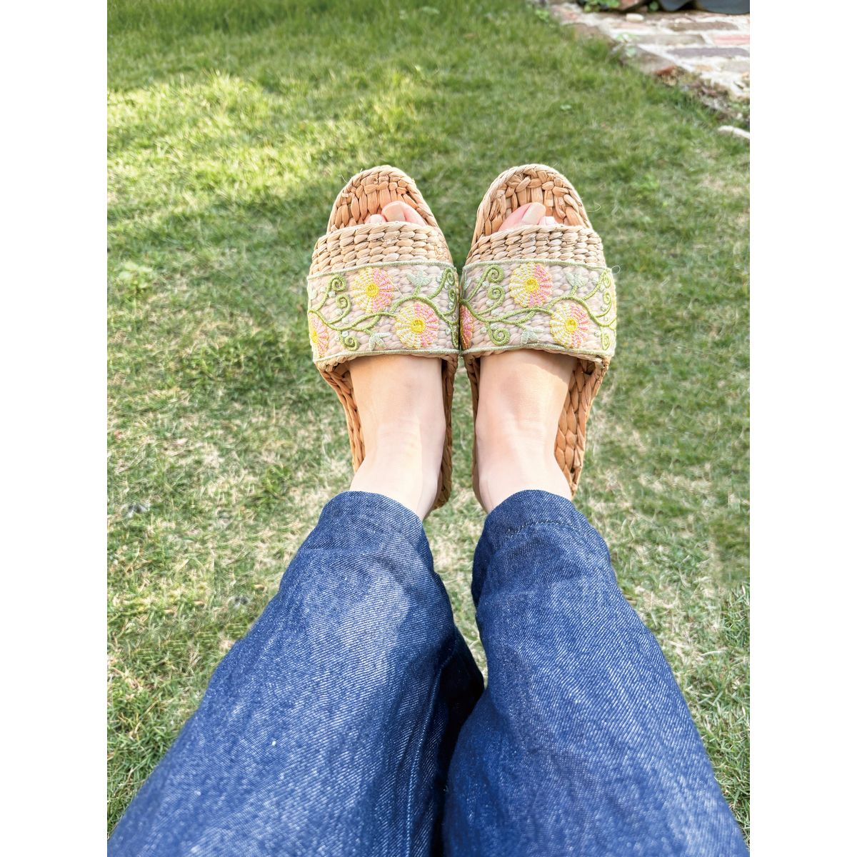 drawerplus/ガマスリッパ フラワー刺繍リボン グリーン/221622なら花材通販【はなどんやアソシエ】におまかせ!即日発送、送料無料、ポイント還元も。個人法人問わず花材が仕入れられるネット通販です。