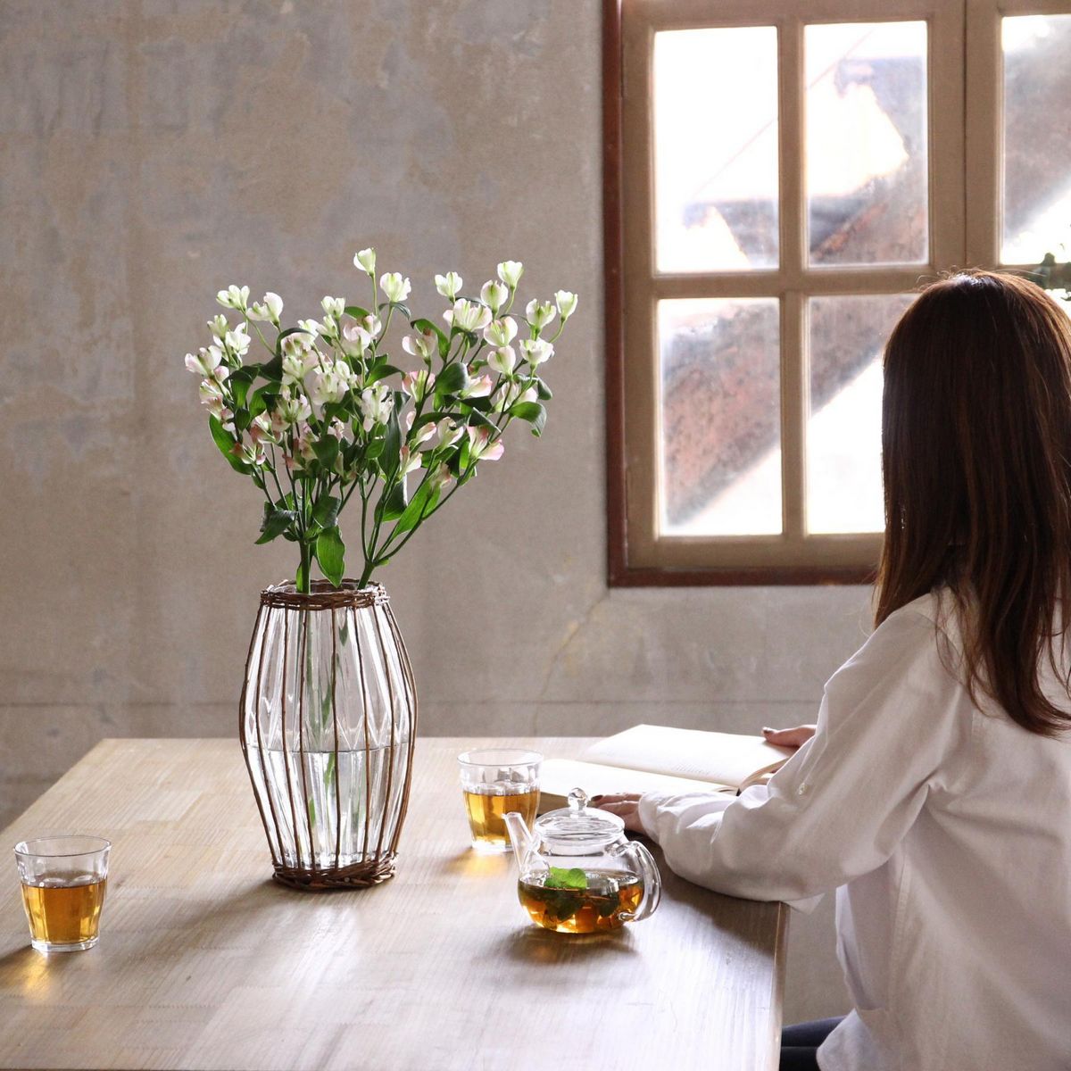SOW/FONTAINE かご編みガラスフラワーベース ロング/LYGN1010SWなら花材通販【はなどんやアソシエ】におまかせ!即日発送、送料無料、ポイント還元も。個人法人問わず花材が仕入れられるネット通販です。