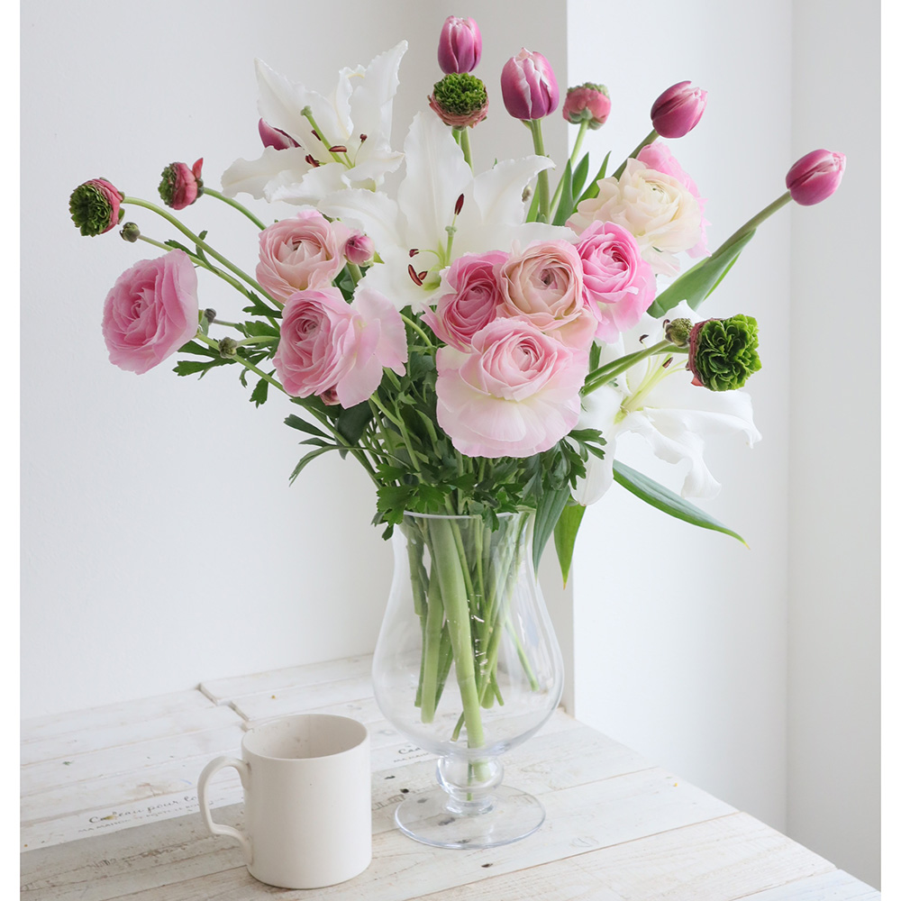【直前】【生花】ラナンキュラス シストロン(ピンク・芯グリーン)40cm-【早締切-22】フラワー西村なら花材通販【はなどんやアソシエ】におまかせ!即日発送、送料無料、ポイント還元も。個人法人問わず花材が仕入れられるネット通販です。