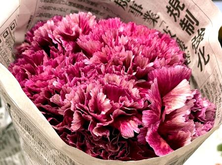 【生花】国産カーネーション レディネオン(複色パープル系)5-60cm程度 藤花園【FJ】なら花材通販【はなどんやアソシエ】におまかせ!即日発送、送料無料、ポイント還元も。個人法人問わず花材が仕入れられるネット通販です。